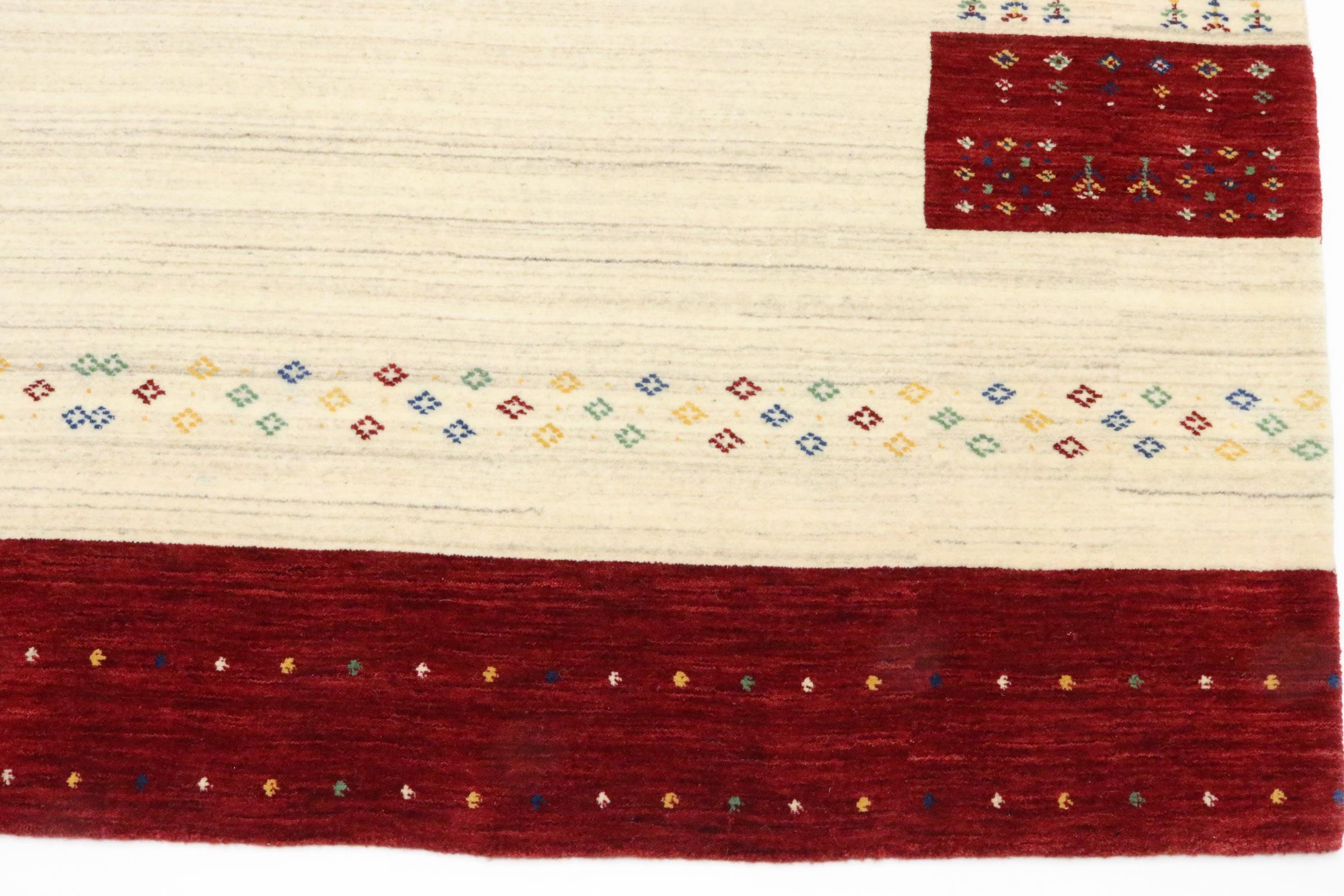 Loom rugs are made on looms, on which a pile is made from loops. Instead of knots (see hand-knotted rugs), loops are woven, which later form the carpet pile. Compared to traditional hand knotting, loom carpets can be made with much less effort and are therefore more affordable. Because of their weave, these rugs are also limited to geometric or plain patterns.