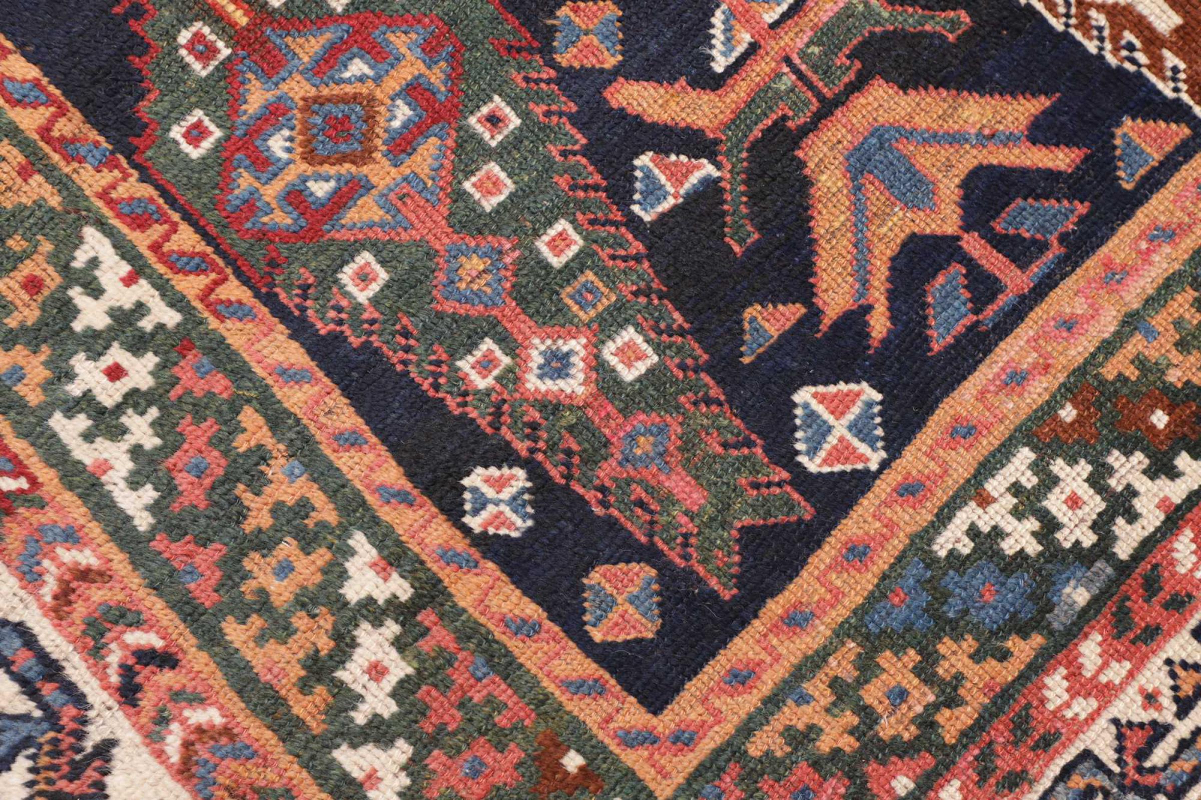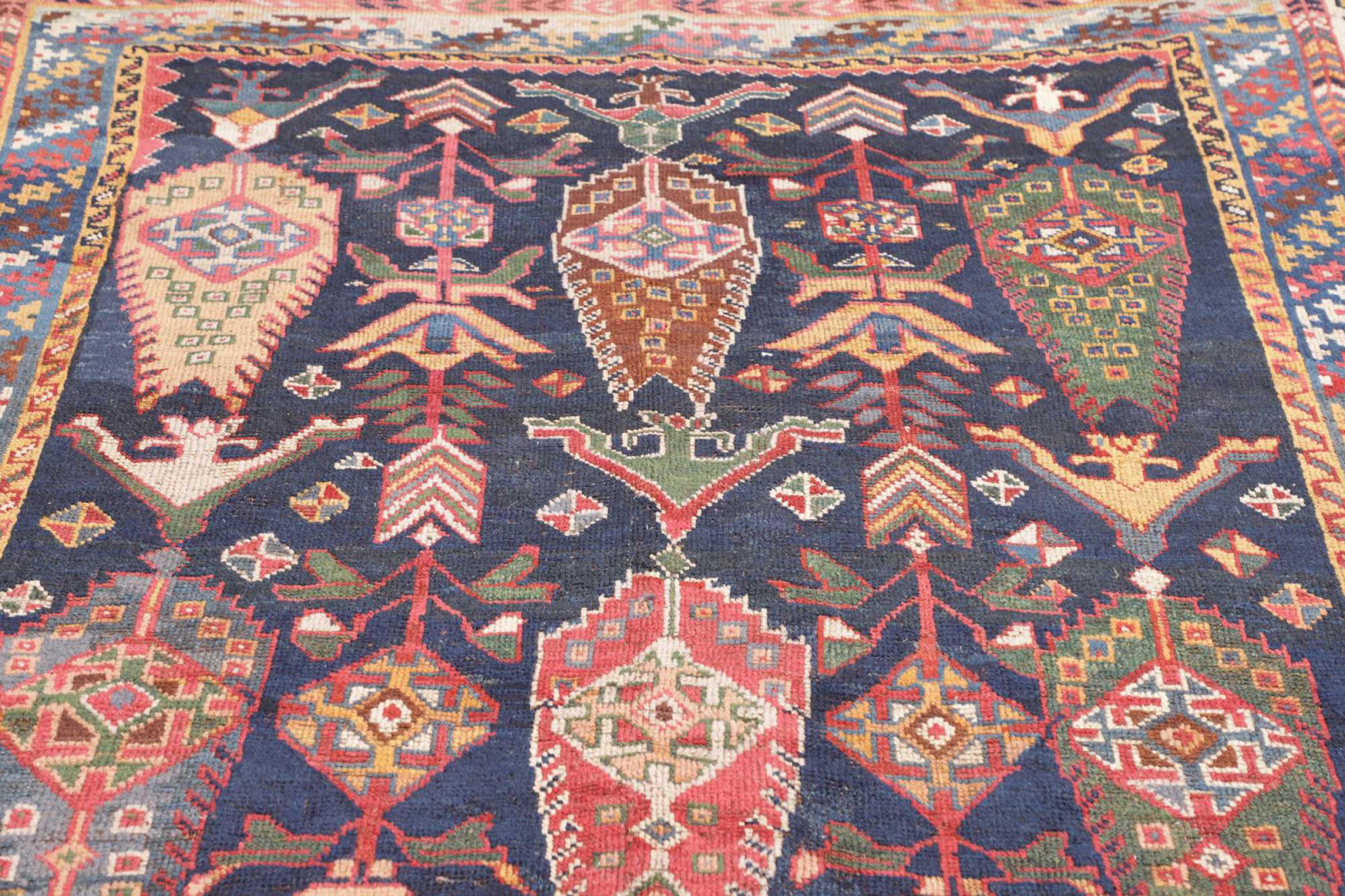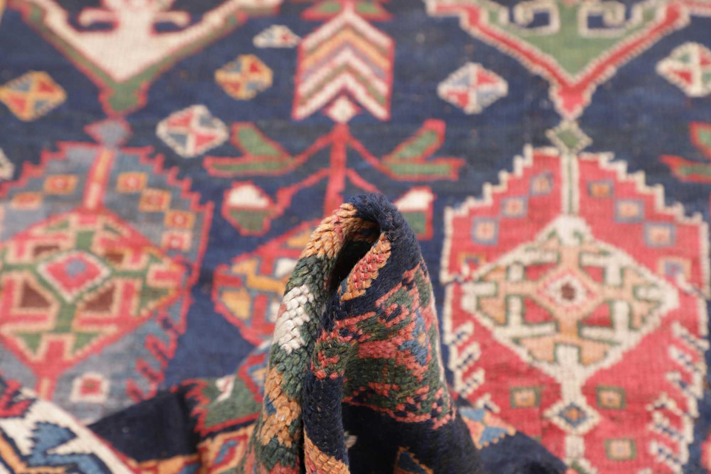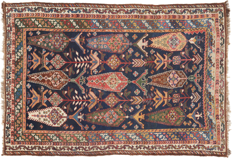 This carpet belongs to the village and nomadic carpets from Iran, the former Persia. This kind of carpets is hand knotted in smaller towns and villages in ancient tradition. Even nomads still knot Persian carpets in the open air. The carpets are knotted without a draft and entirely from memory. They are characterized by classical ornaments arranged in linear and geometric patterns. Thanks to their cultural and traditional origins, these rugs possess a unique character that embodies ancient Persia.
