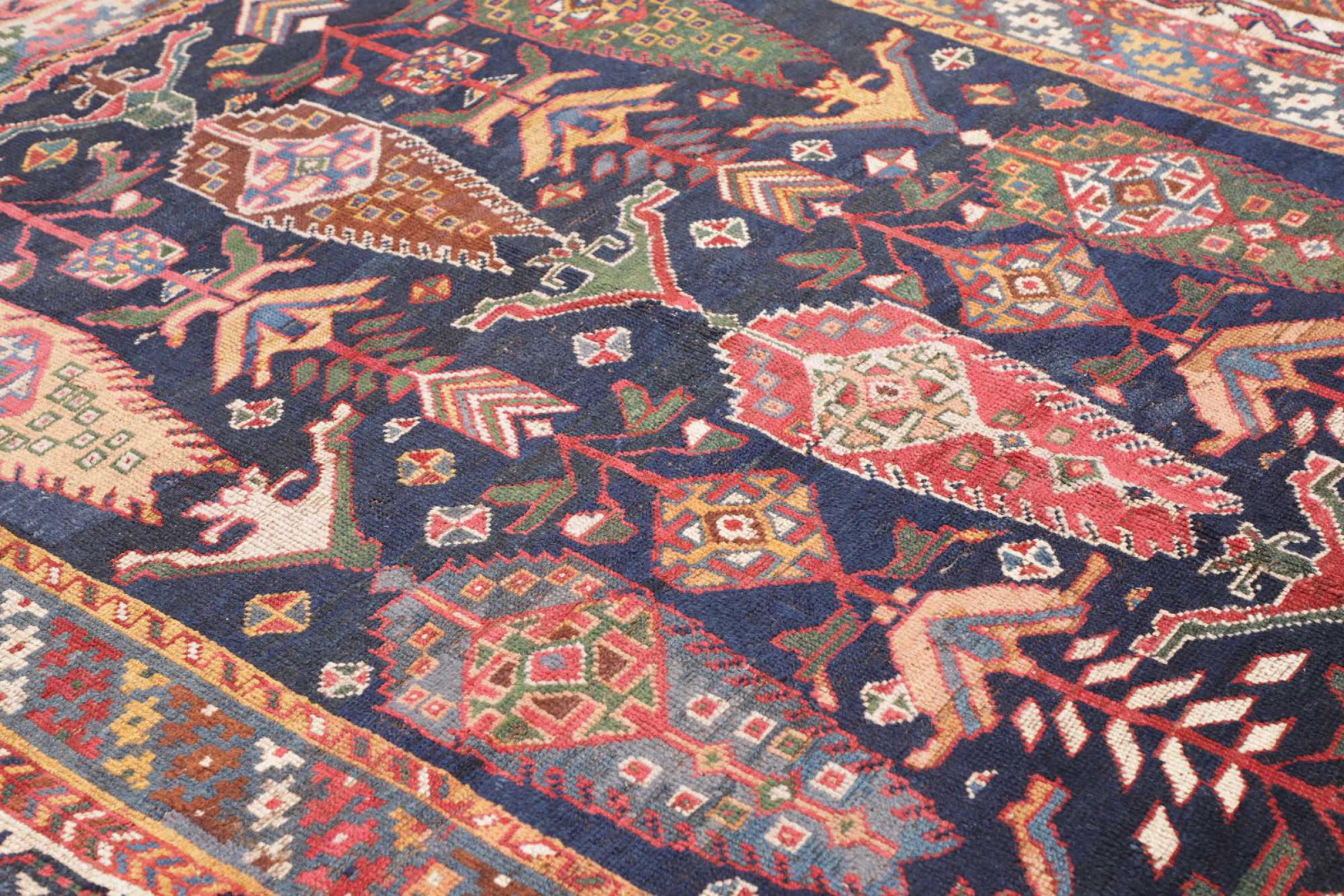 Rug ID: 316877008980197 Size: 8'4"x5'7" ft Thickness: ap. 0.39 in Knot density: 82 - 103 / square inch Manufacturing: Knotted by hand Pile: Handspun wool Warp: Cotton Condition / Conservation: Perfect Origin: Persia / Iran Age: Antique, over 80 years Weight: ap. 37 lb Also know as Lorestan, Luristan In stock: Unique - Only 1 in stock