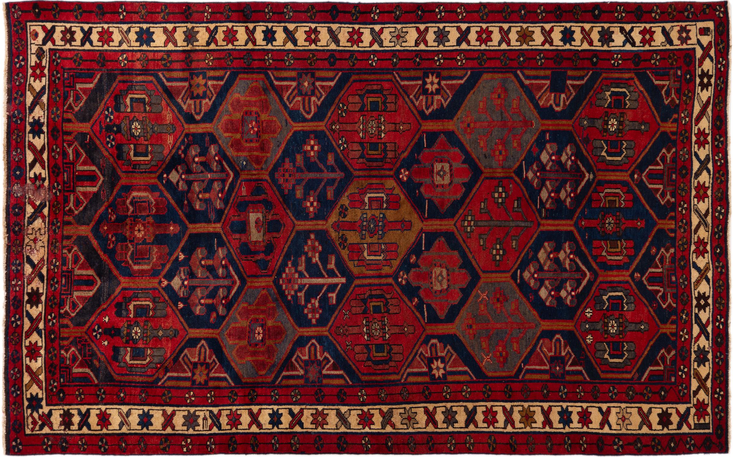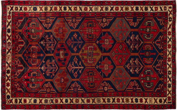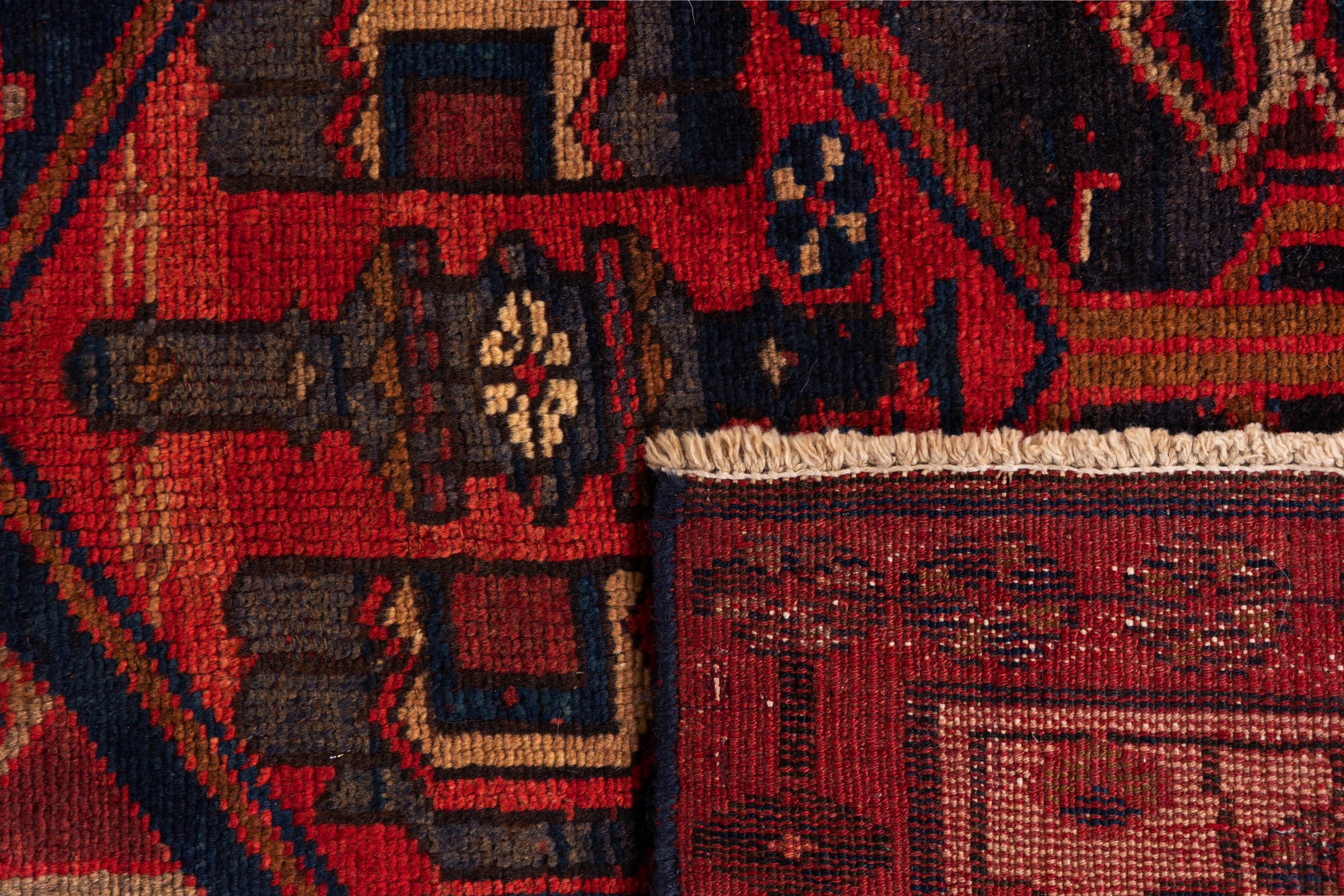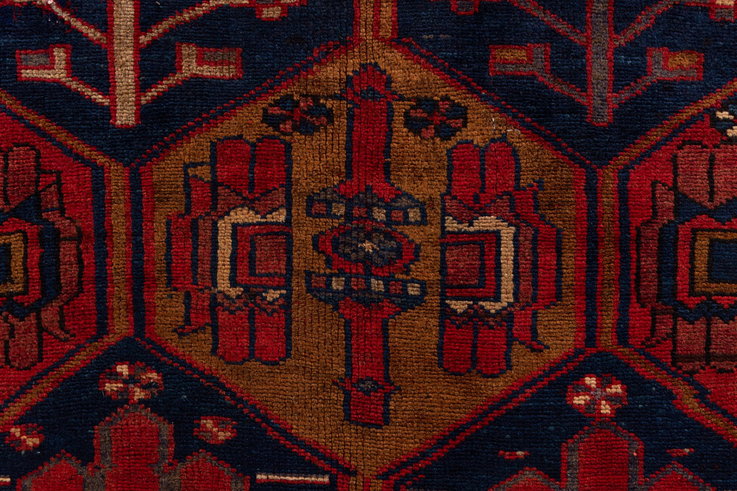 This carpet belongs to the village and nomadic carpets from Iran, the former Persia. This kind of carpets is hand knotted in smaller towns and villages in ancient tradition. Even nomads still knot Persian carpets in the open air. The carpets are knotted without a draft and entirely from memory. They are characterized by classical ornaments arranged in linear and geometric patterns. Thanks to their cultural and traditional origins, these rugs possess a unique character that embodies ancient Persia.