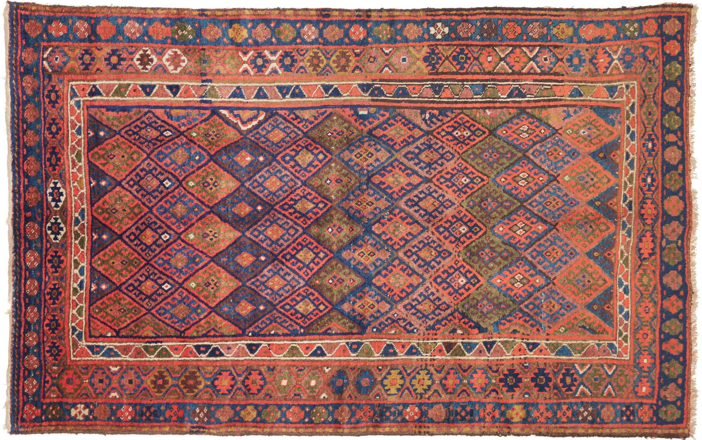 Rug ID: 316875005145419 Size: 8'9"x5'3" ft Thickness: ap. 0.39 in Knot density: 82 - 103 / square inch Manufacturing: Knotted by hand Pile: Handspun wool Warp: Cotton Condition / Conservation: Perfect Origin: Persia / Iran Age: Antique, over 80 years Weight: ap. 37 lb Also know as Lorestan, Luristan In stock: Unique - Only 1 in stock