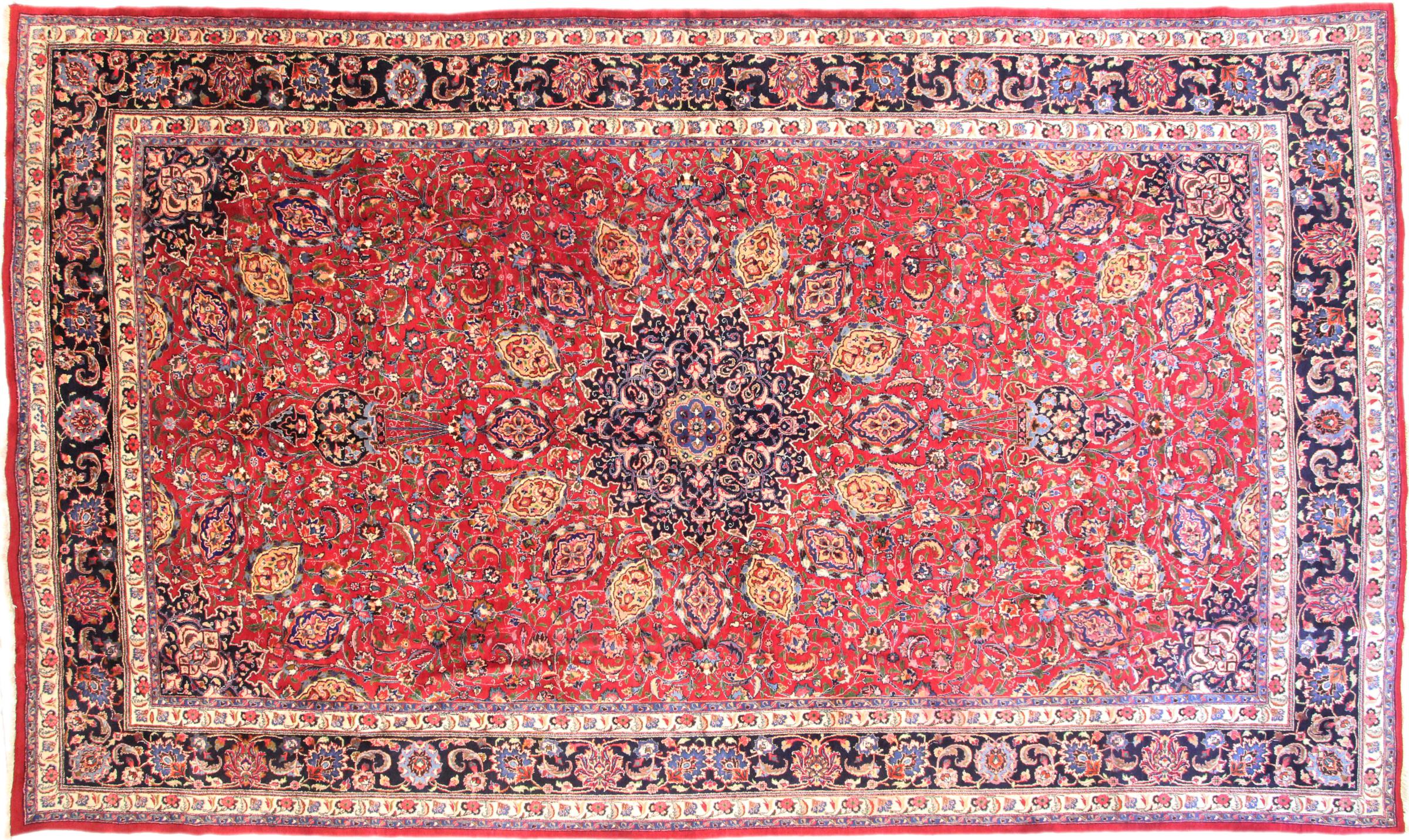 Rug ID: 167808004286826 Size: 17'1"x10'1" ft Thickness: ap. 0.47 in Knot density: 82 - 103 / square inch Manufacturing: Knotted by hand Pile: Handspun wool Warp: Cotton Origin: Persia / Iran Age: New Weight: ap. 123 lb Also know as Maschad, Meshed In stock: Unique - Only 1 in stock