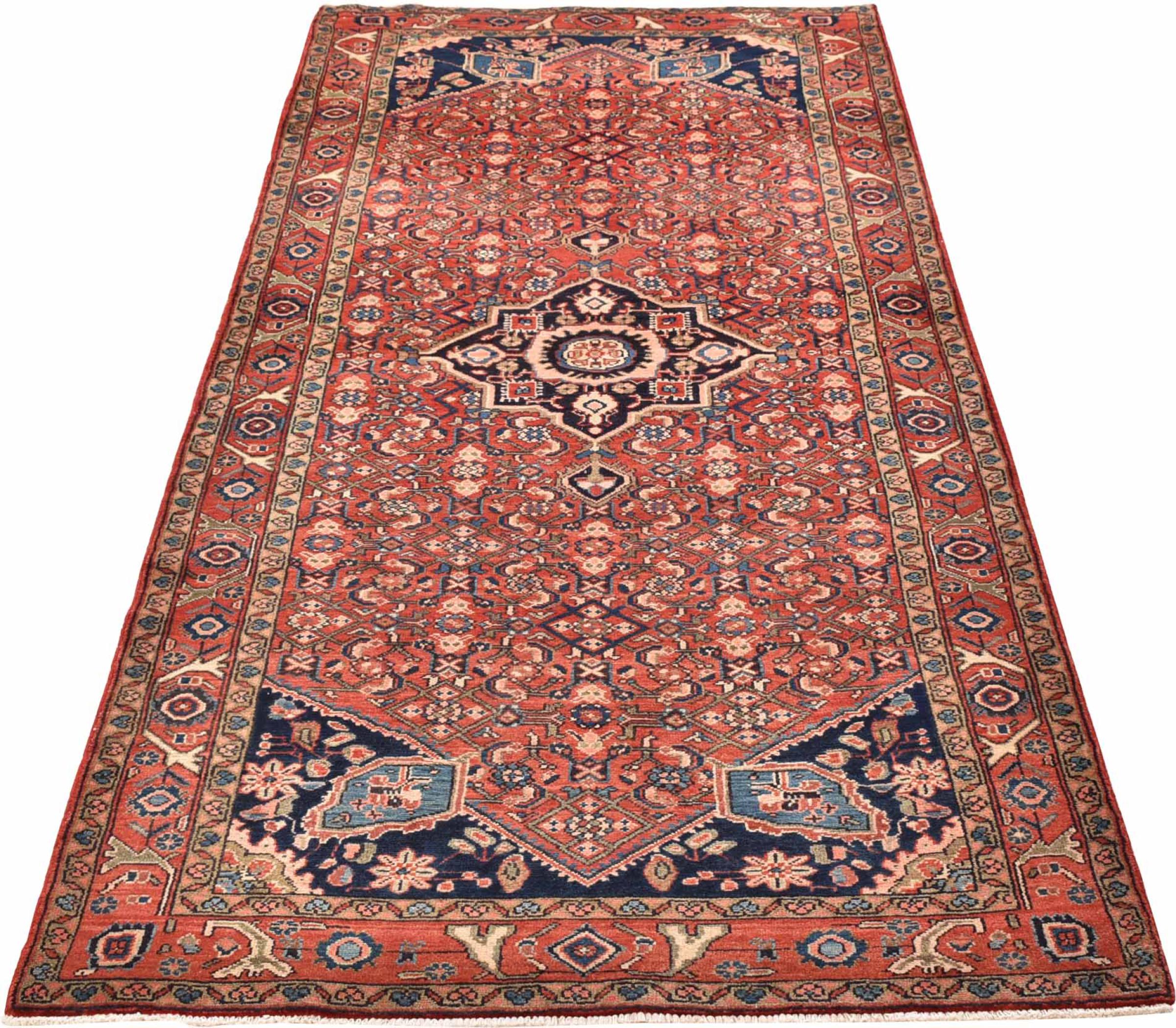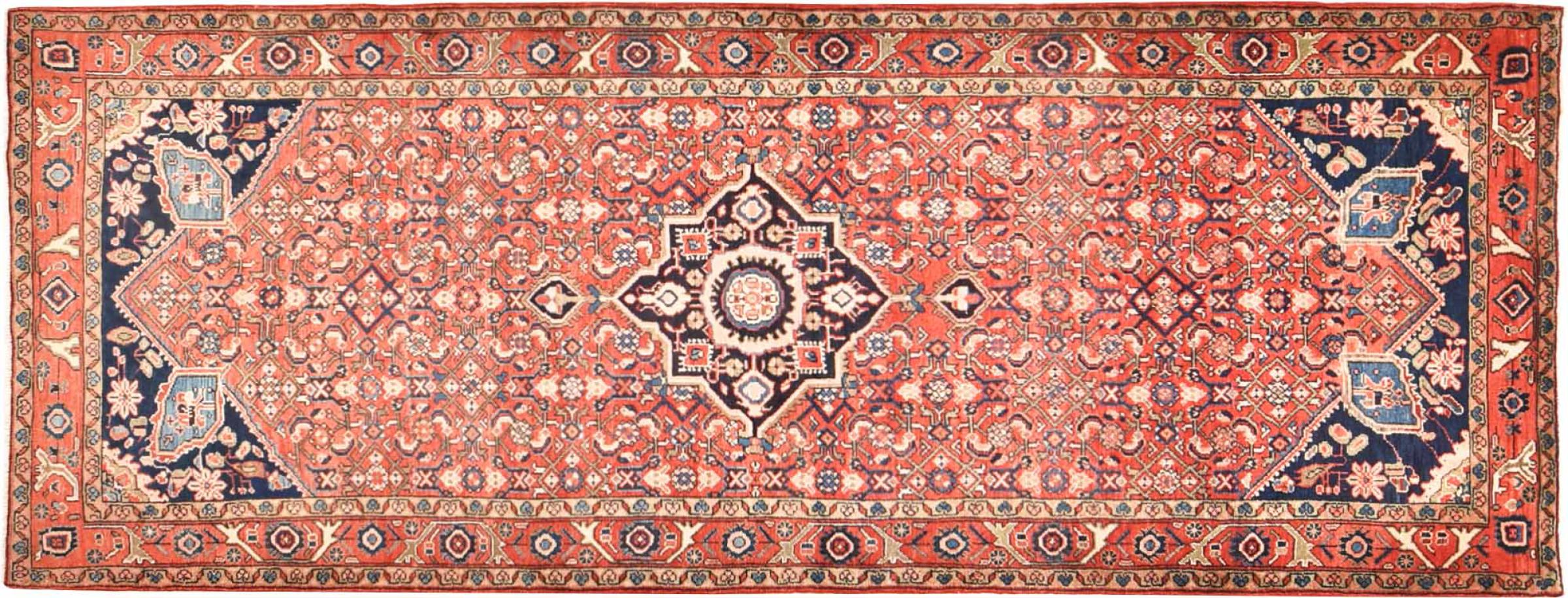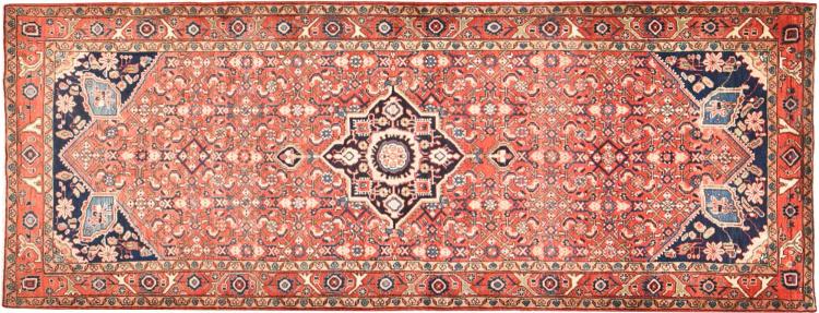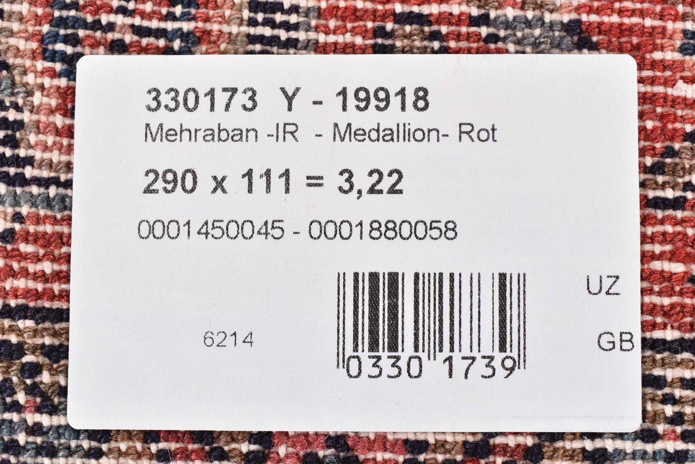 Rug ID: 30081200799045 Size: 9'7"x3'7" ft Thickness: ap. 0.47 in Knot density: 82 - 103 / square inch Manufacturing: Knotted by hand Pile: Handspun wool Warp: Cotton Origin: Persia / Iran Age: New Weight: ap. 24 lb Also know as Meriban In stock: Unique - Only 1 in stock