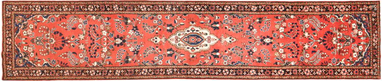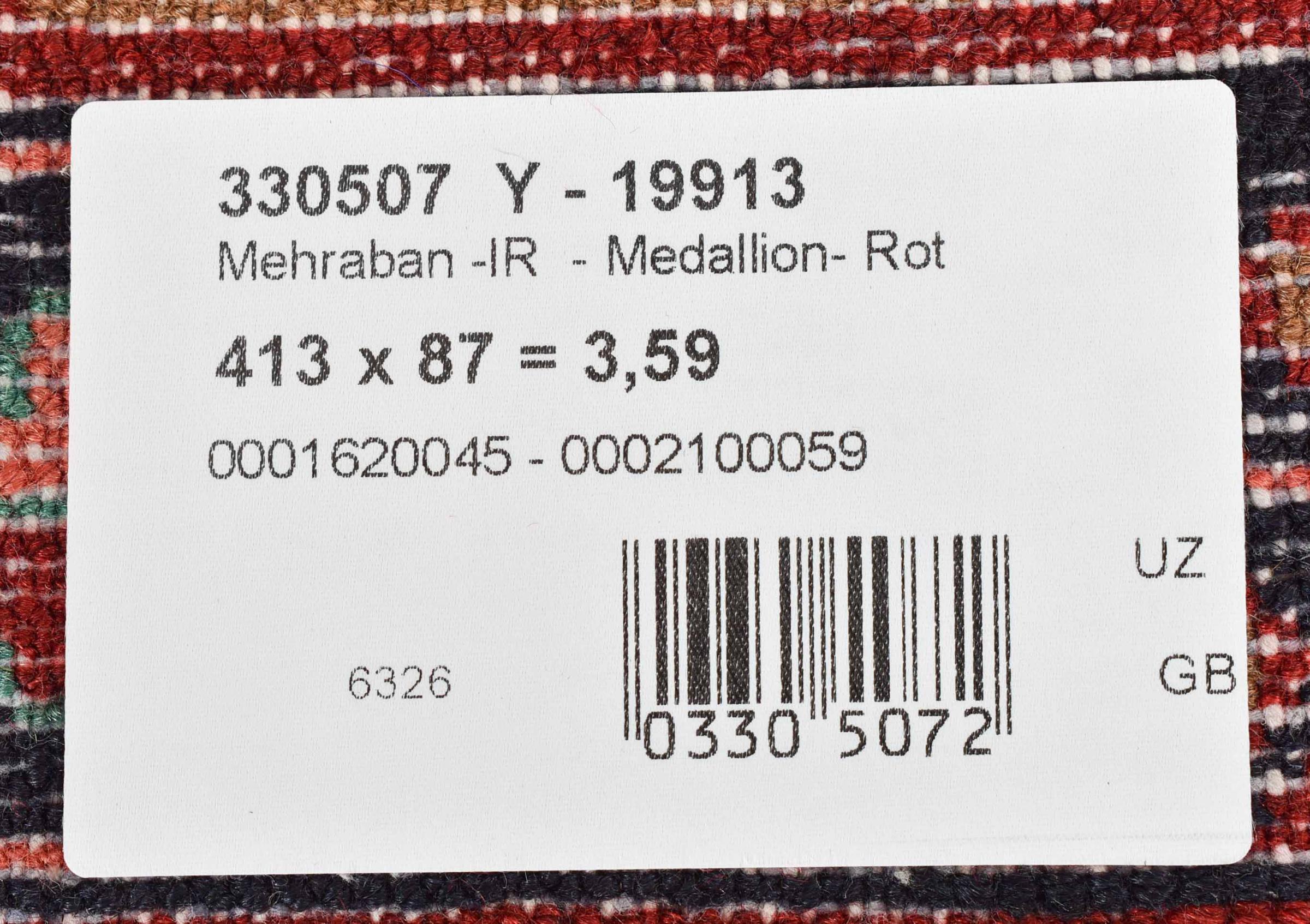 Rug ID: 300925003977719 Size: 13'7"x2'10" ft Thickness: ap. 0.47 in Knot density: 82 - 103 / square inch Manufacturing: Knotted by hand Pile: Handspun wool Warp: Cotton Origin: Persia / Iran Age: New Weight: ap. 26 lb Also know as Meriban In stock: Unique - Only 1 in stock