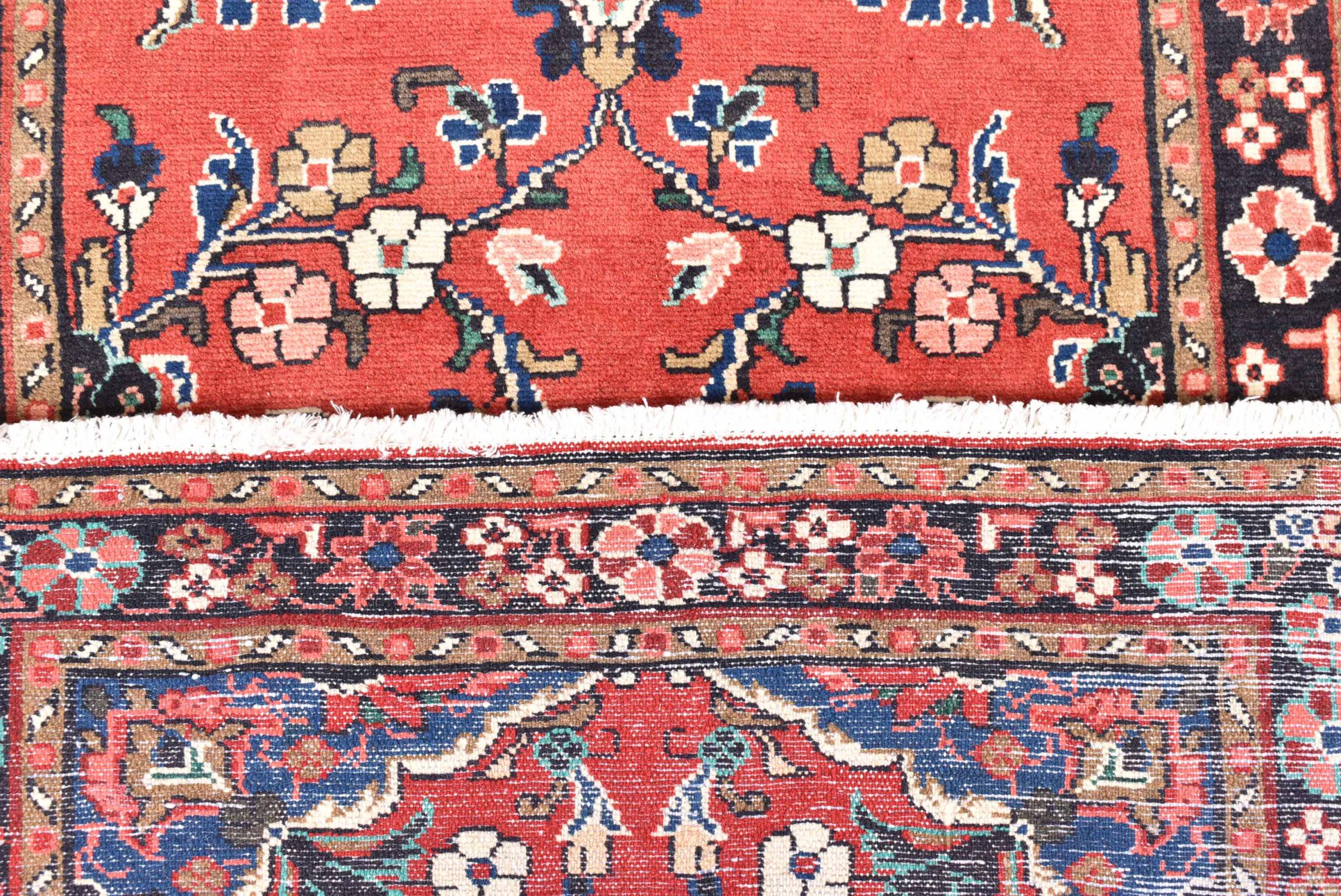 This carpet belongs to the village and nomadic carpets from Iran, the former Persia. This kind of carpets is hand knotted in smaller towns and villages in ancient tradition. Even nomads still knot Persian carpets in the open air. The carpets are knotted without a draft and entirely from memory. They are characterized by classical ornaments arranged in linear and geometric patterns. Thanks to their cultural and traditional origins, these rugs possess a unique character that embodies ancient Persia.