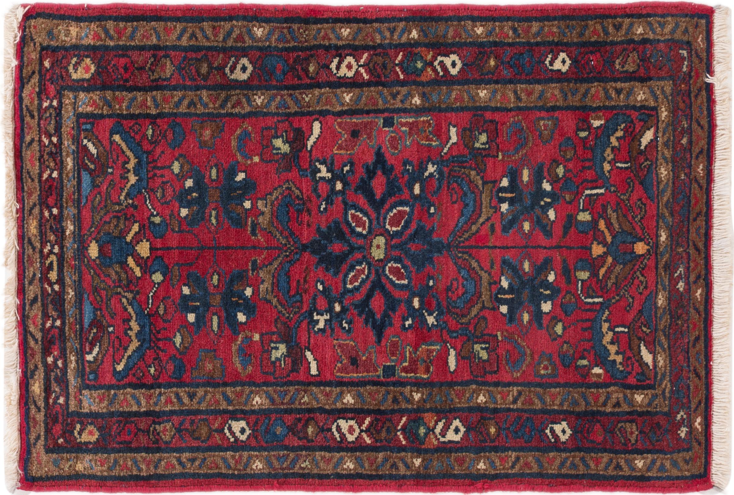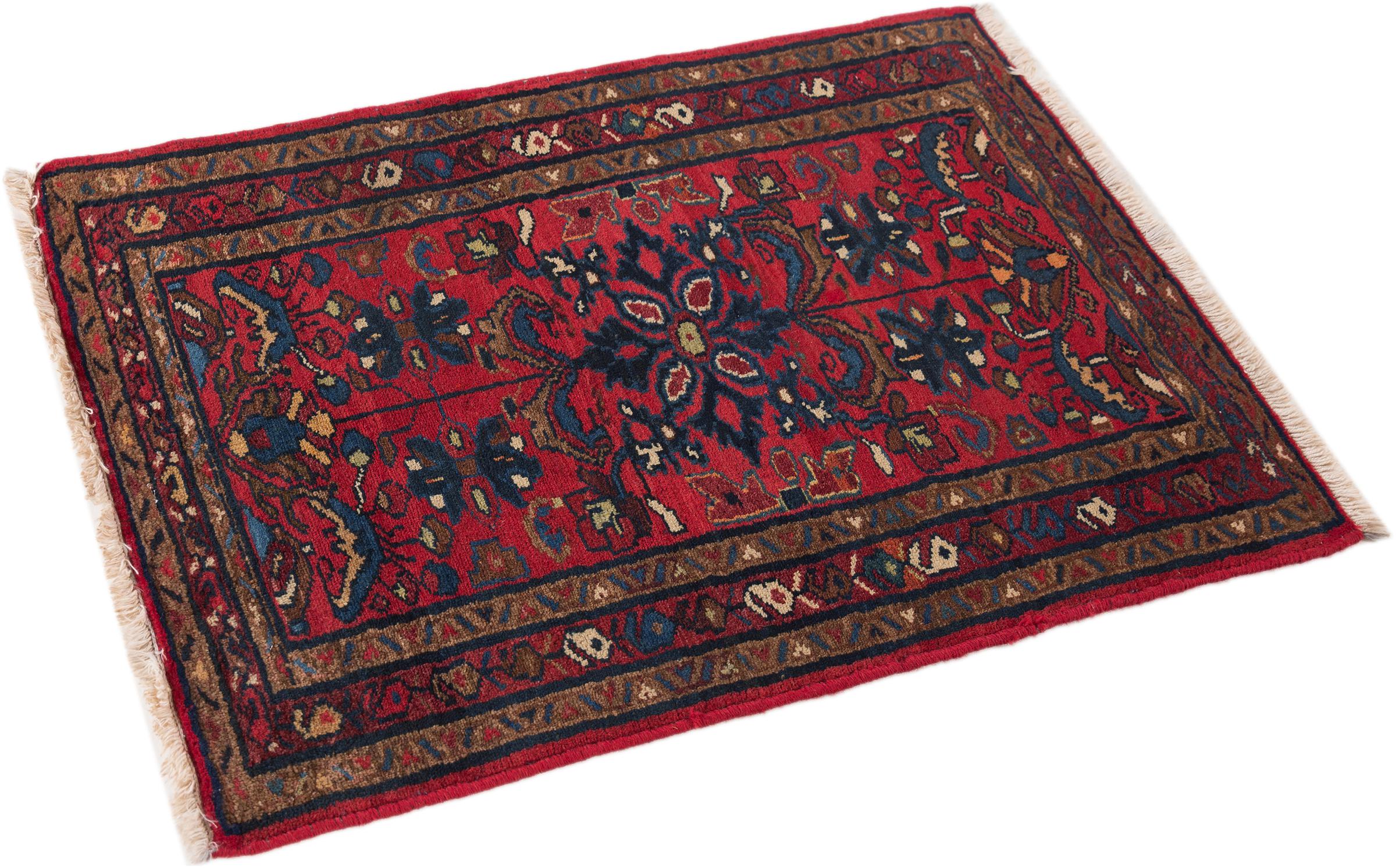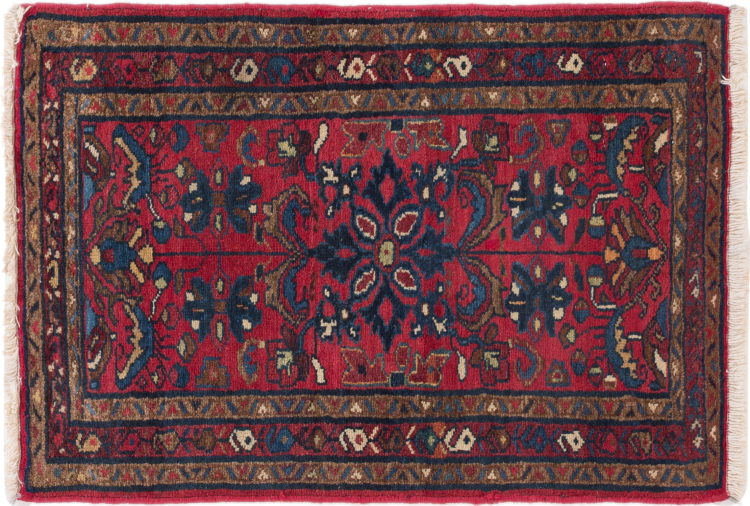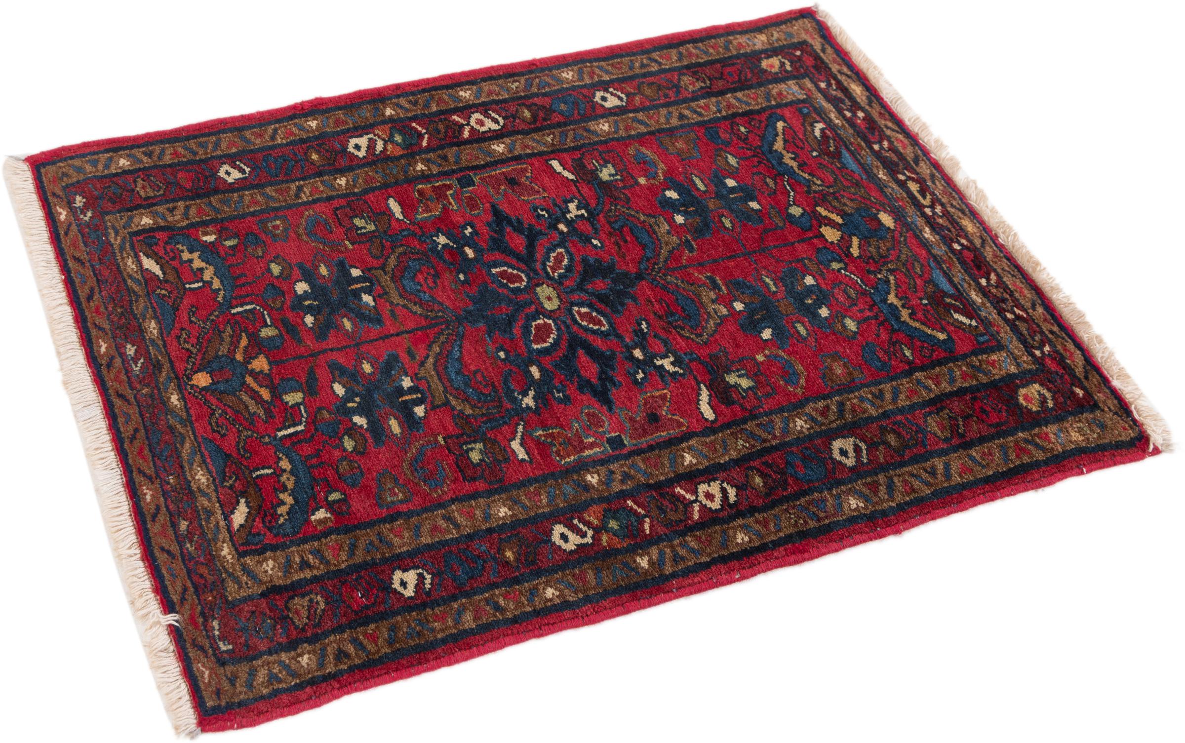 Rug ID: 29664000829 Size: 2'6"x1'9" ft Thickness: ap. 0.47 in Knot density: 291 - 323 / square inch Manufacturing: Knotted by hand Pile: Handspun wool Warp: Cotton Origin: Persia / Iran Age: Old/Semi antique, over 50 years Weight: ap. 2 lb Also know as Meriban In stock: Unique - Only 1 in stock