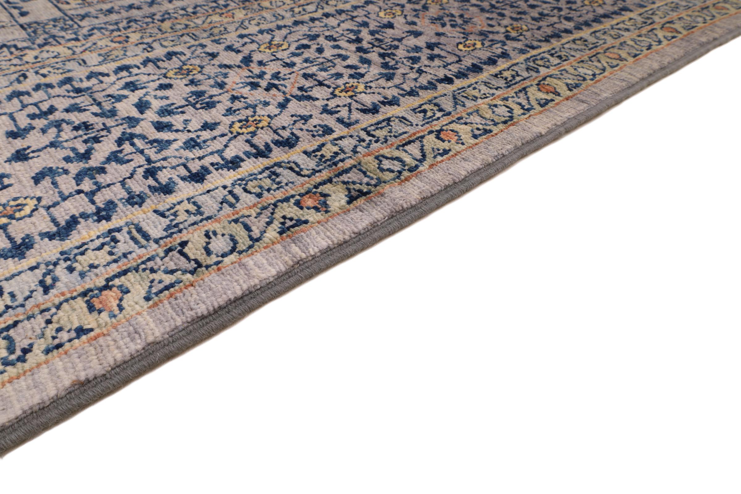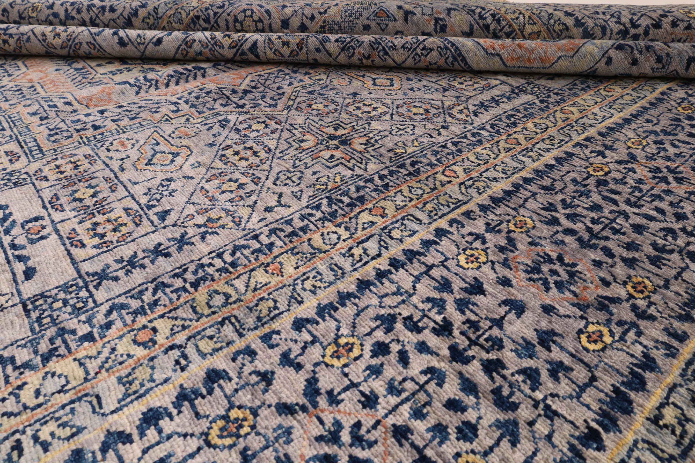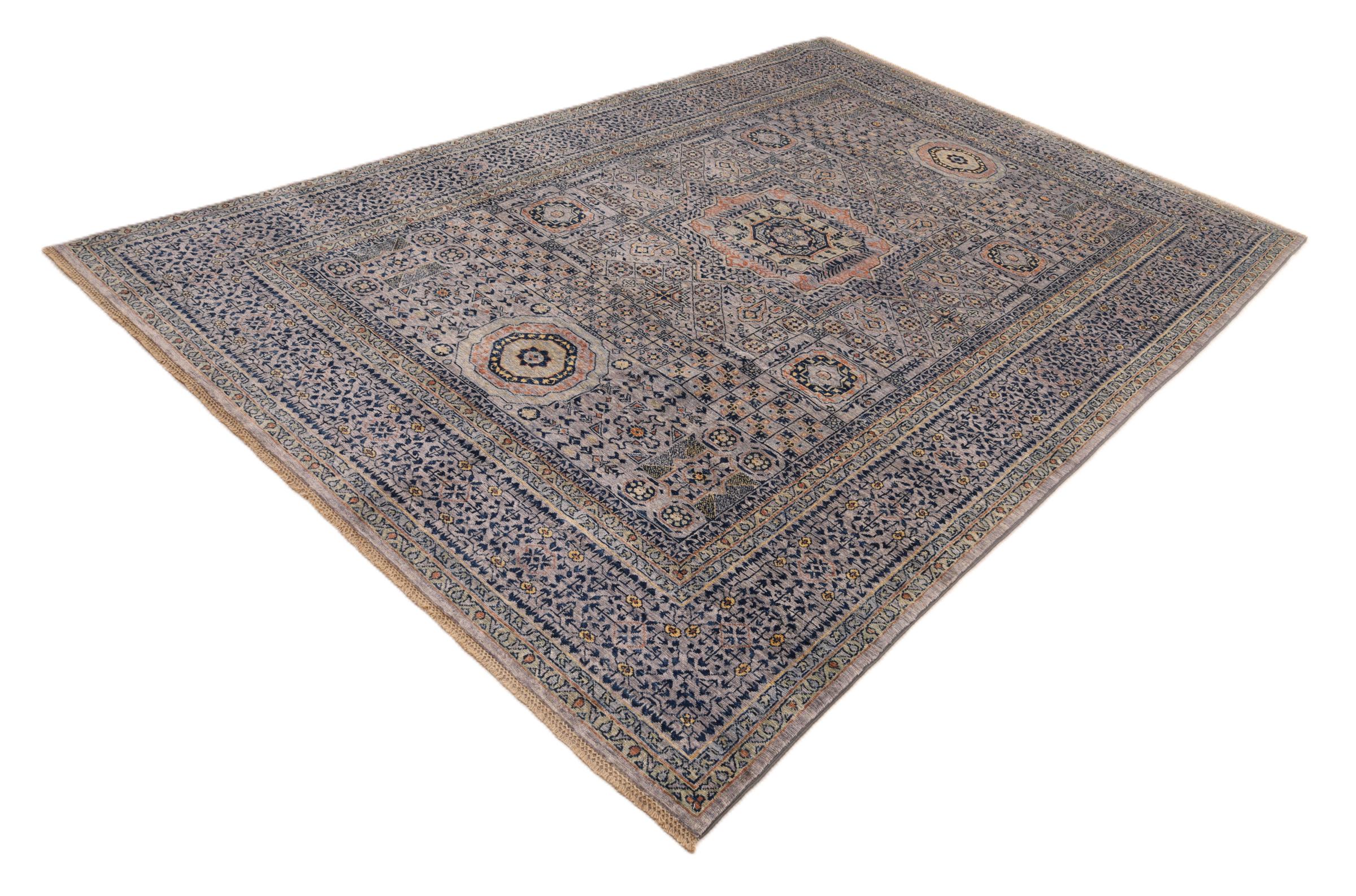 This carpet belongs to the village and nomadic carpets from Iran, the former Persia. This kind of carpets is hand knotted in smaller towns and villages in ancient tradition. Even nomads still knot Persian carpets in the open air. The carpets are knotted without a draft and entirely from memory. They are characterized by classical ornaments arranged in linear and geometric patterns. Thanks to their cultural and traditional origins, these rugs possess a unique character that embodies ancient Persia.