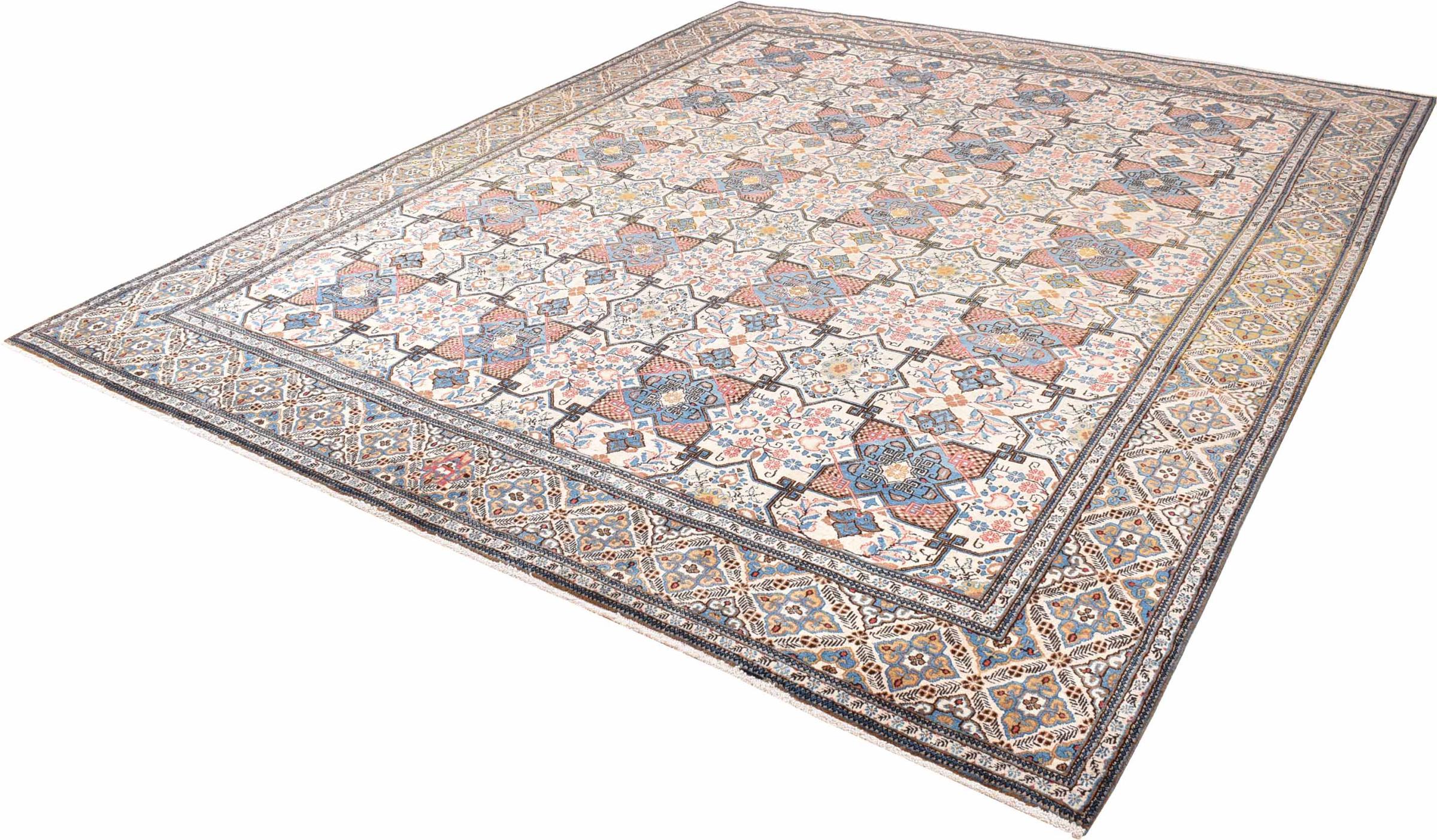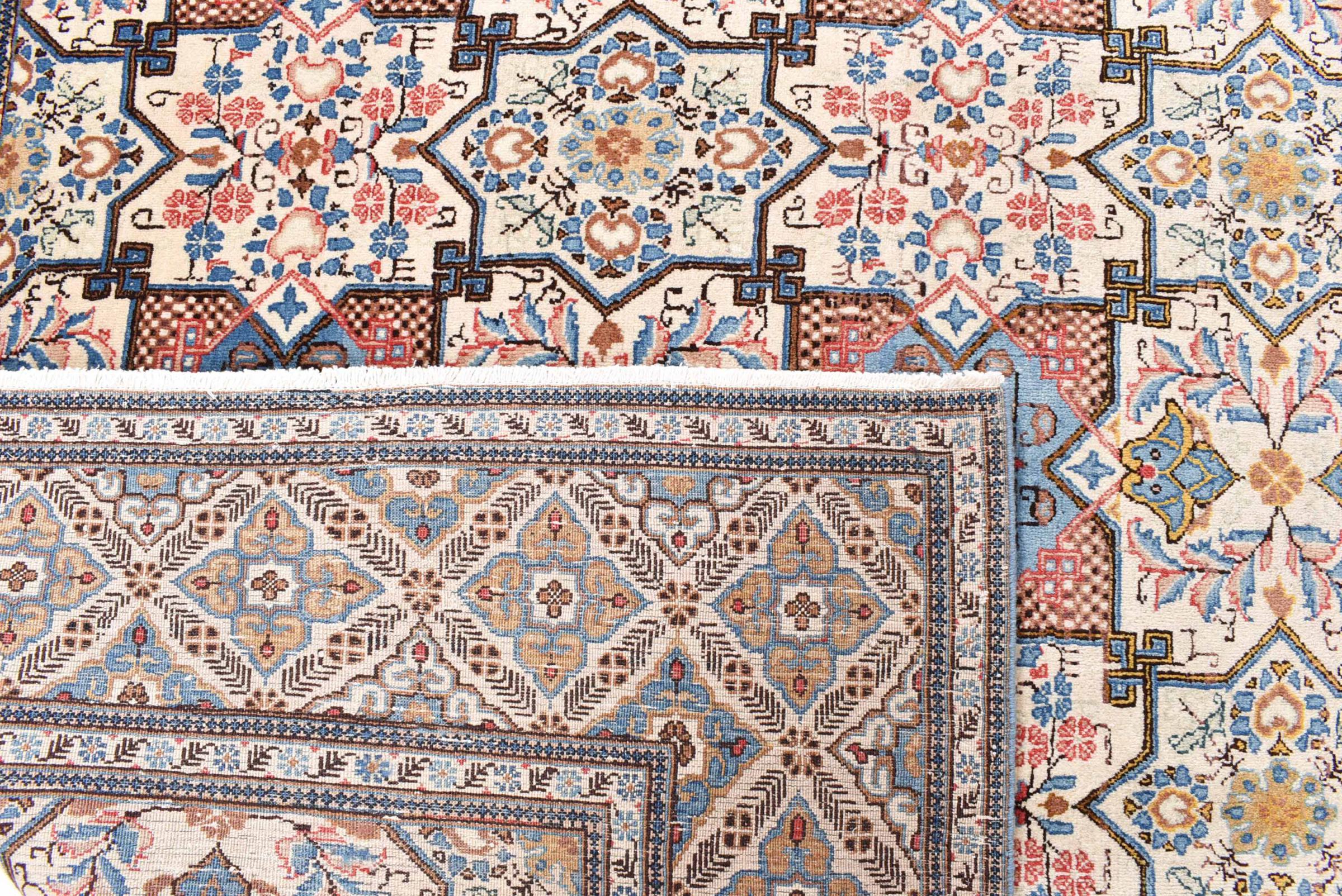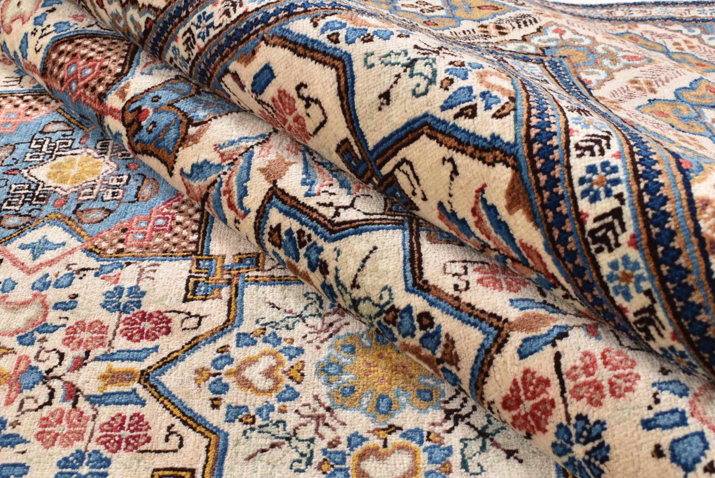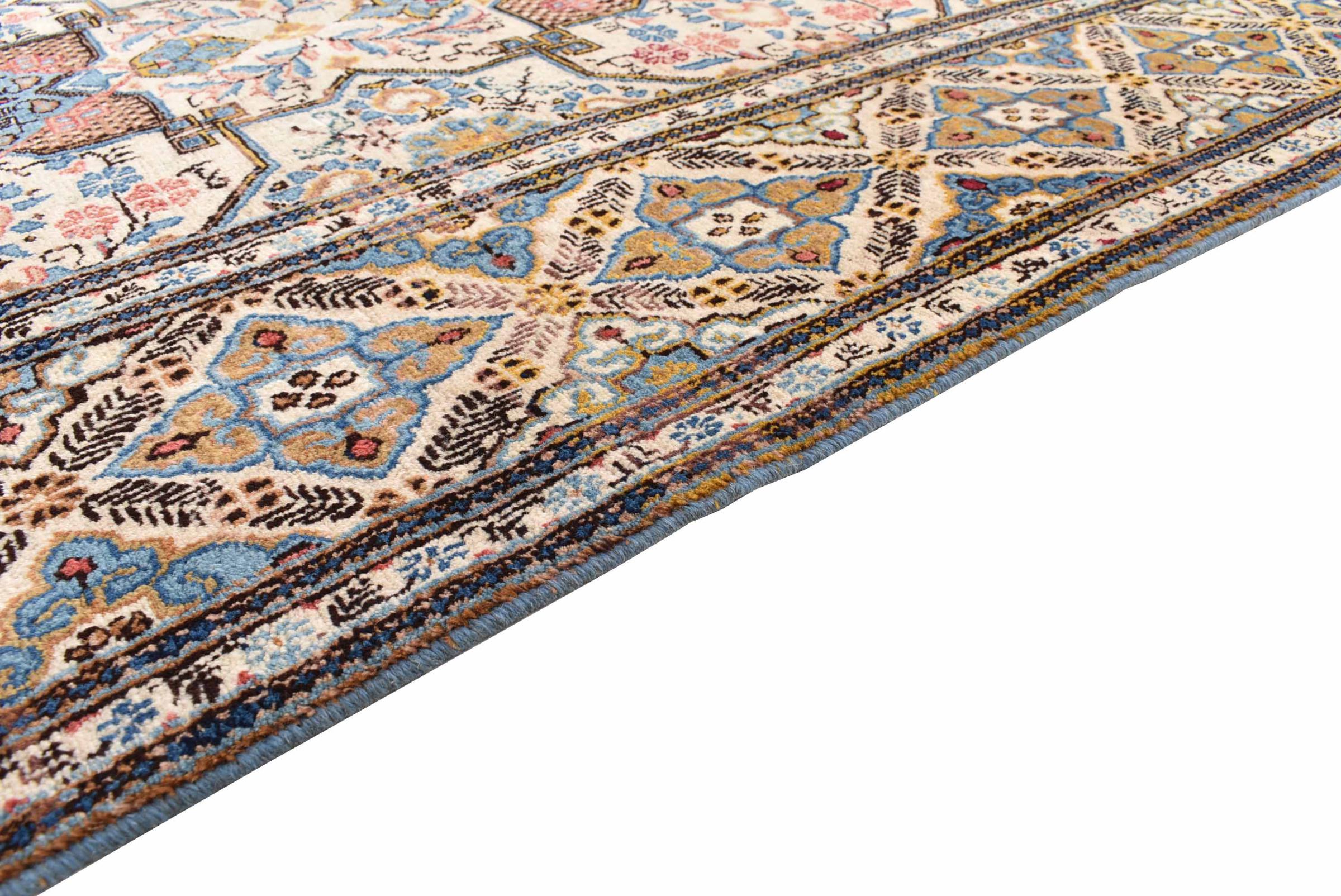 This rug comes from the small Persian town Moud also called Mud. It is exceptionally well-known for its herati or garden design patterns. This rug possesses colors typical for Moud rugs. It comes with a fine quality characterized by the most popular Persian knot. The rug can be placed in almost every room of your home.