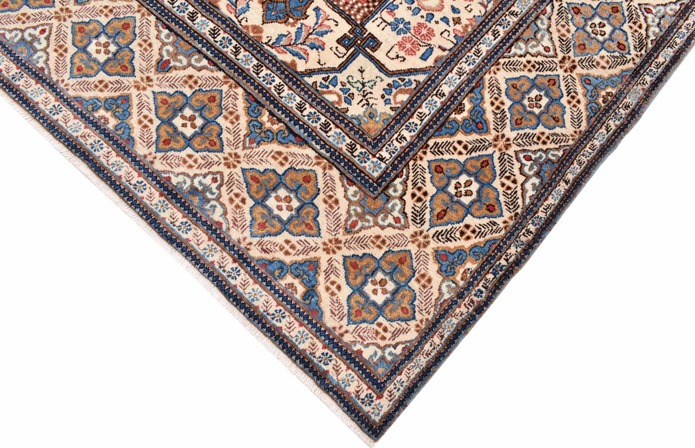 This rug is made of hand spun sheep wool of the highest quality. Especially in Iran (former Persia), Afghanistan and Pakistan wool is still spun by hand before the actual knotting of the rug begins. Wool has proven itself as a natural and extremely hard-wearing material over centuries. Among other things, it has dirt-repellent and heat-insulating properties. At the same time, wool is incomparably soft and has a natural shine.