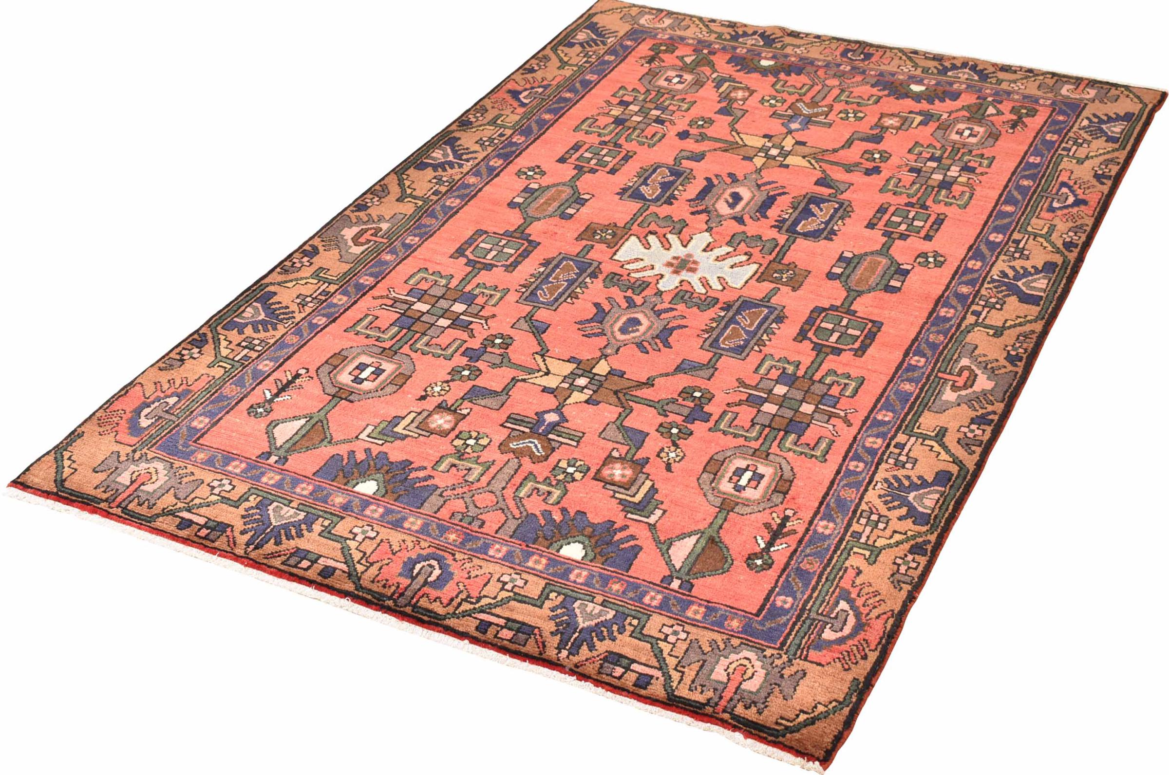 This carpet belongs to the village and nomadic carpets from Iran, the former Persia. This kind of carpets is hand knotted in smaller towns and villages in ancient tradition. Even nomads still knot Persian carpets in the open air. The carpets are knotted without a draft and entirely from memory. They are characterized by classical ornaments arranged in linear and geometric patterns. Thanks to their cultural and traditional origins, these rugs possess a unique character that embodies ancient Persia.