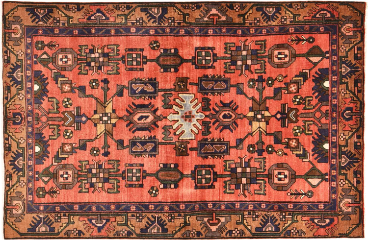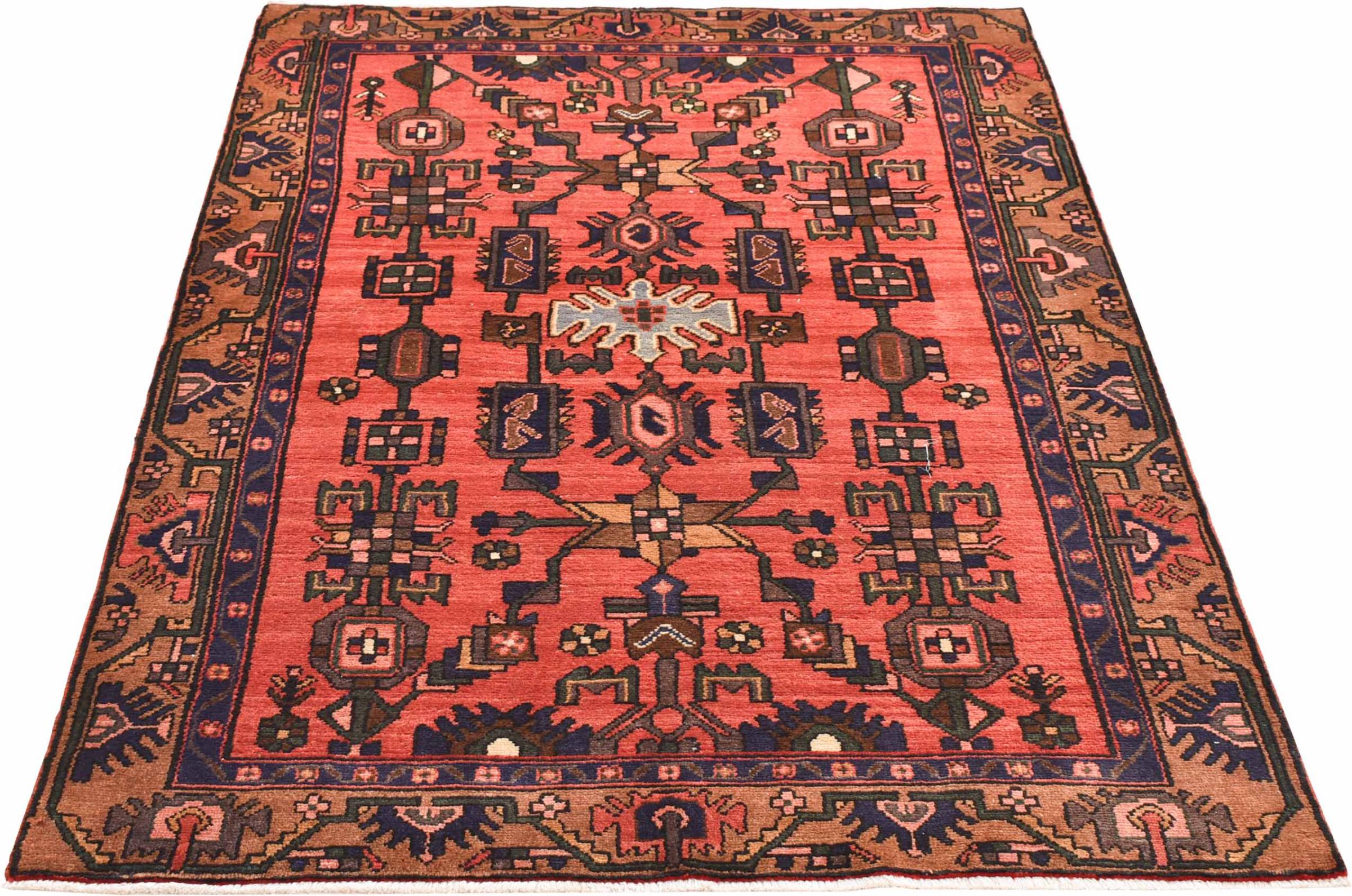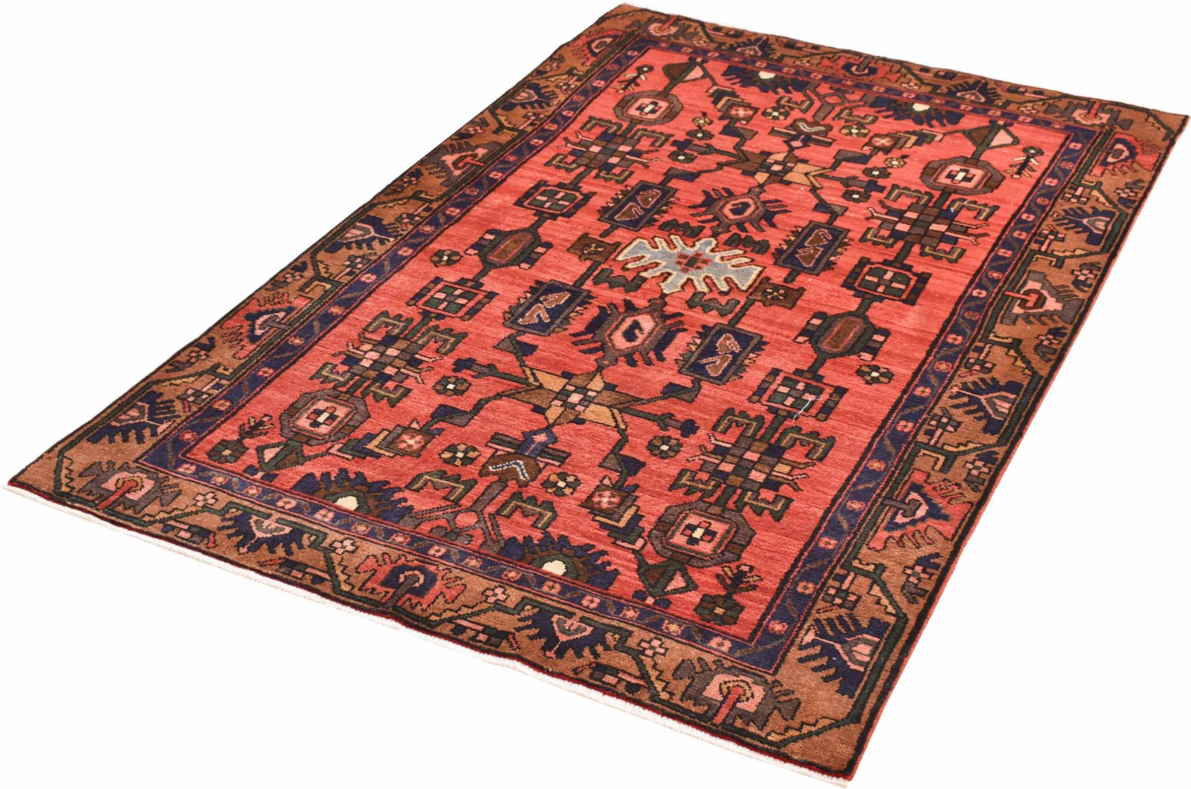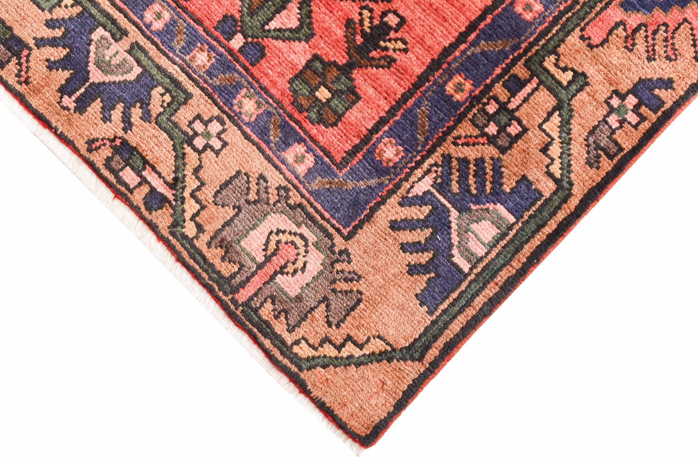 A typical Persian Nahavand rug with shades of red and blue. Especially the color blue is characteristic for this type of Persian nomad rug. The wool originates from sheep of the nomads and is of exceptional quality.