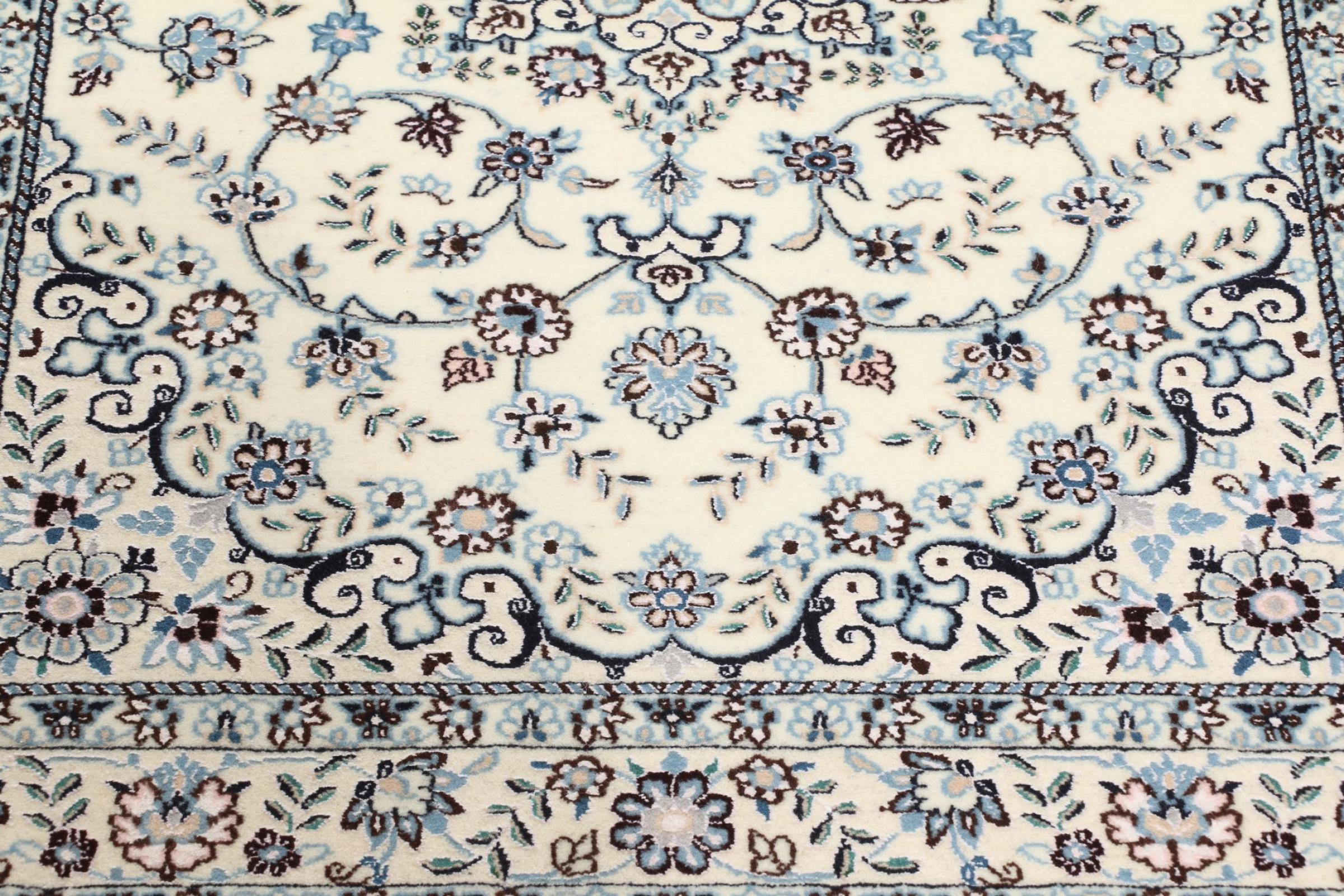 This Nain embodies the most sophisticated quality with elevated traditional handicraft. A rug of this level of quality belongs to the most elevated class of Persian rugs. It has been crafted by hand from finest cork wool and pure silk. The rug origins from the city Nain in Persia. Cork wool is exceptionally fine and soft due to originating solely from the neck of sheep. It has a high degree of fat making it likewise stronger to any stress. With a 6La or 4La Nain you pick a class of unadulterated tastefulness and most astounding quality.
