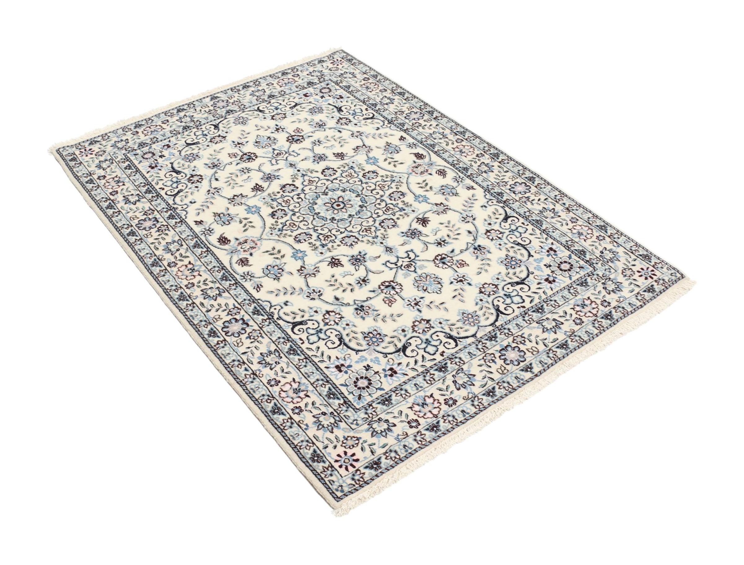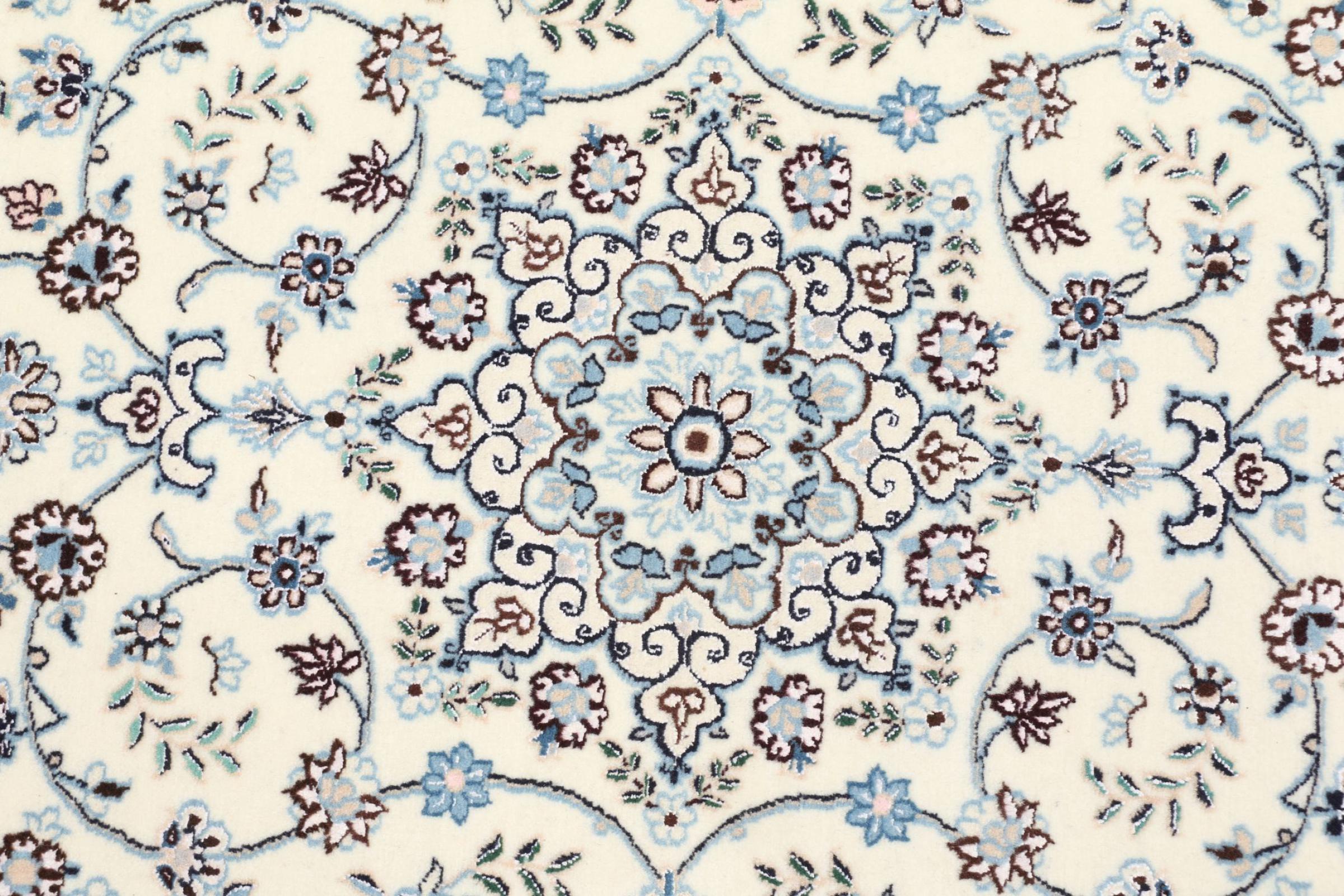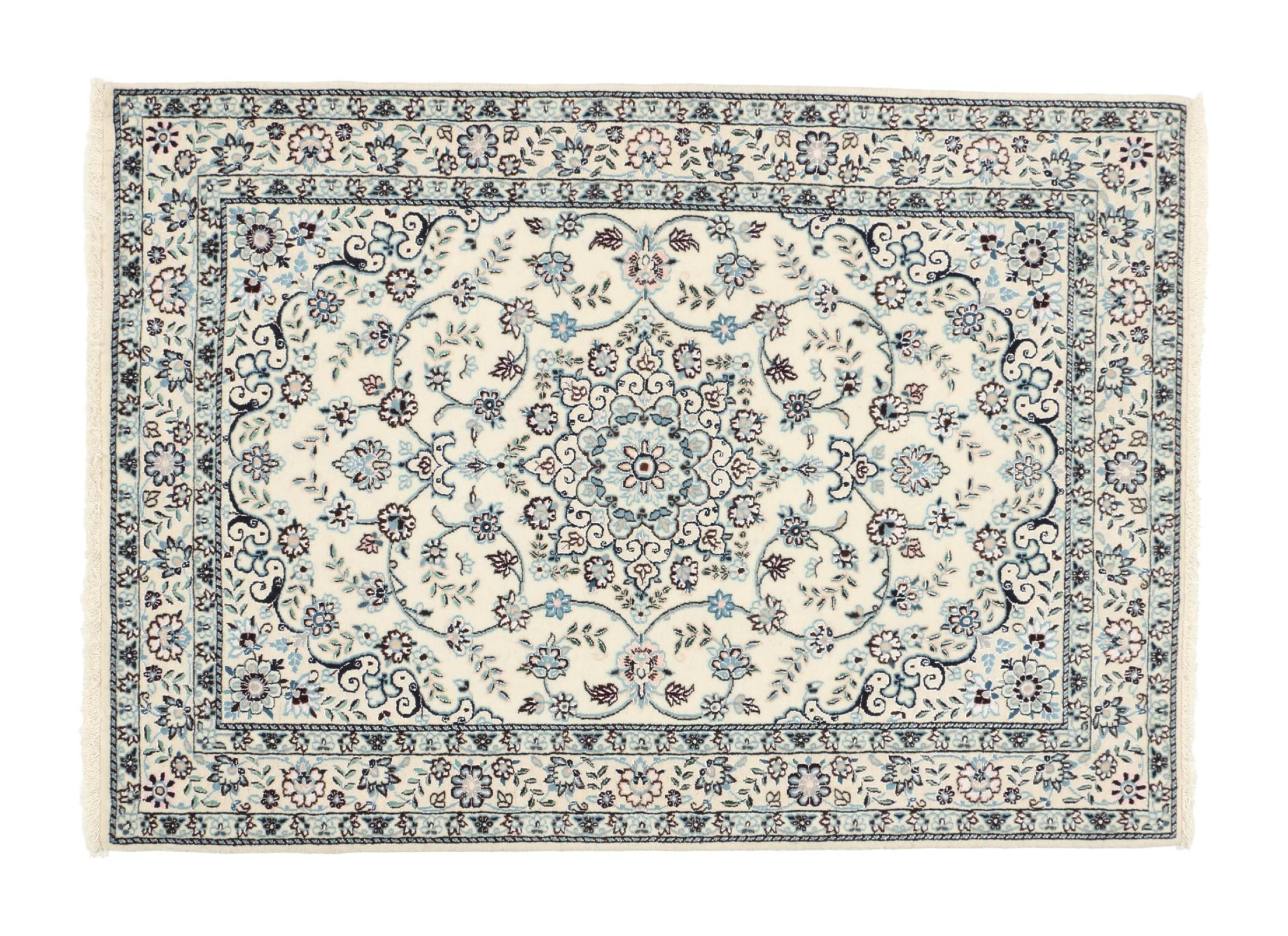 Rugs from the city of Nain, located near one of Iran's largest deserts, are among the most renowned Persian rugs in the world. Their typical design is unmistakable, featuring floral ornaments, a central medallion, and tones of beige, red, or blue. Thanks to their designations of 4La, 6La, 9La, and 12La, the fineness of a Nain rug can be easily identified at a glance. The rule is, the lower the "La" number, the higher the knot density and thus the finer the rug.