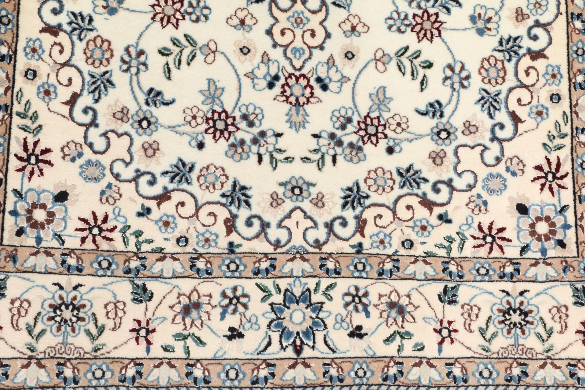 This Nain embodies the most sophisticated quality with elevated traditional handicraft. A rug of this level of quality belongs to the most elevated class of Persian rugs. It has been crafted by hand from finest cork wool and pure silk. The rug origins from the city Nain in Persia. Cork wool is exceptionally fine and soft due to originating solely from the neck of sheep. It has a high degree of fat making it likewise stronger to any stress. With a 6La or 4La Nain you pick a class of unadulterated tastefulness and most astounding quality.
