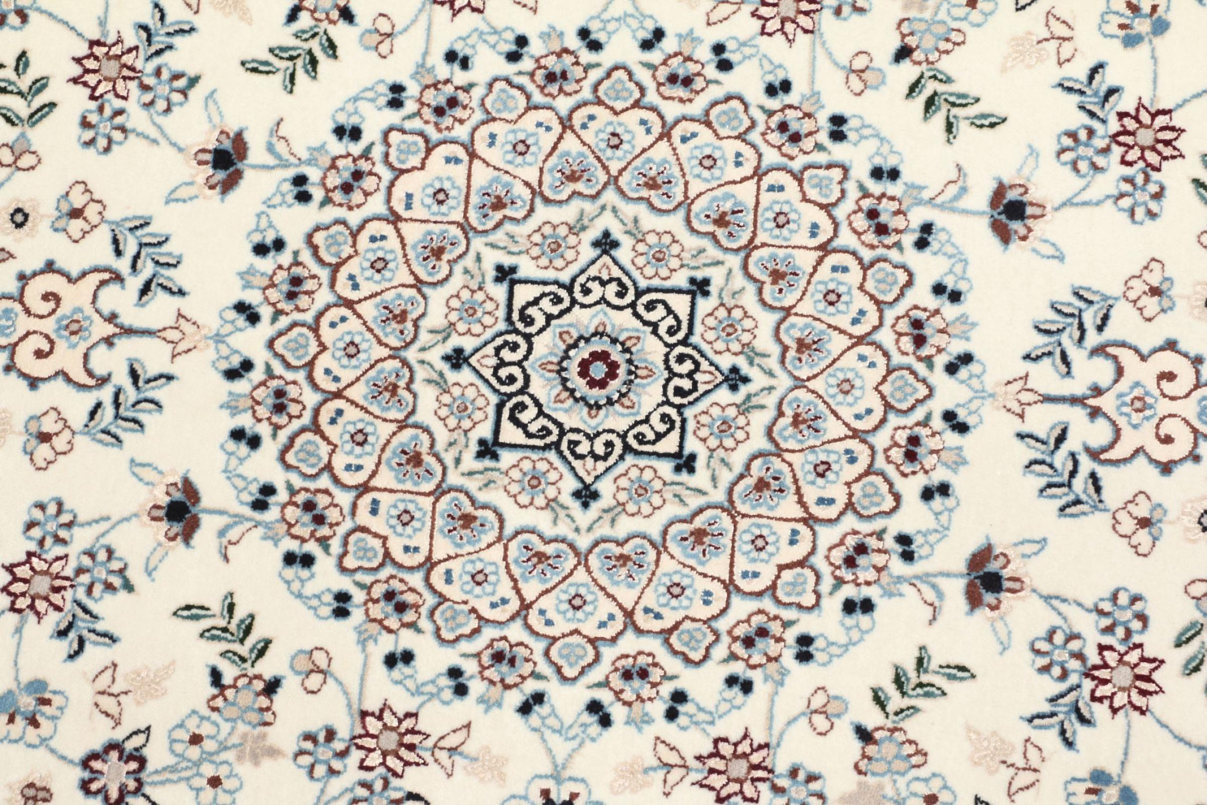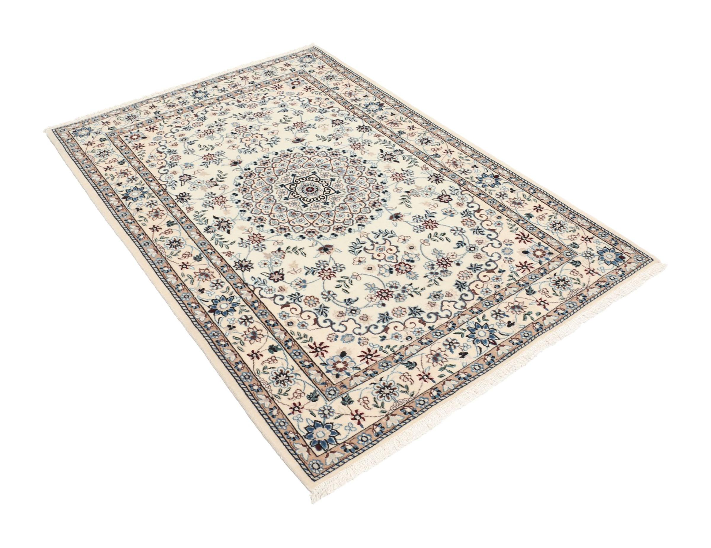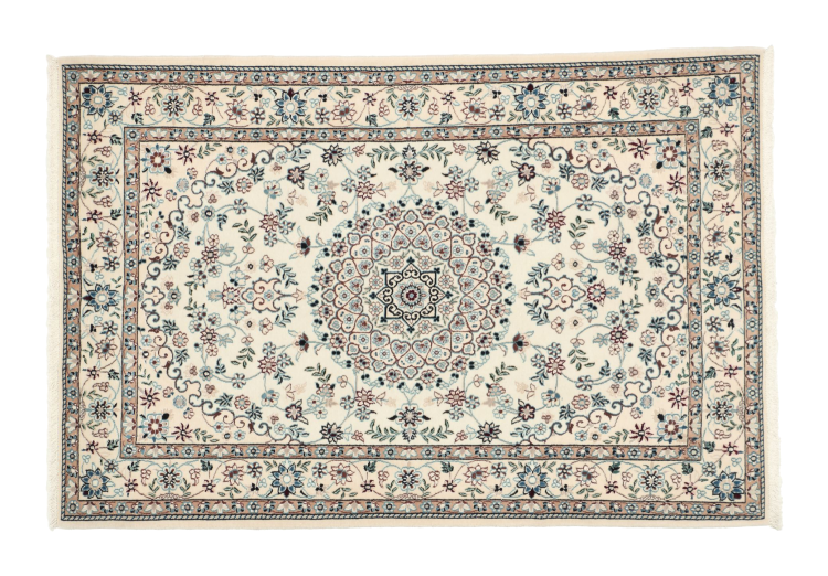 Rugs from the city of Nain, located near one of Iran's largest deserts, are among the most renowned Persian rugs in the world. Their typical design is unmistakable, featuring floral ornaments, a central medallion, and tones of beige, red, or blue. Thanks to their designations of 4La, 6La, 9La, and 12La, the fineness of a Nain rug can be easily identified at a glance. The rule is, the lower the "La" number, the higher the knot density and thus the finer the rug.