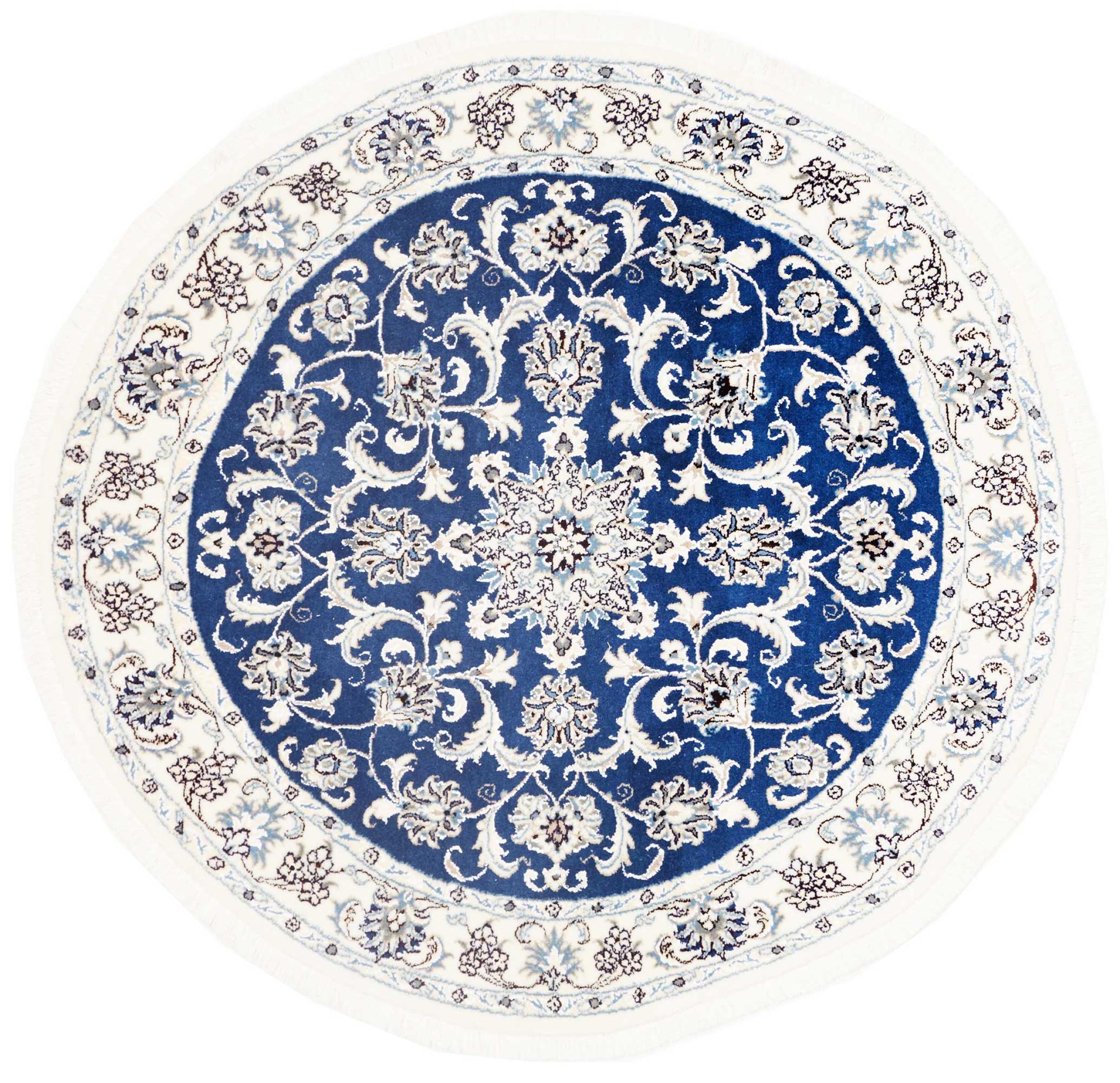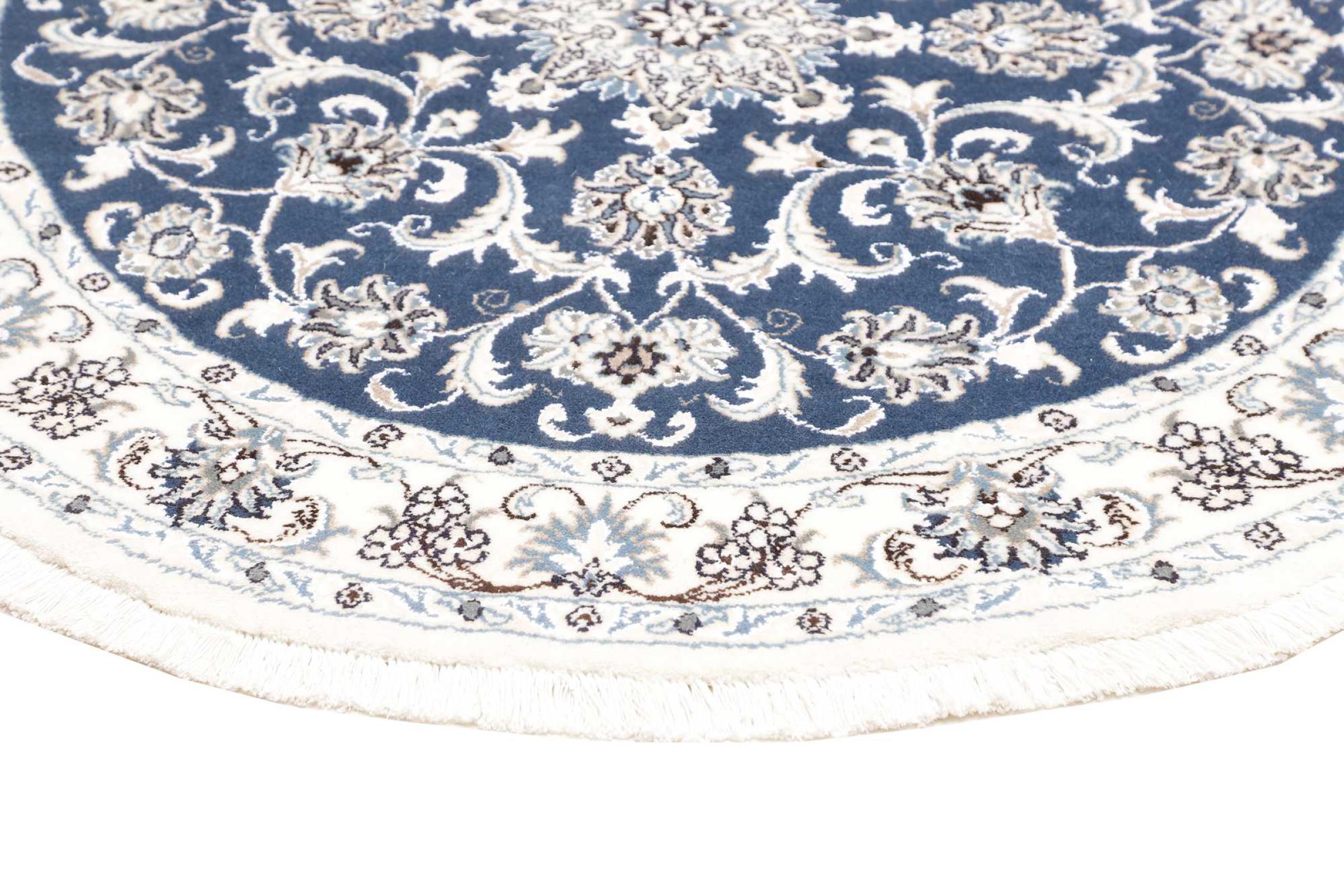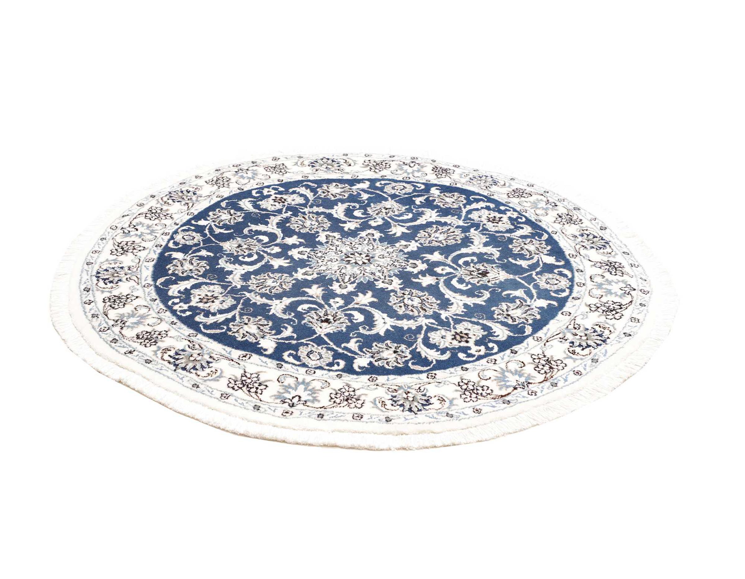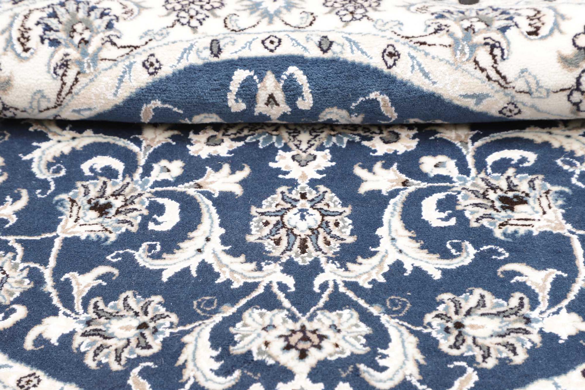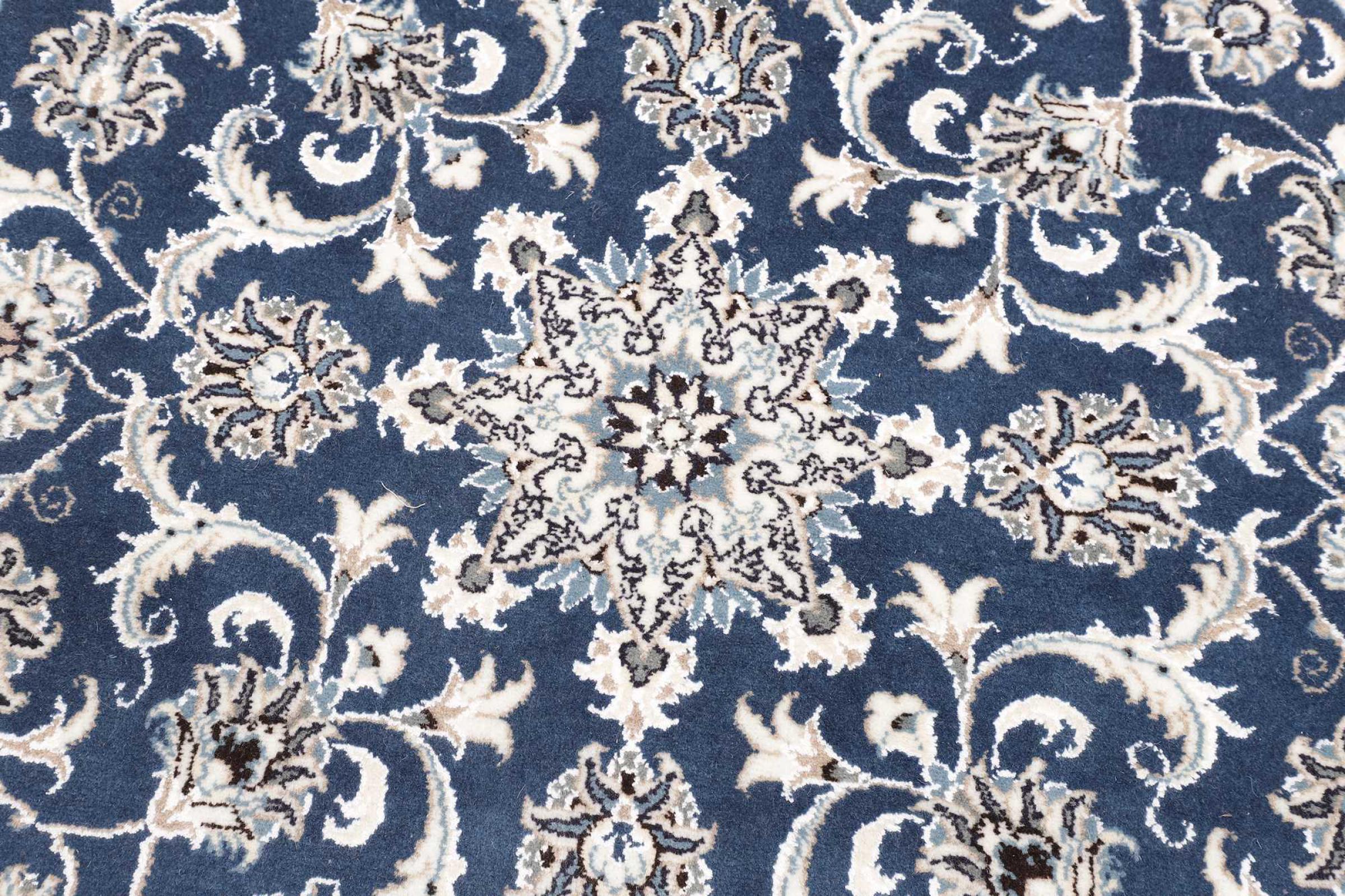 Rugs from the city of Nain, located near one of Iran's largest deserts, are among the most renowned Persian rugs in the world. Their typical design is unmistakable, featuring floral ornaments, a central medallion, and tones of beige, red, or blue. Thanks to their designations of 4La, 6La, 9La, and 12La, the fineness of a Nain rug can be easily identified at a glance. The rule is, the lower the "La" number, the higher the knot density and thus the finer the rug.