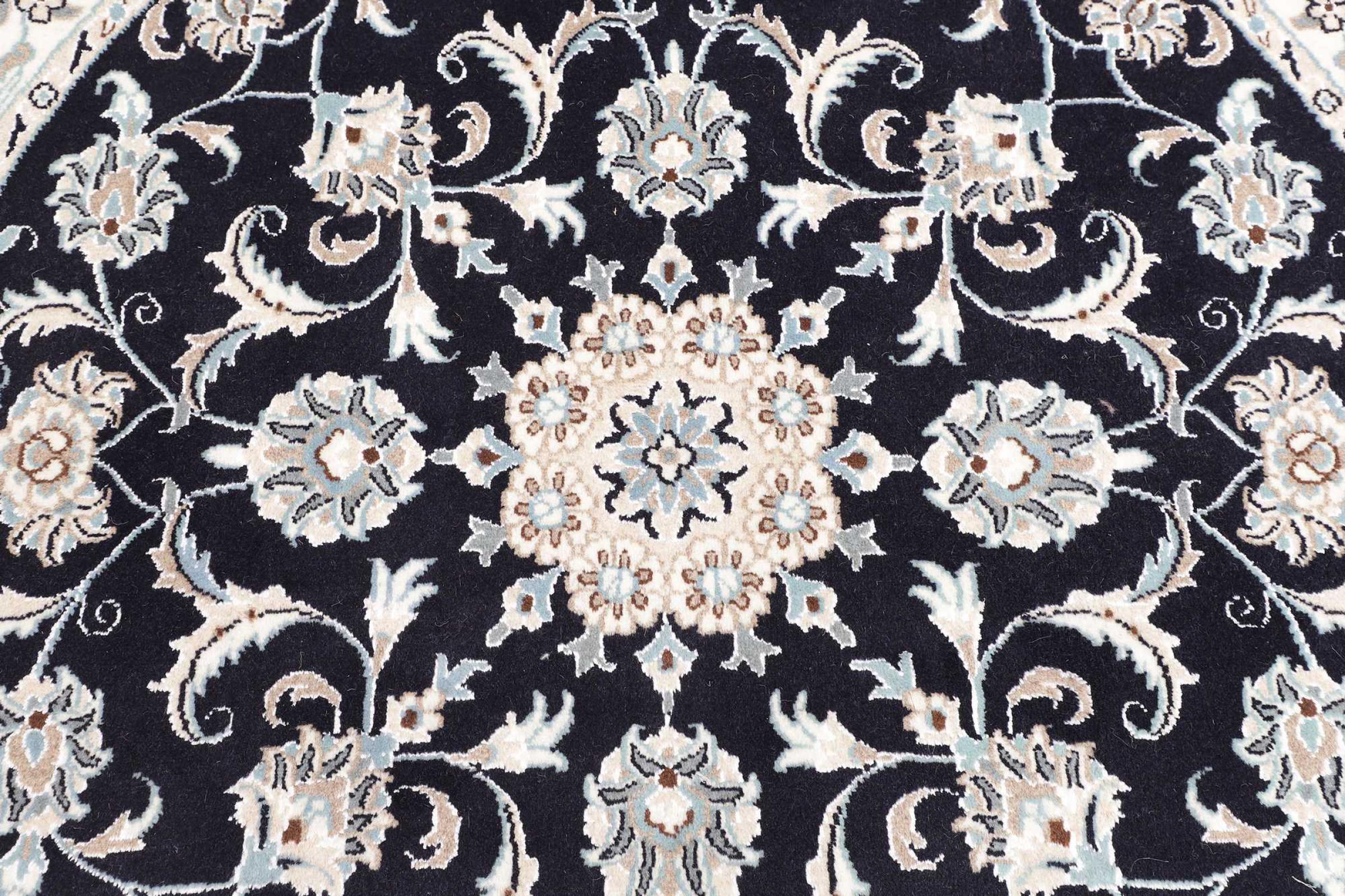 Rugs from the city of Nain, located near one of Iran's largest deserts, are among the most renowned Persian rugs in the world. Their typical design is unmistakable, featuring floral ornaments, a central medallion, and tones of beige, red, or blue. Thanks to their designations of 4La, 6La, 9La, and 12La, the fineness of a Nain rug can be easily identified at a glance. The rule is, the lower the "La" number, the higher the knot density and thus the finer the rug.