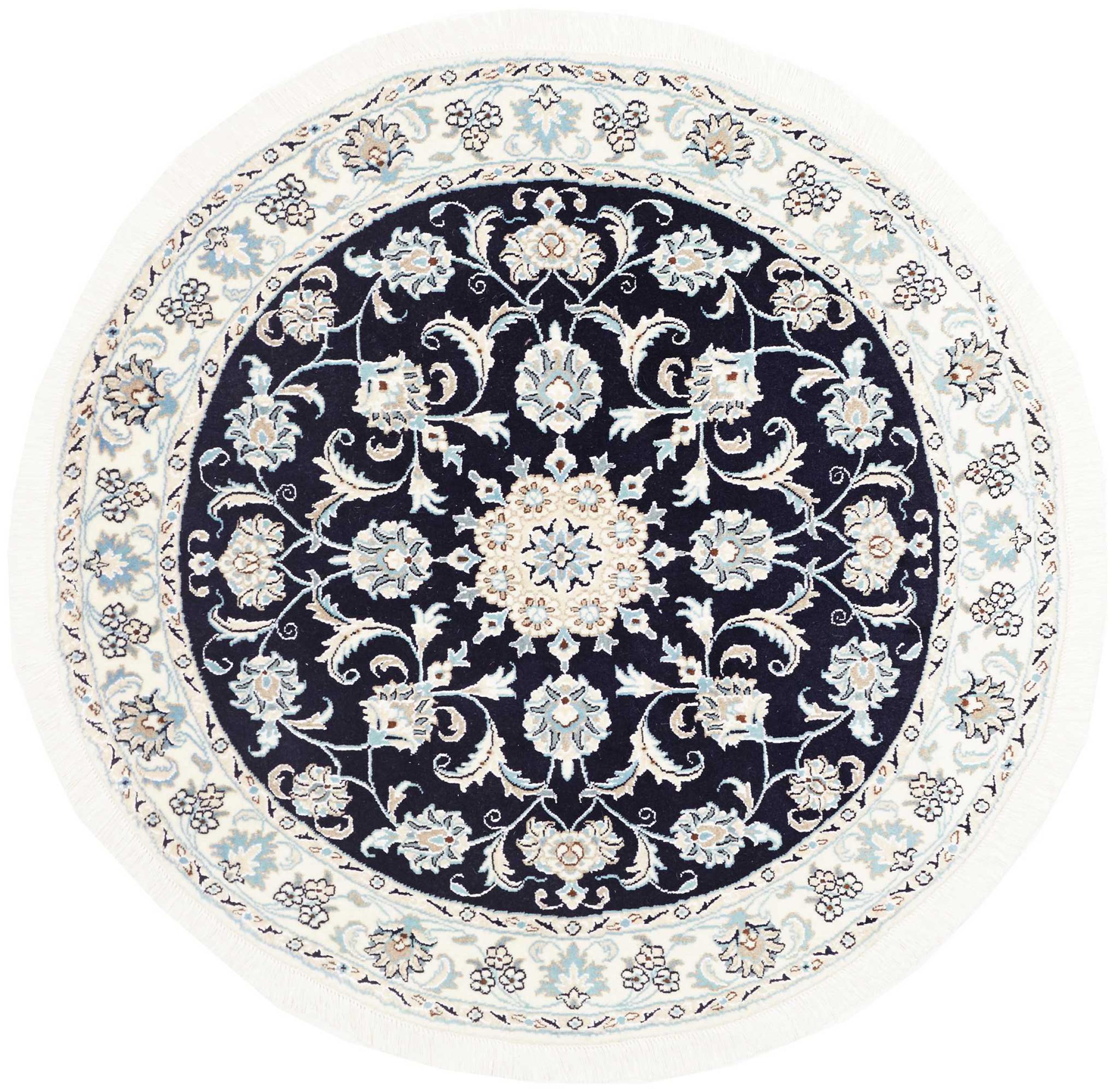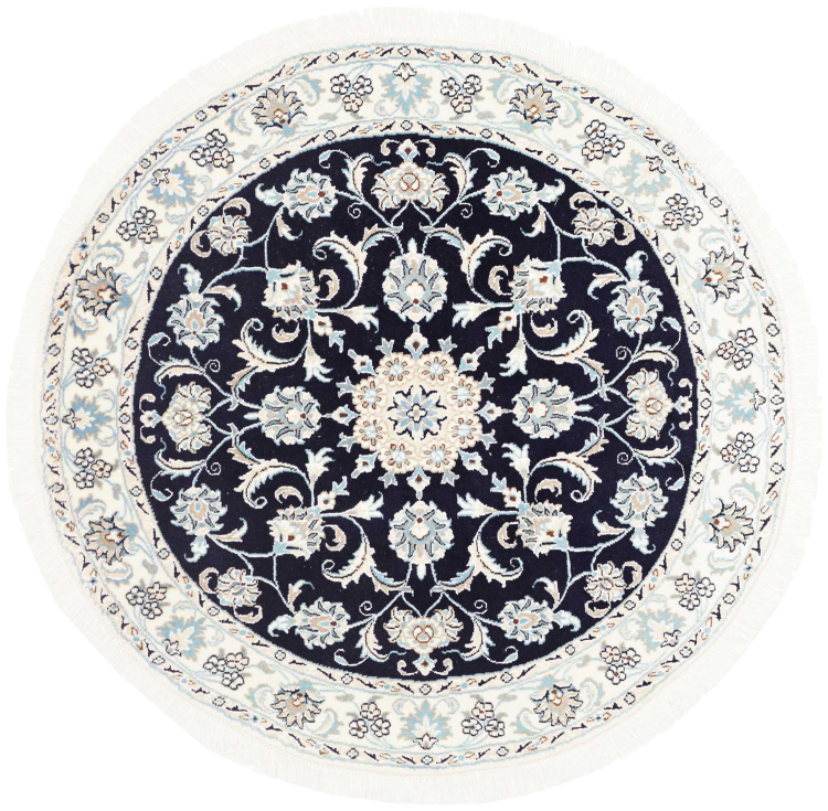 Rugs from the city of Nain, located near one of Iran's largest deserts, are among the most renowned Persian rugs in the world. Their typical design is unmistakable, featuring floral ornaments, a central medallion, and tones of beige, red, or blue. Thanks to their designations of 4La, 6La, 9La, and 12La, the fineness of a Nain rug can be easily identified at a glance. The rule is, the lower the "La" number, the higher the knot density and thus the finer the rug.