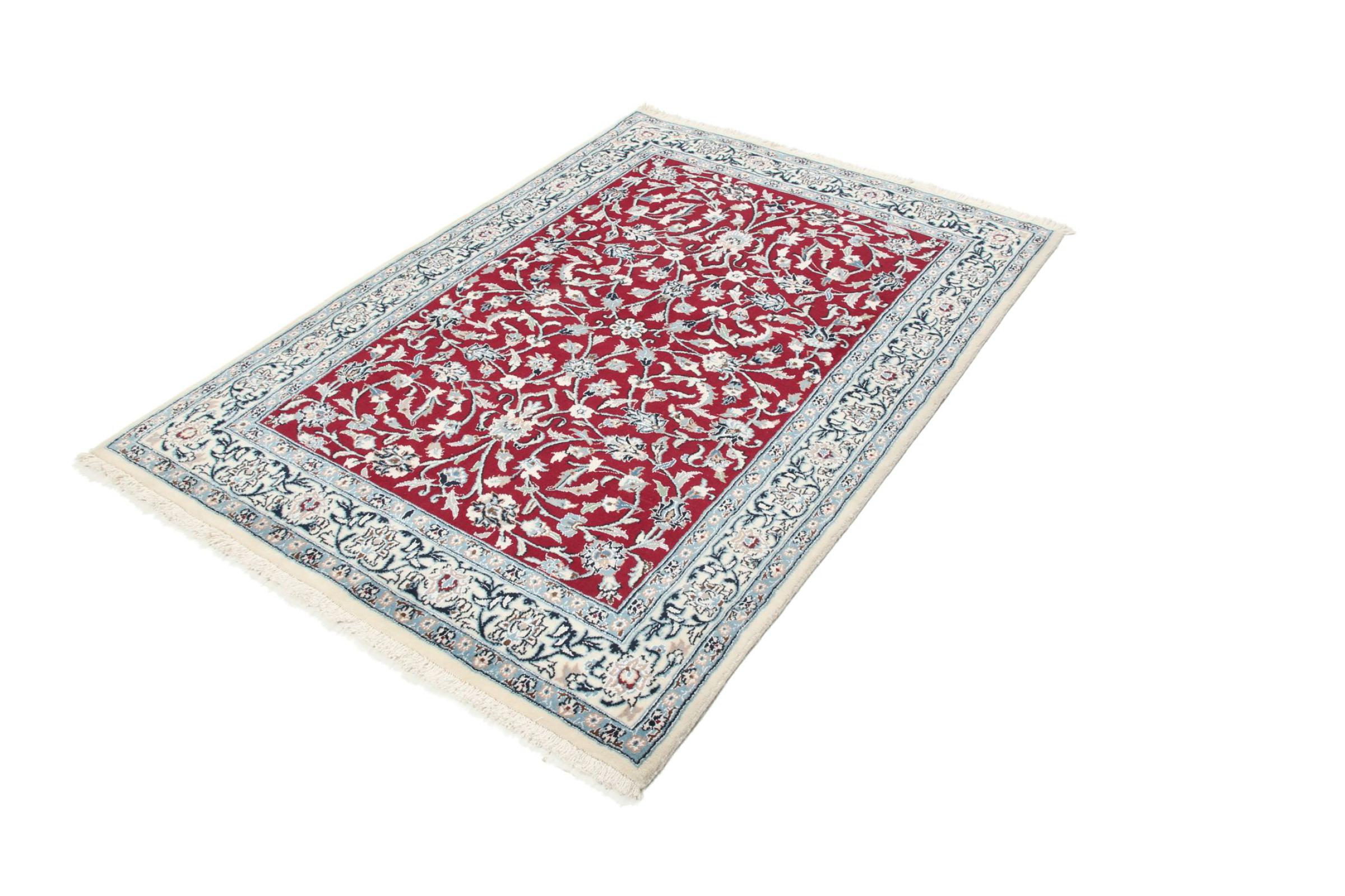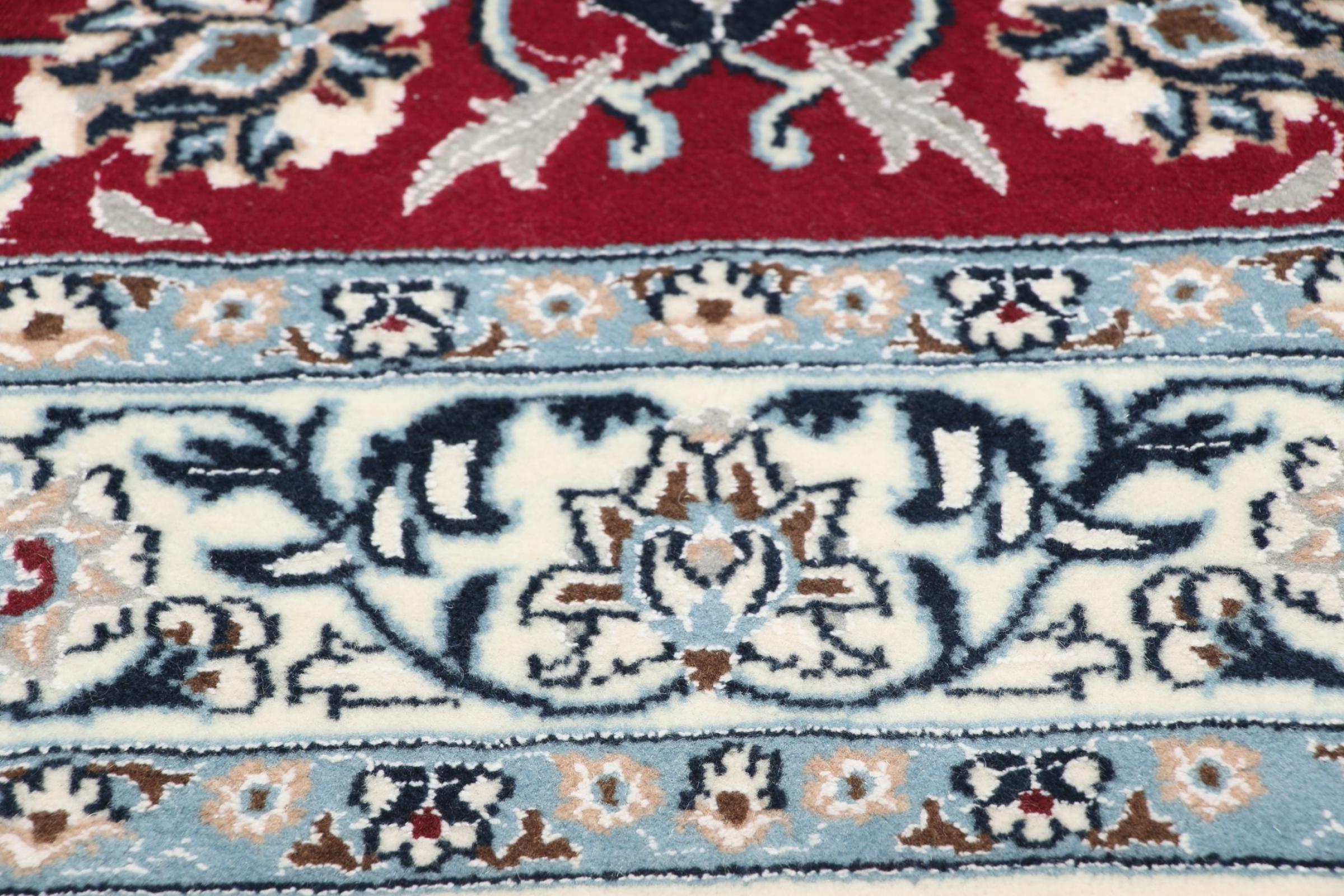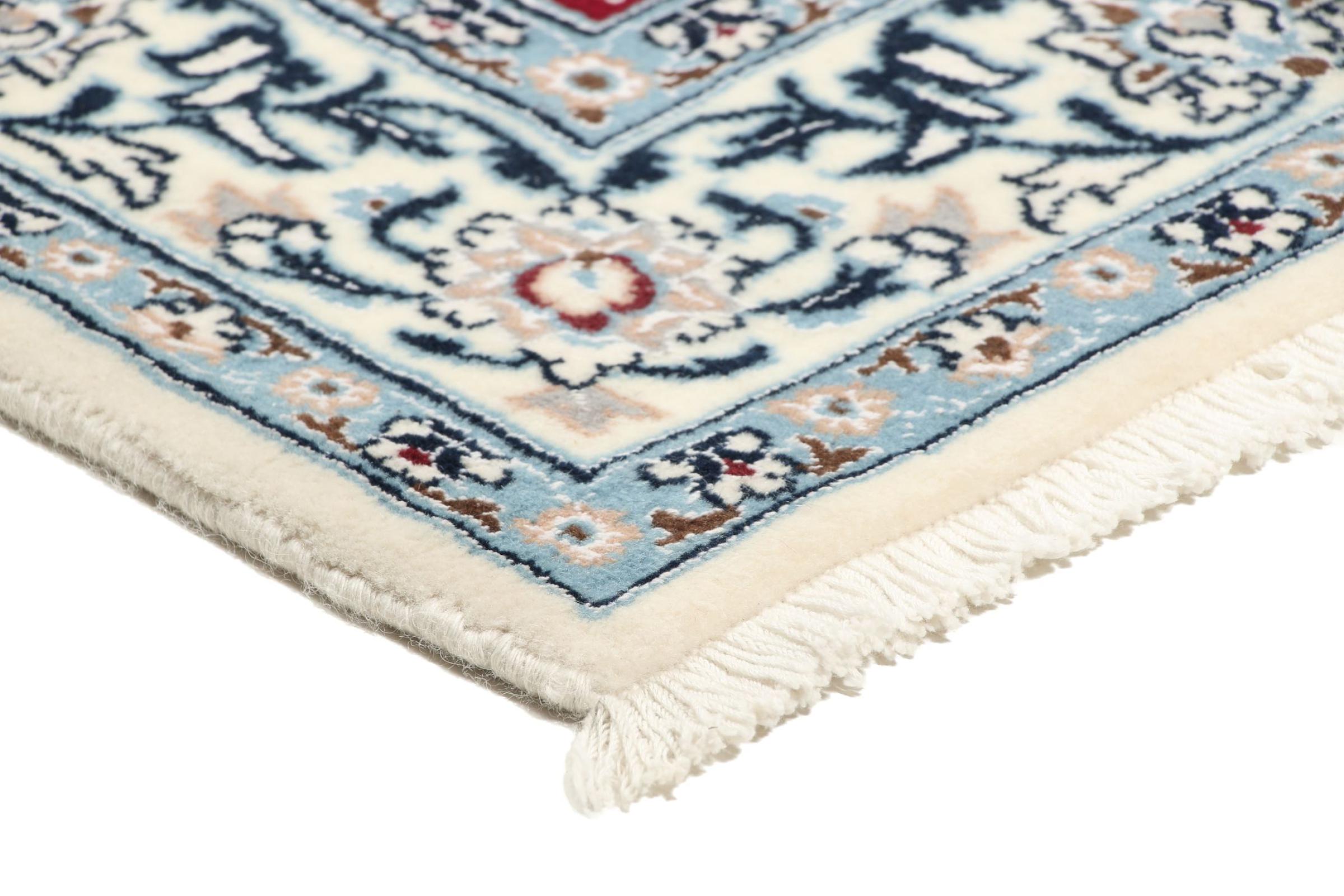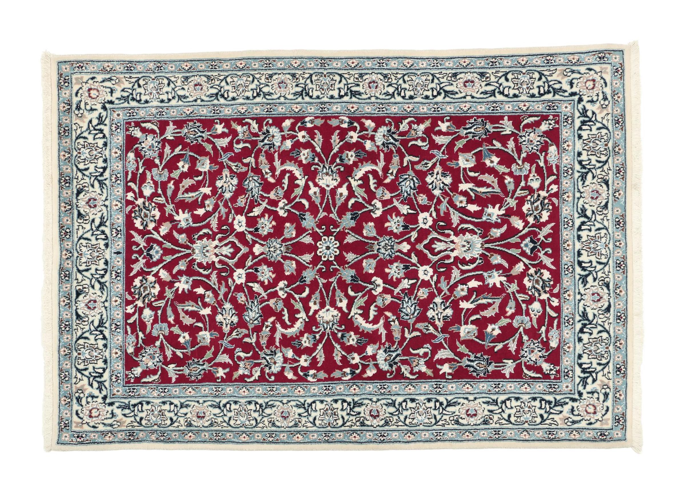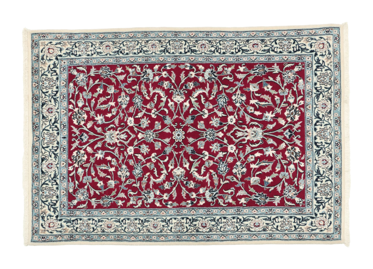 Rugs from the city of Nain, located near one of Iran's largest deserts, are among the most renowned Persian rugs in the world. Their typical design is unmistakable, featuring floral ornaments, a central medallion, and tones of beige, red, or blue. Thanks to their designations of 4La, 6La, 9La, and 12La, the fineness of a Nain rug can be easily identified at a glance. The rule is, the lower the "La" number, the higher the knot density and thus the finer the rug.
