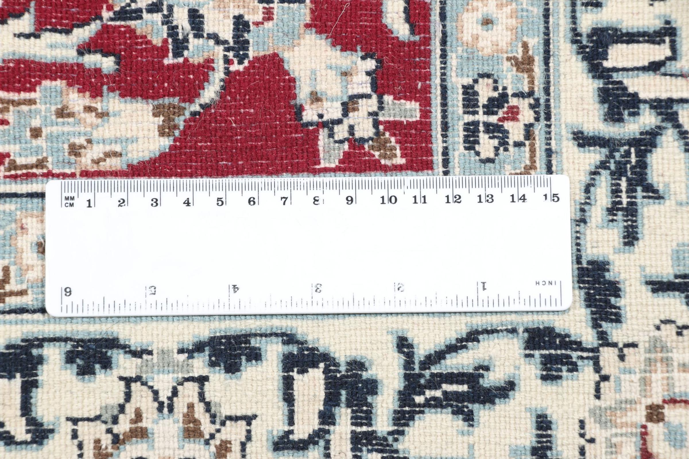 This Nain rug is categorized as 9La. It has a remarkable quality and a typical Persian curvilinear design for a great highlight for your home. This Persian rug has been knotted by hand from high grade sheep wool and natural silk in our own ateliers in Nain. This popular city is located in the western part of the desert Dasht-e-Kavir.