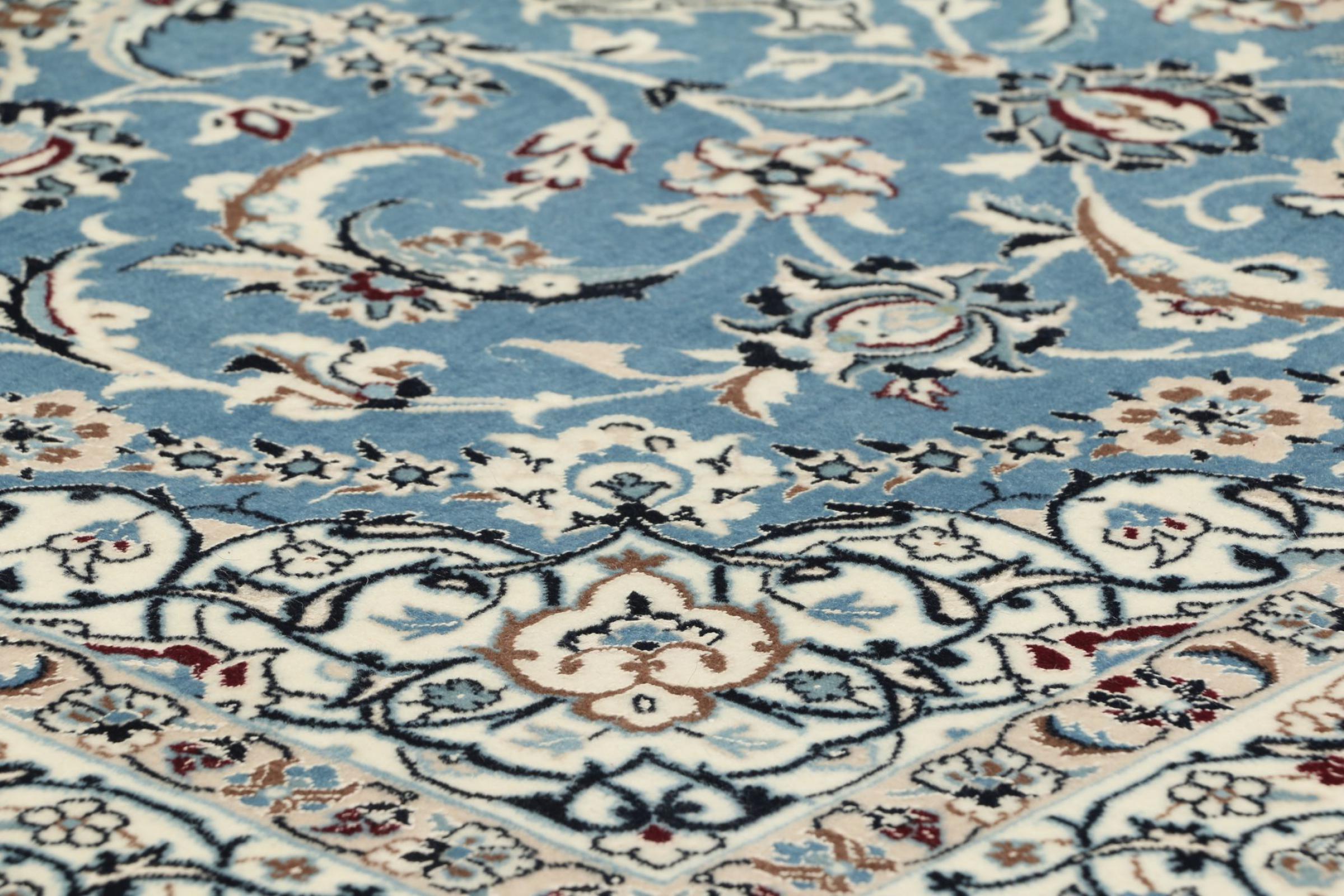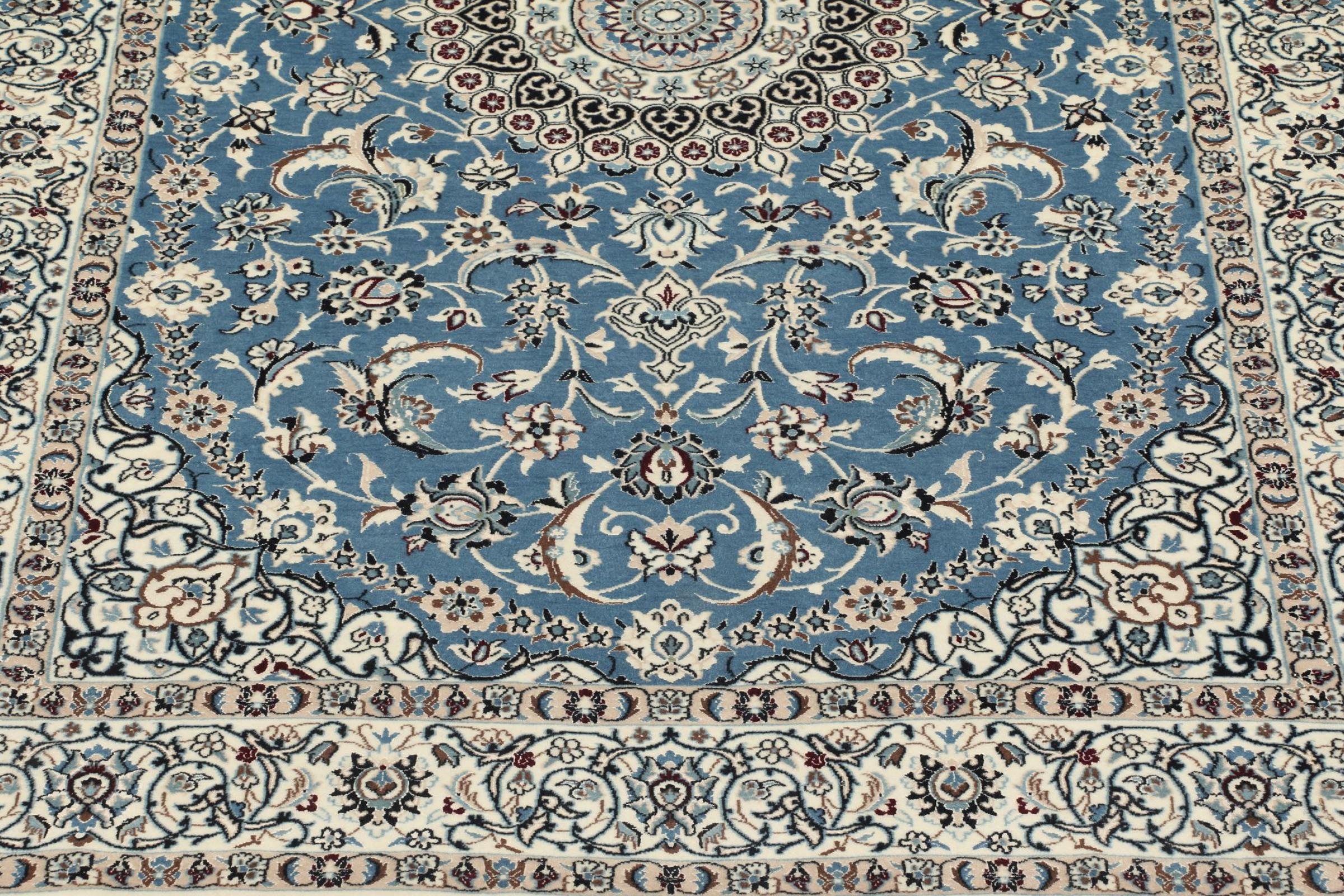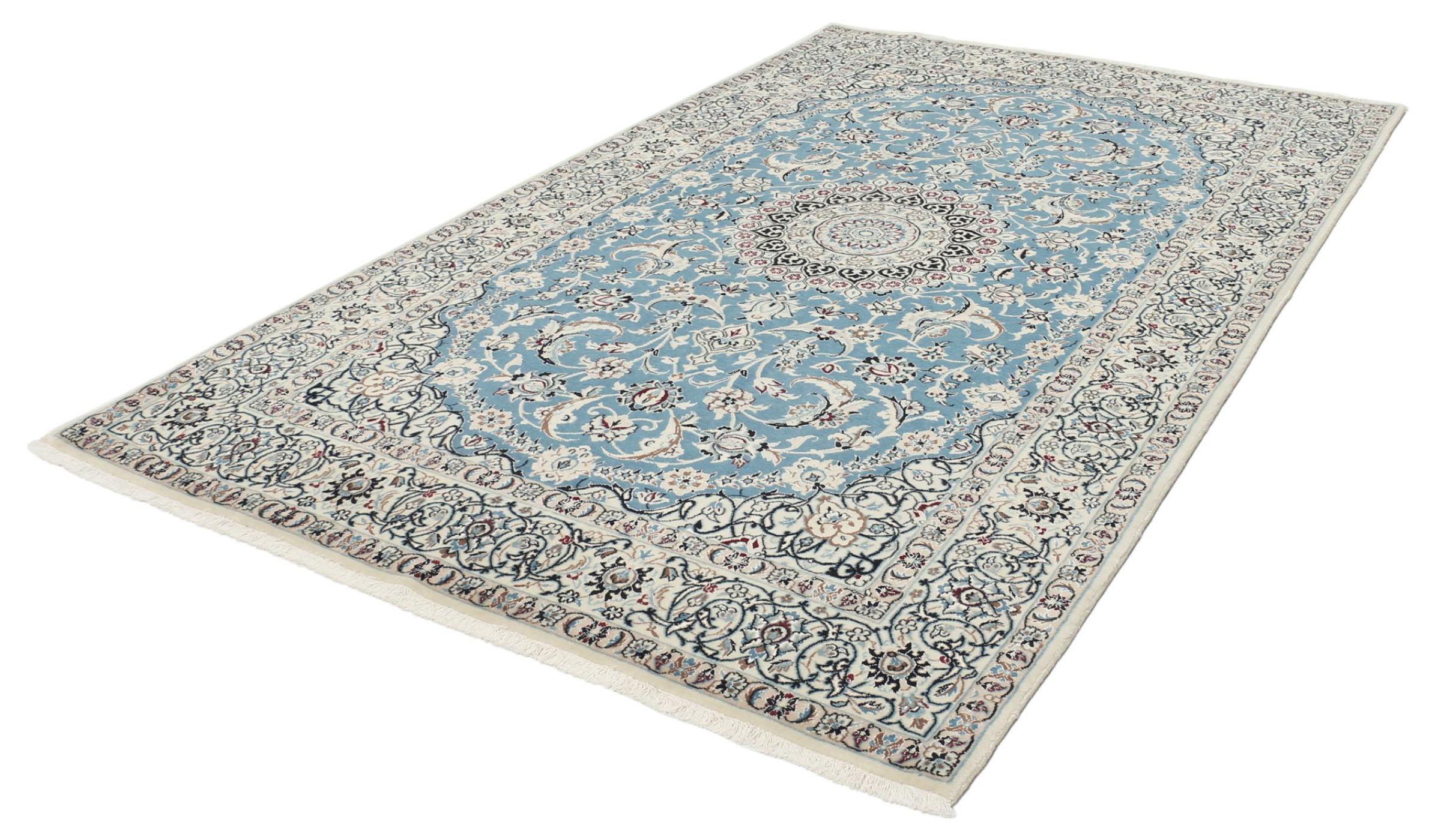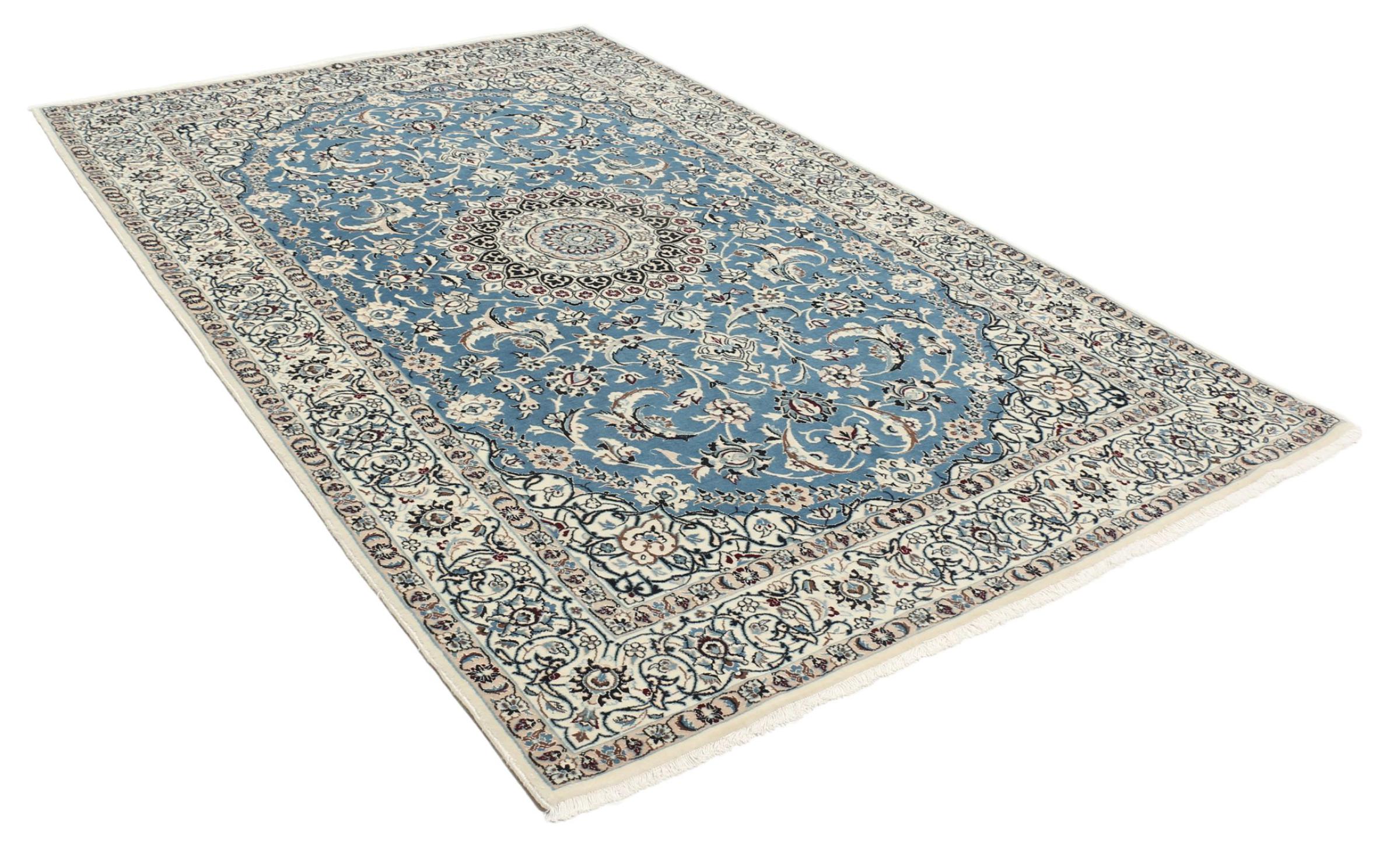 Rugs from the city of Nain, located near one of Iran's largest deserts, are among the most renowned Persian rugs in the world. Their typical design is unmistakable, featuring floral ornaments, a central medallion, and tones of beige, red, or blue. Thanks to their designations of 4La, 6La, 9La, and 12La, the fineness of a Nain rug can be easily identified at a glance. The rule is, the lower the "La" number, the higher the knot density and thus the finer the rug.