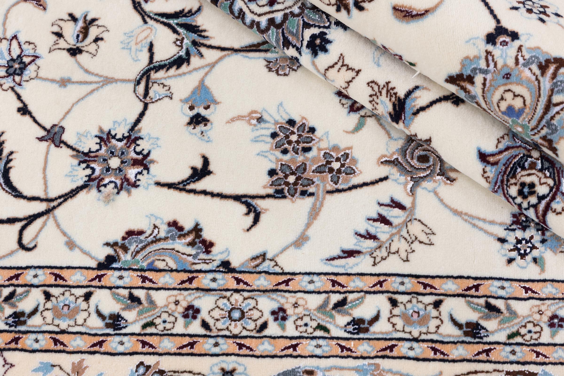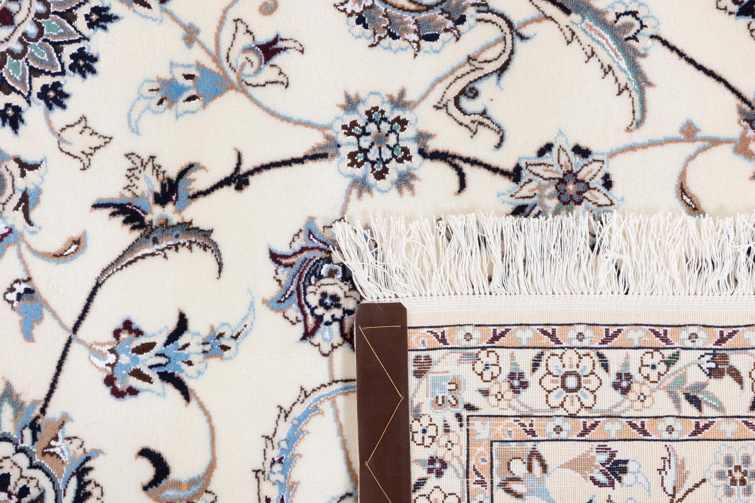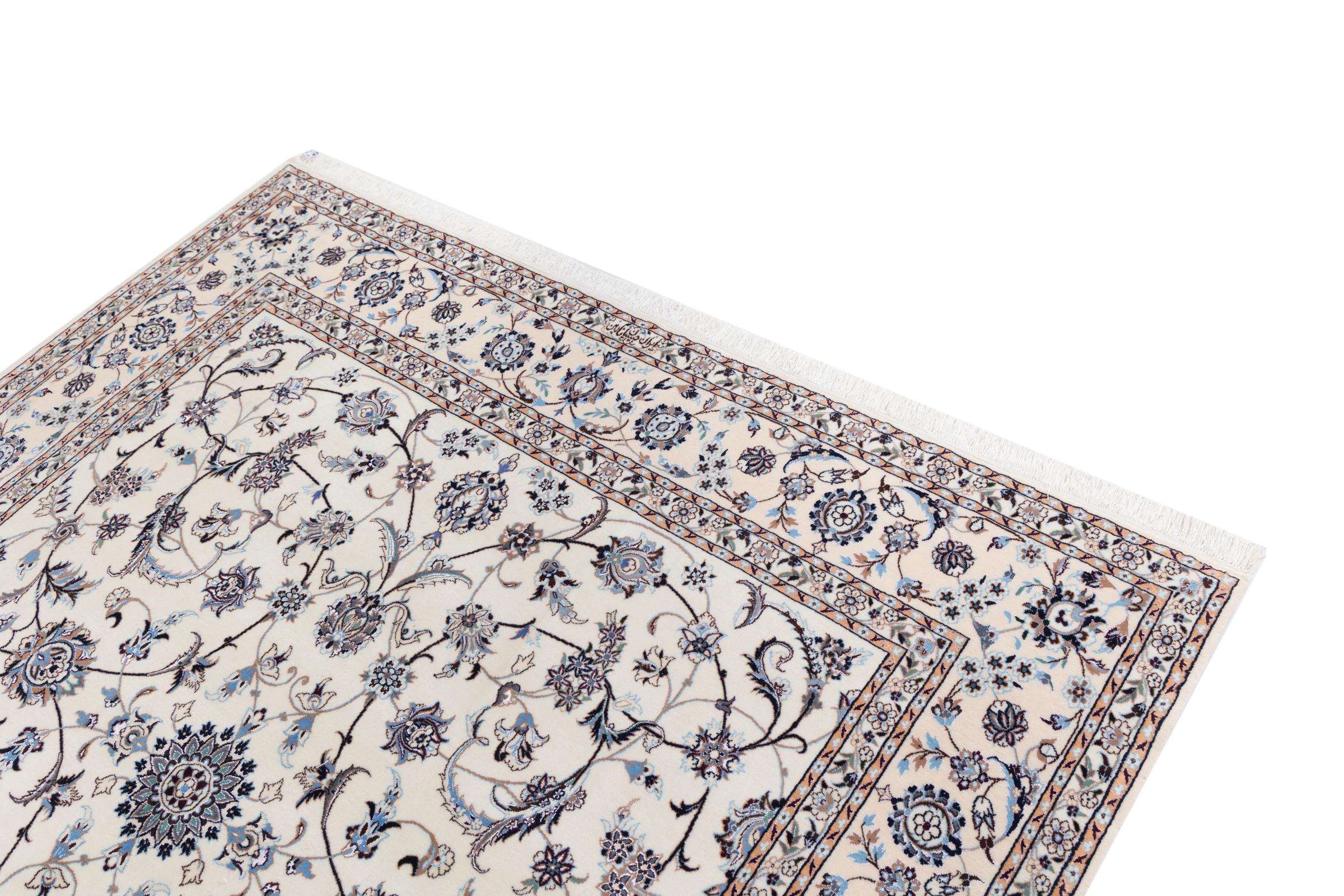 This Nain embodies the most sophisticated quality with elevated traditional handicraft. A rug of this level of quality belongs to the most elevated class of Persian rugs. It has been crafted by hand from finest cork wool and pure silk. The rug origins from the city Nain in Persia. Cork wool is exceptionally fine and soft due to originating solely from the neck of sheep. It has a high degree of fat making it likewise stronger to any stress. With a 6La or 4La Nain you pick a class of unadulterated tastefulness and most astounding quality.