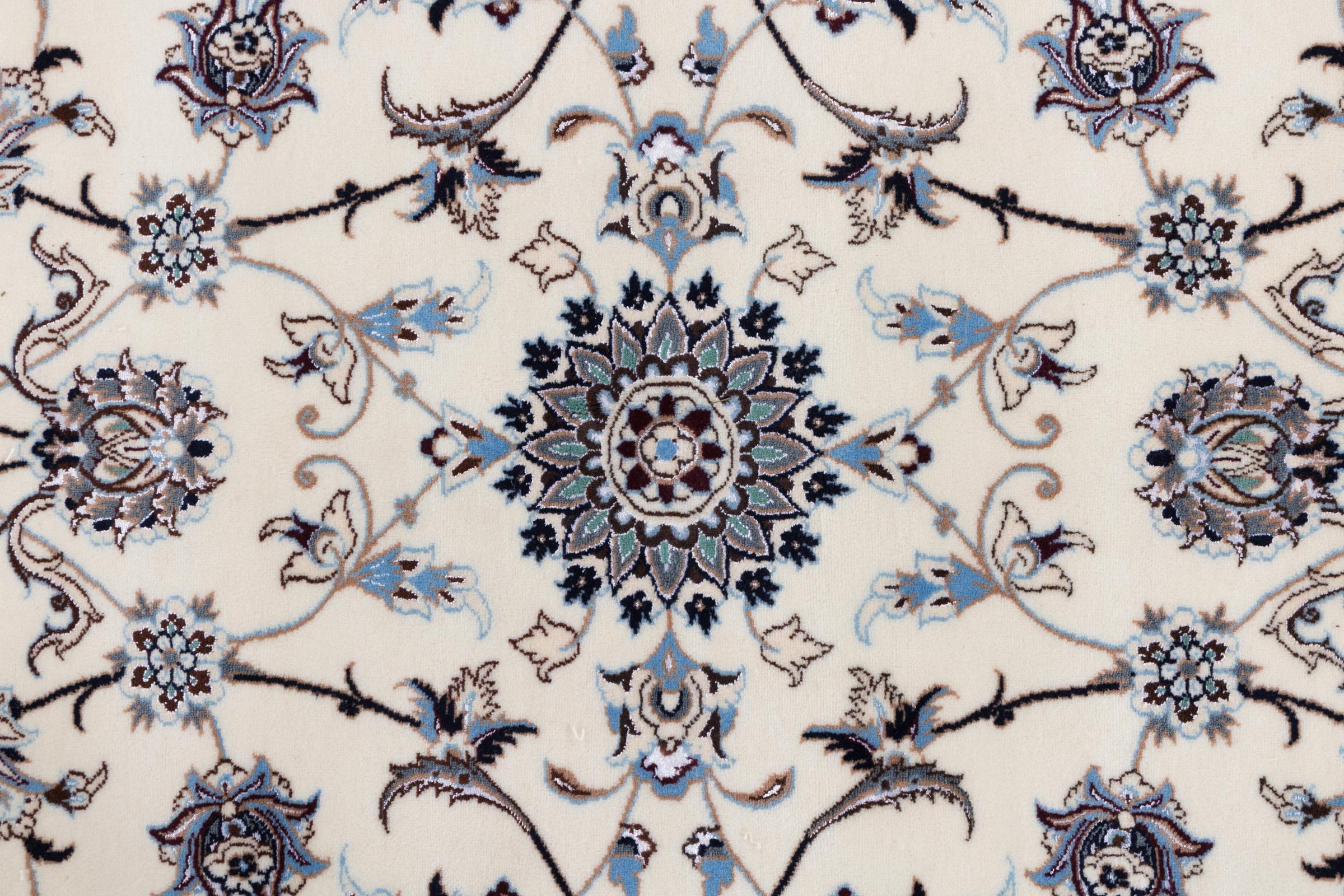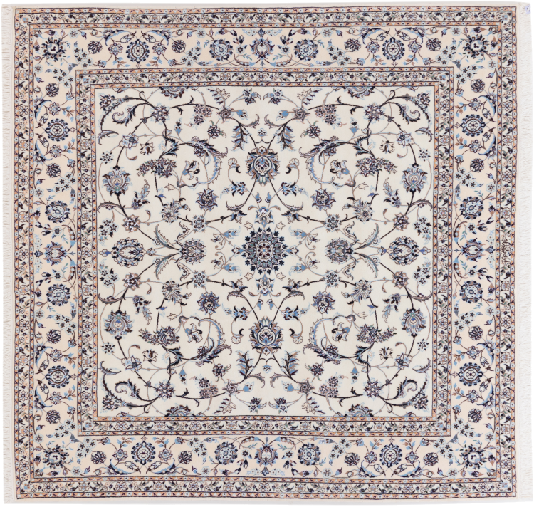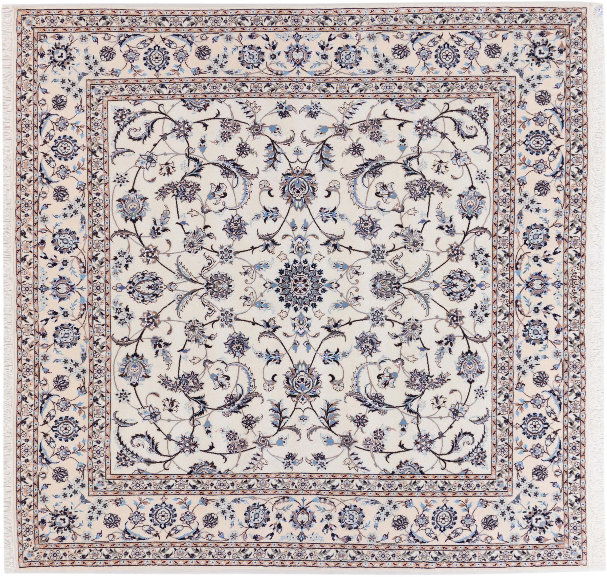 Rugs from the city of Nain, located near one of Iran's largest deserts, are among the most renowned Persian rugs in the world. Their typical design is unmistakable, featuring floral ornaments, a central medallion, and tones of beige, red, or blue. Thanks to their designations of 4La, 6La, 9La, and 12La, the fineness of a Nain rug can be easily identified at a glance. The rule is, the lower the "La" number, the higher the knot density and thus the finer the rug.