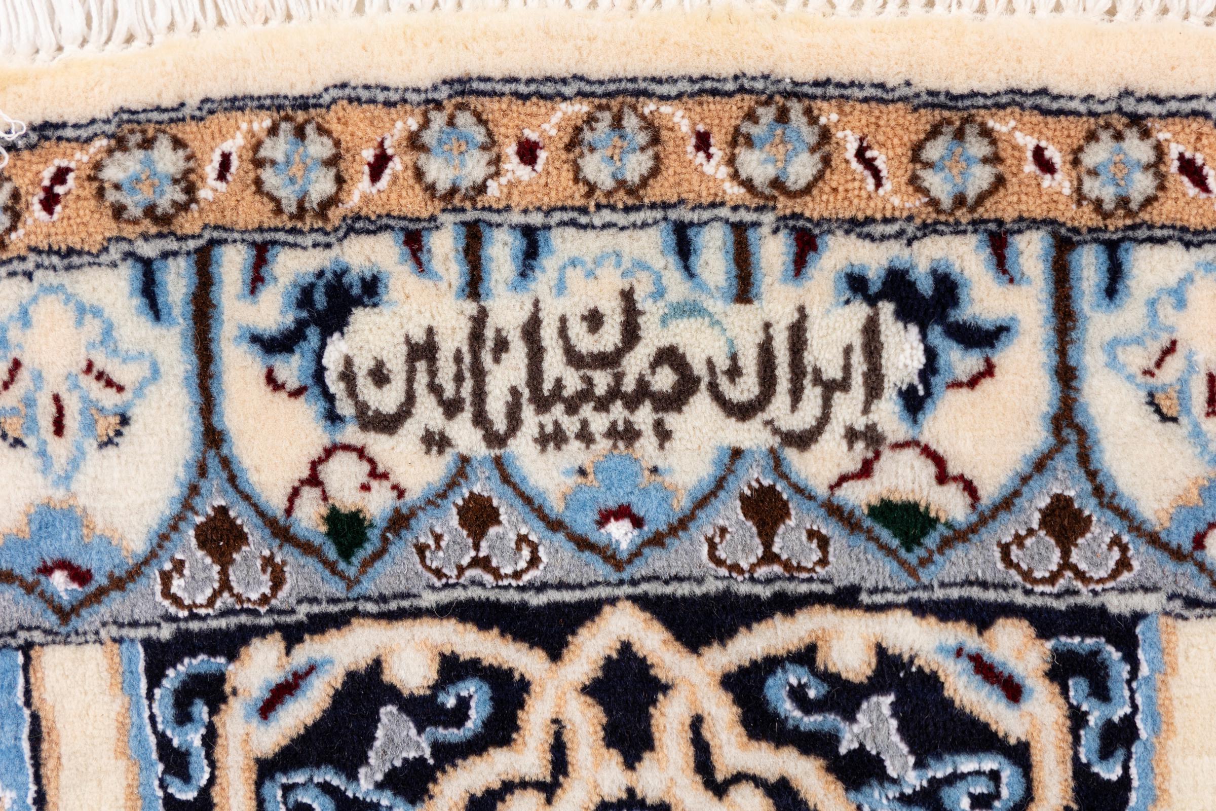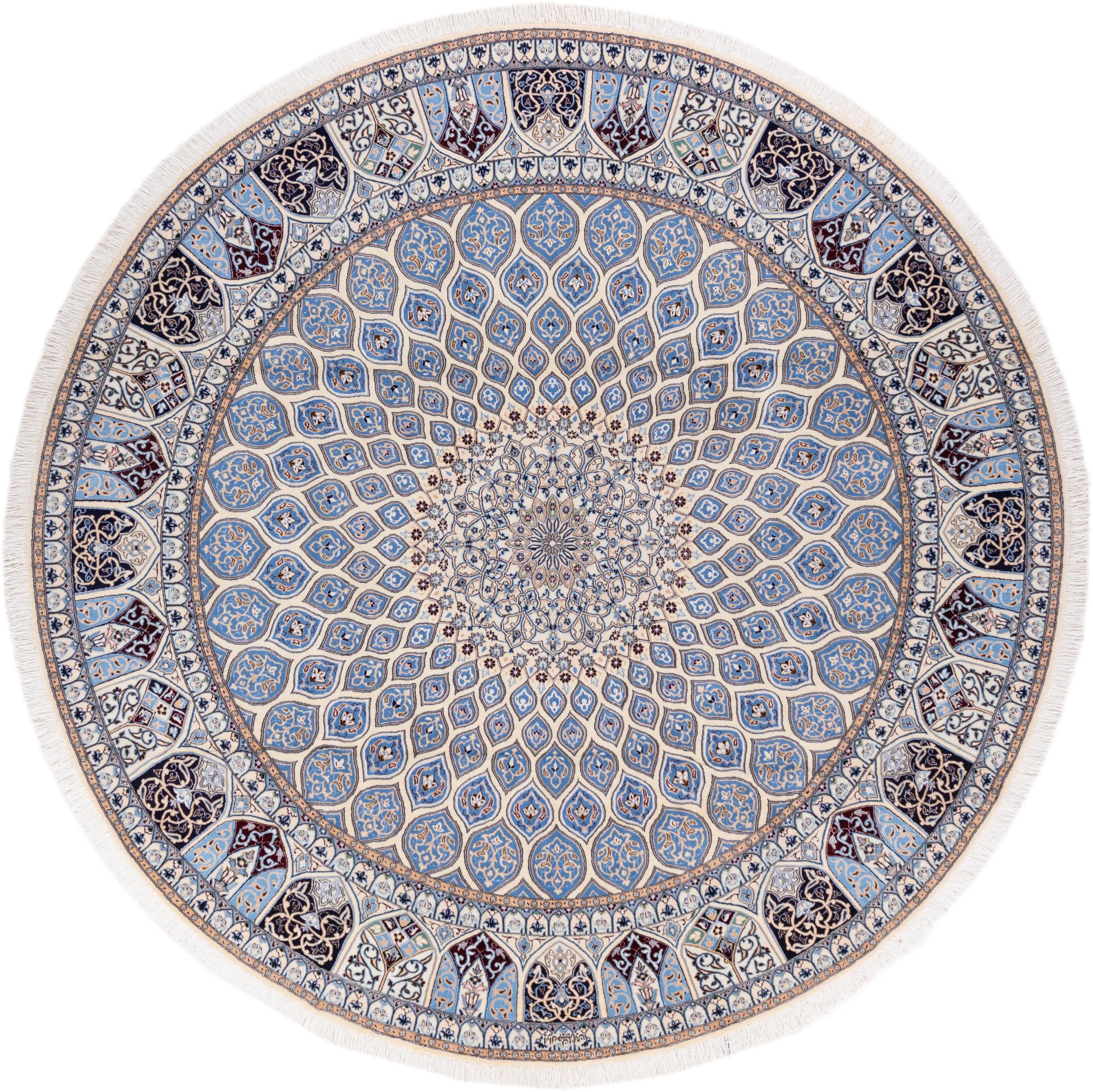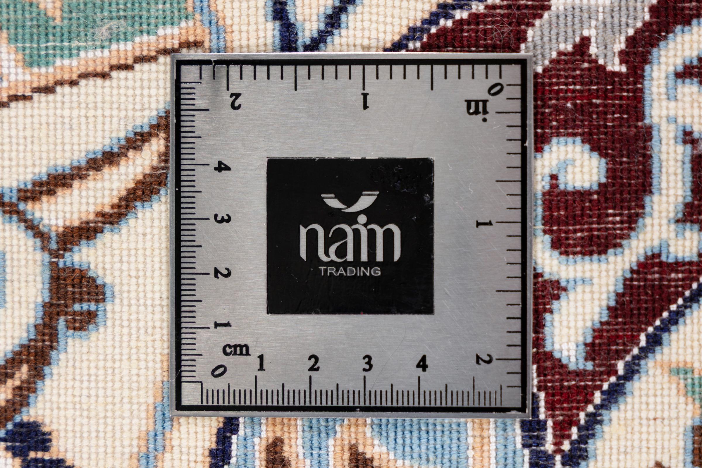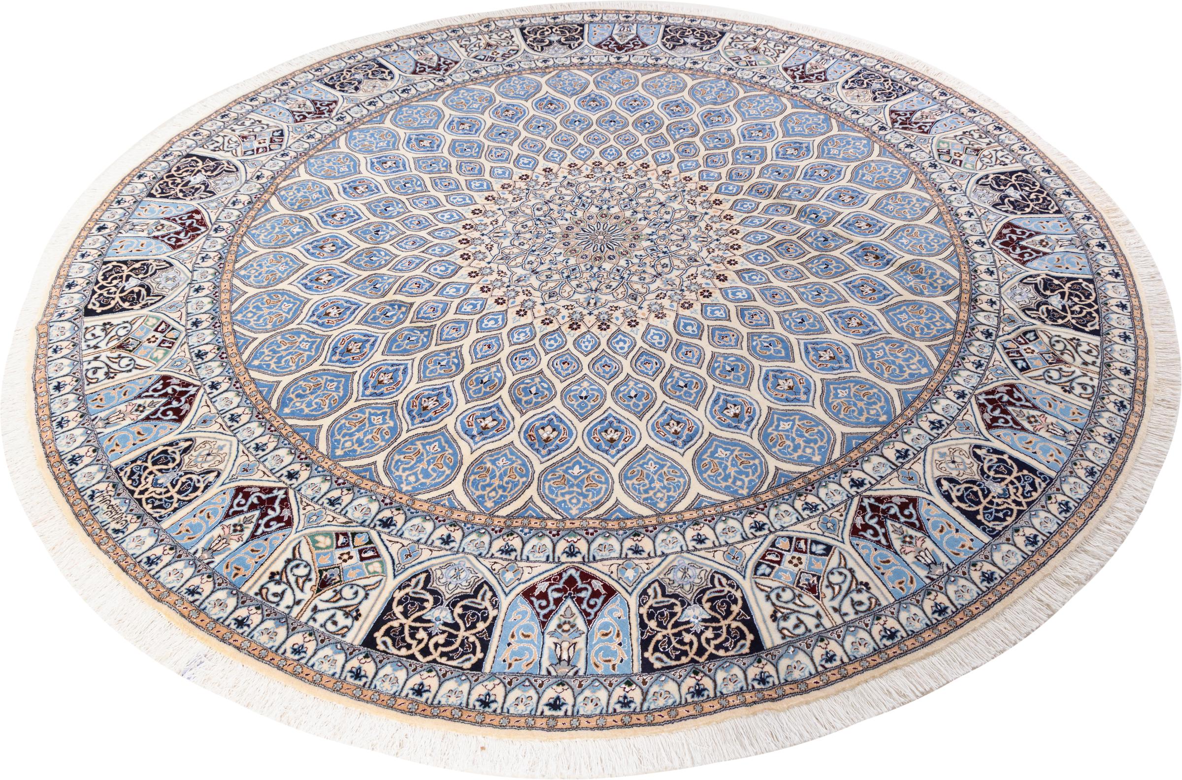 Rugs from the city of Nain, located near one of Iran's largest deserts, are among the most renowned Persian rugs in the world. Their typical design is unmistakable, featuring floral ornaments, a central medallion, and tones of beige, red, or blue. Thanks to their designations of 4La, 6La, 9La, and 12La, the fineness of a Nain rug can be easily identified at a glance. The rule is, the lower the "La" number, the higher the knot density and thus the finer the rug.