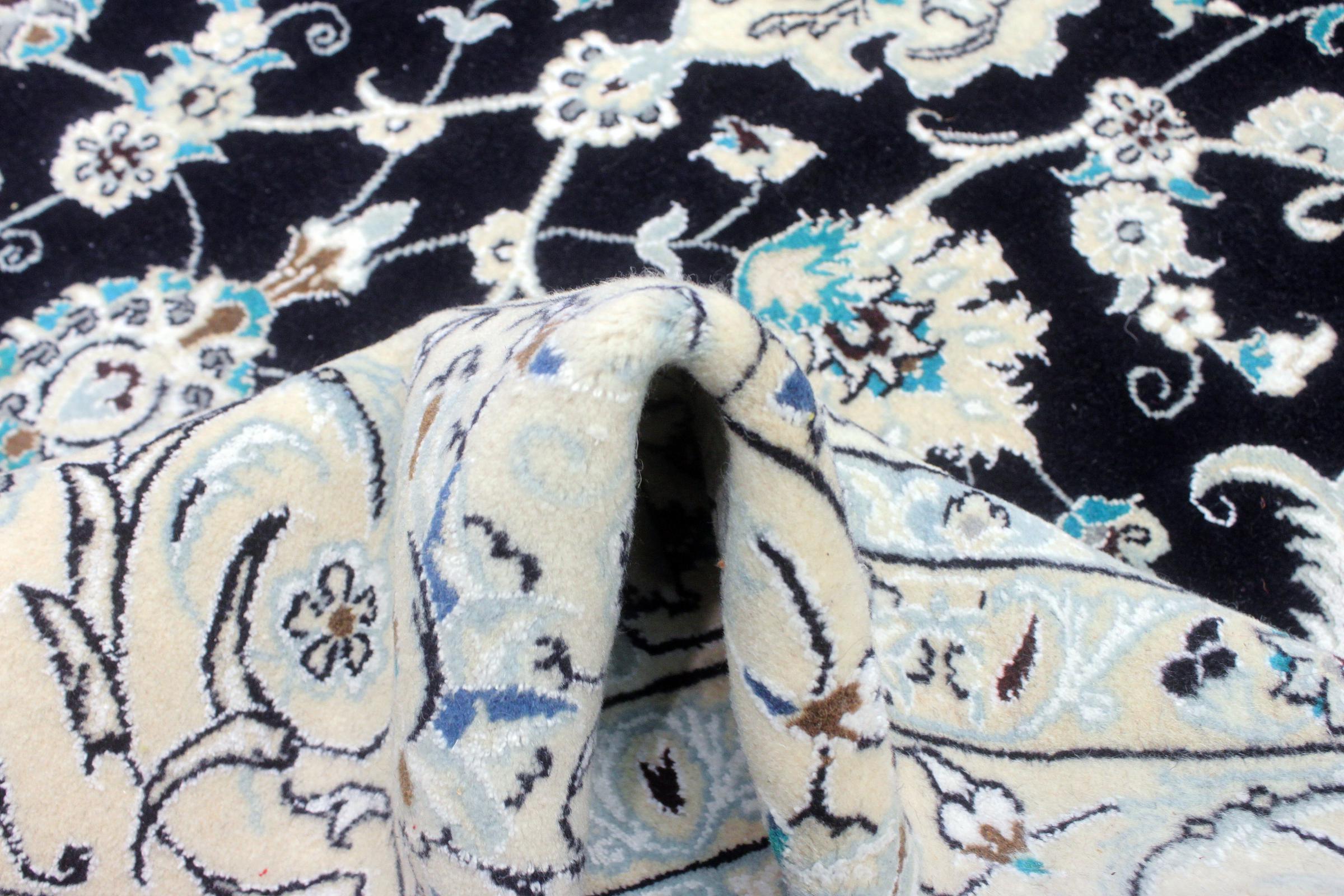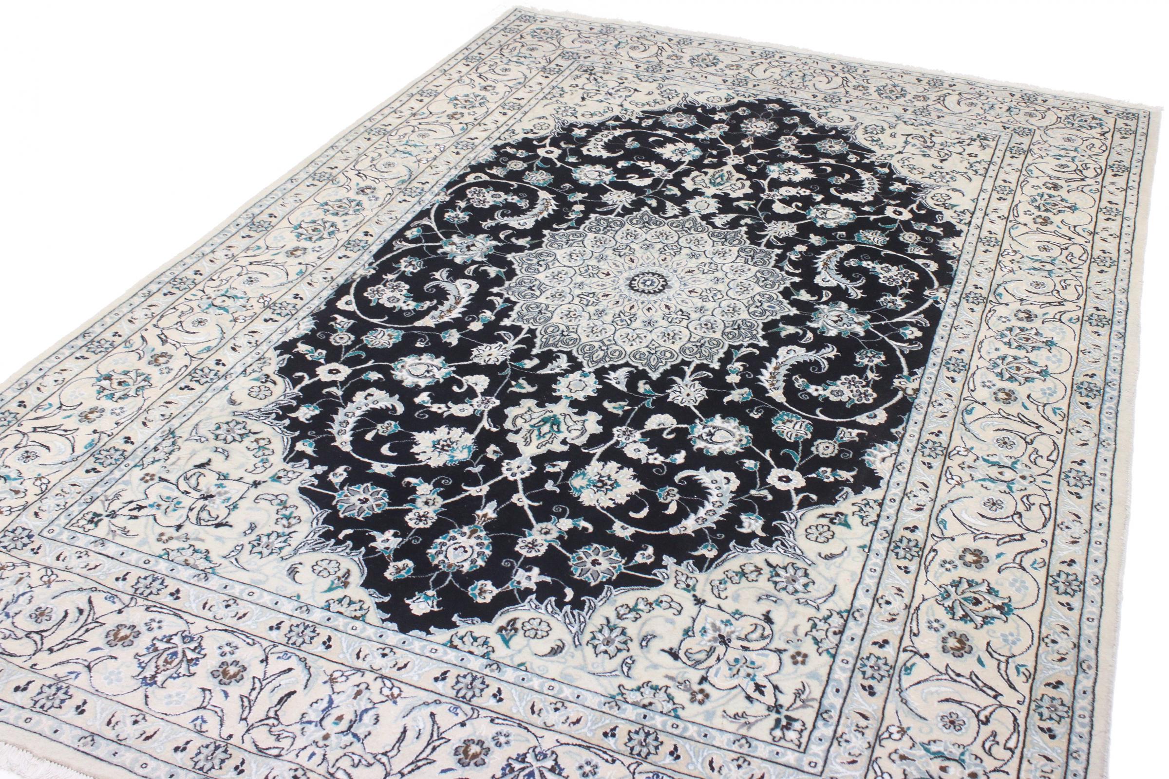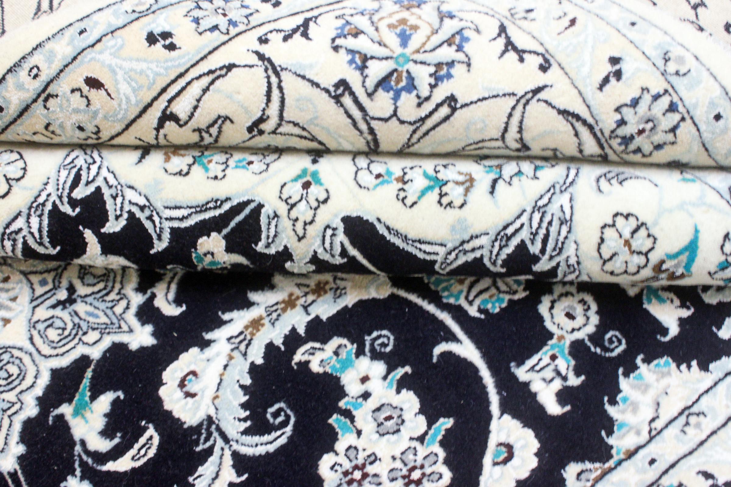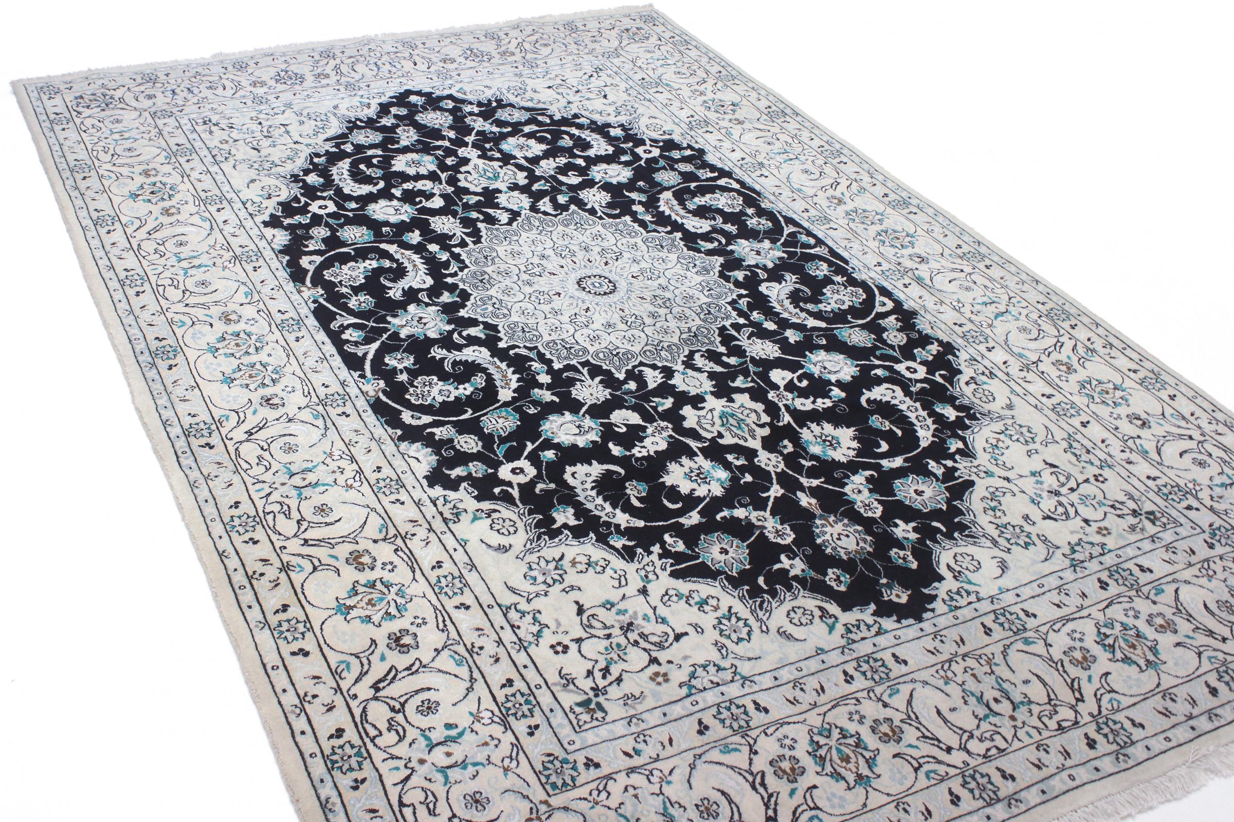 This Nain rug is categorized as 9La. It has a remarkable quality and a typical Persian curvilinear design for a great highlight for your home. This Persian rug has been knotted by hand from high grade sheep wool and natural silk in our own ateliers in Nain. This popular city is located in the western part of the desert Dasht-e-Kavir.