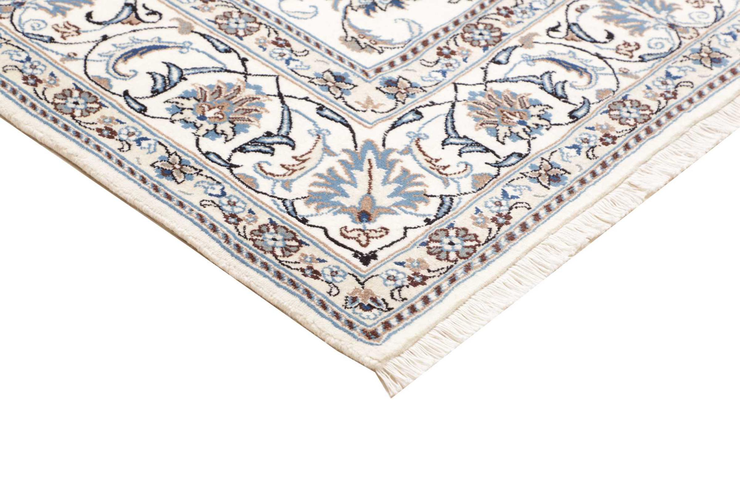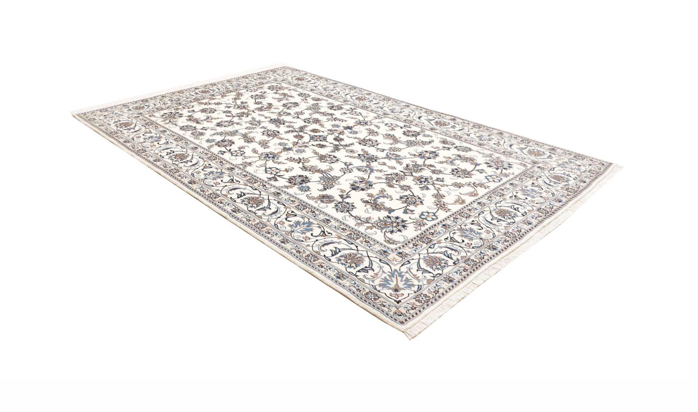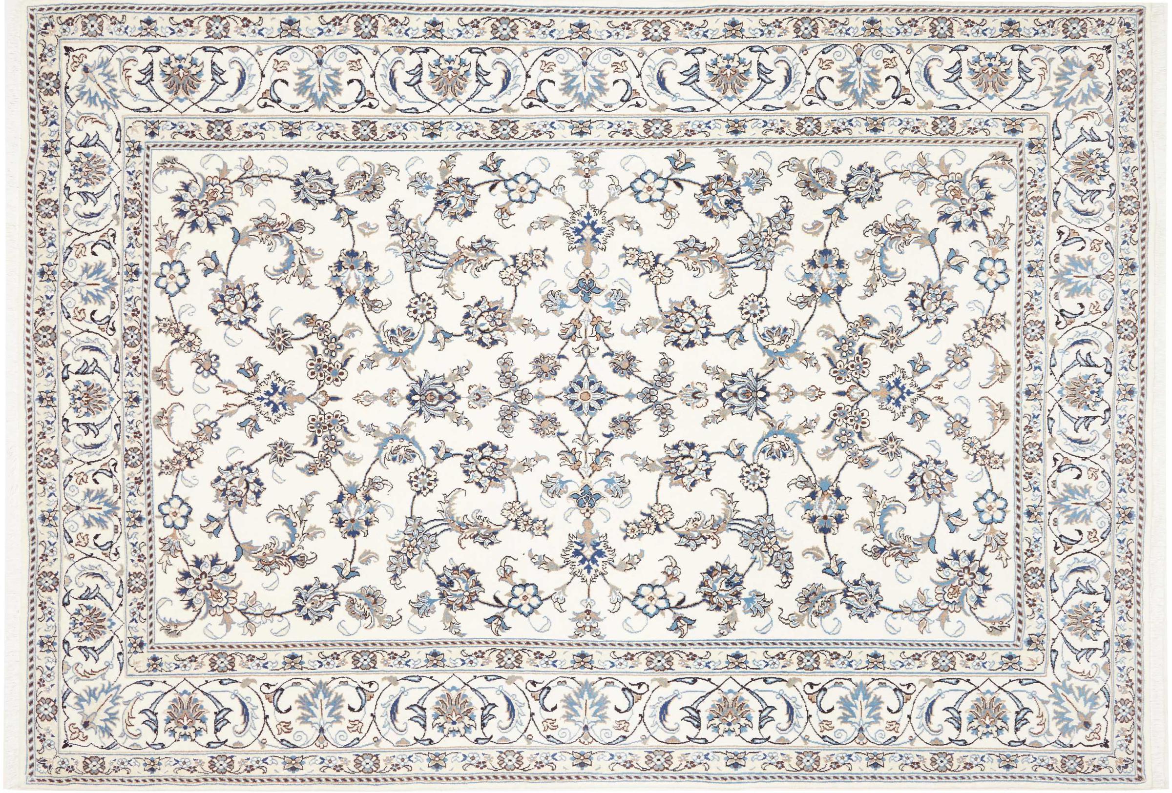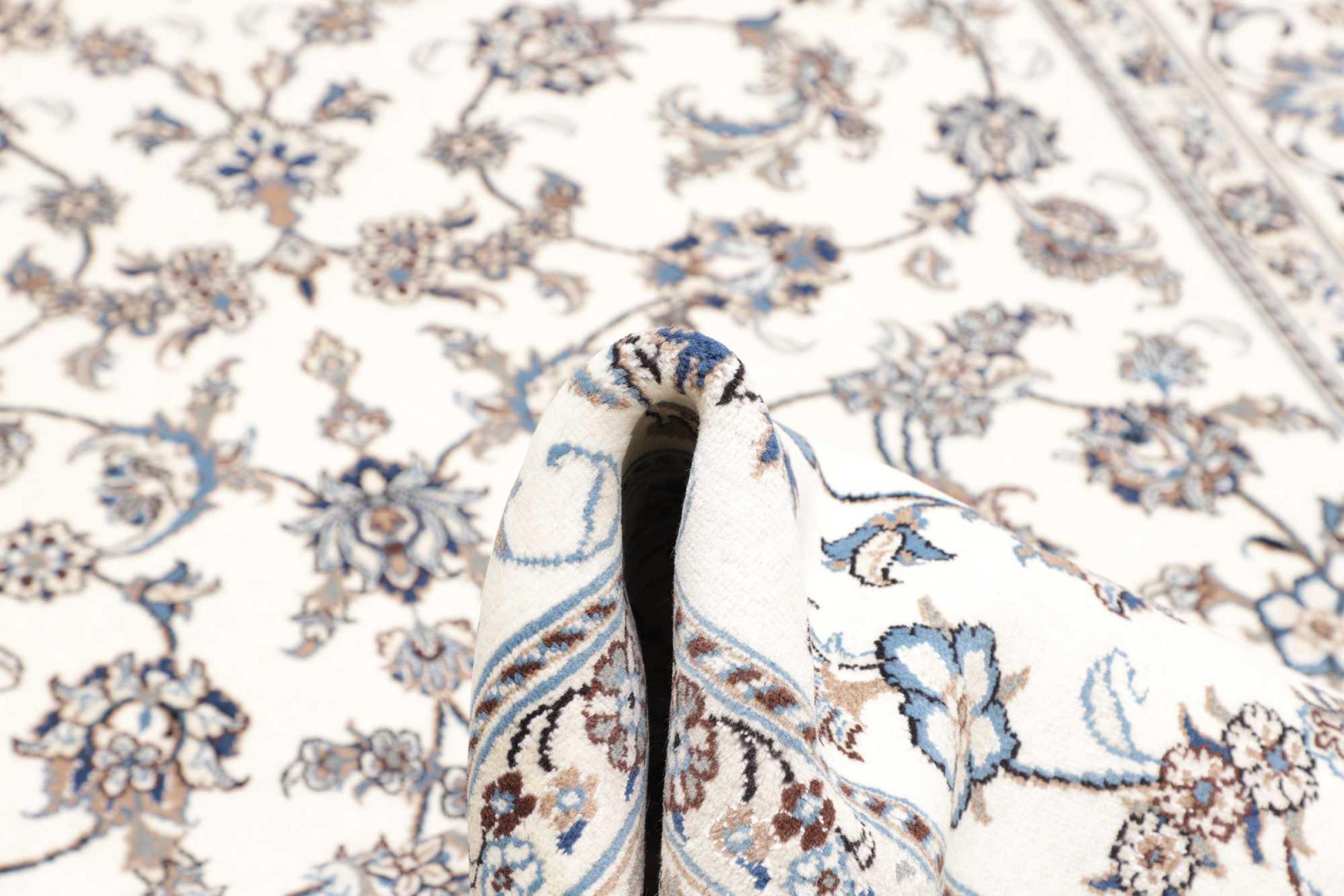 Rugs from the city of Nain, located near one of Iran's largest deserts, are among the most renowned Persian rugs in the world. Their typical design is unmistakable, featuring floral ornaments, a central medallion, and tones of beige, red, or blue. Thanks to their designations of 4La, 6La, 9La, and 12La, the fineness of a Nain rug can be easily identified at a glance. The rule is, the lower the "La" number, the higher the knot density and thus the finer the rug.