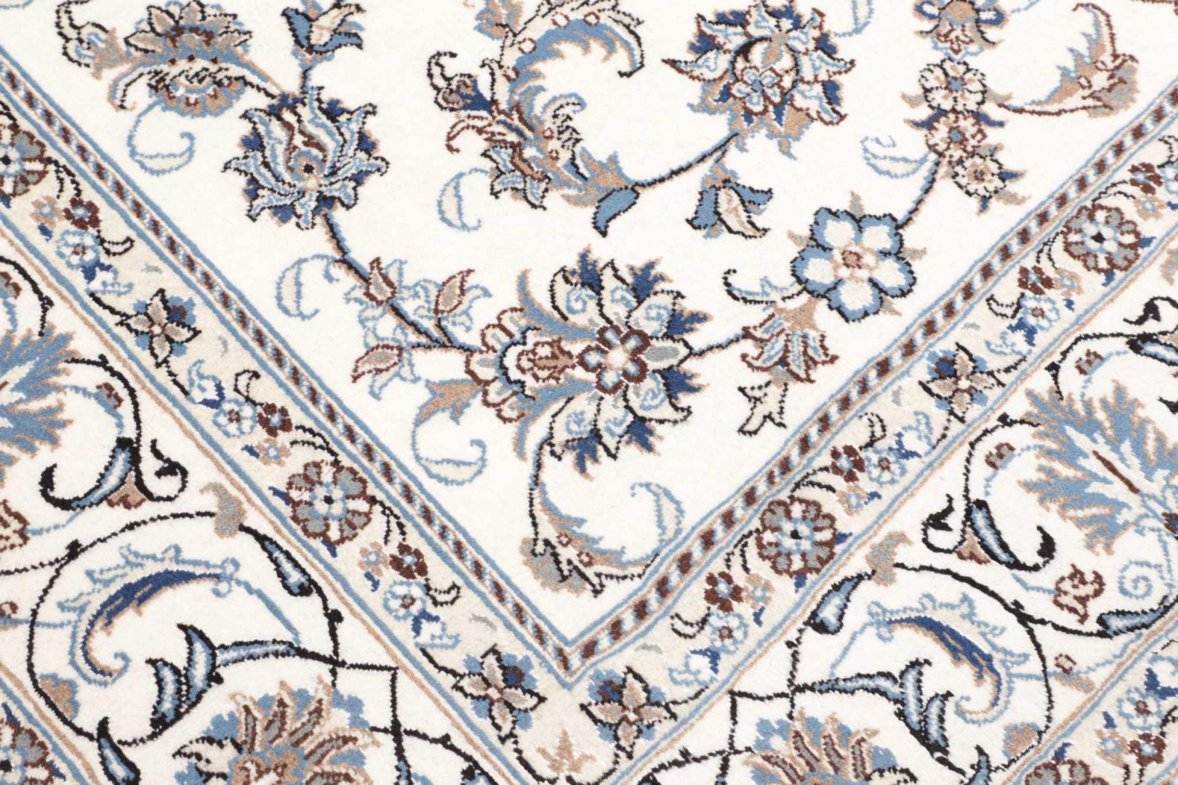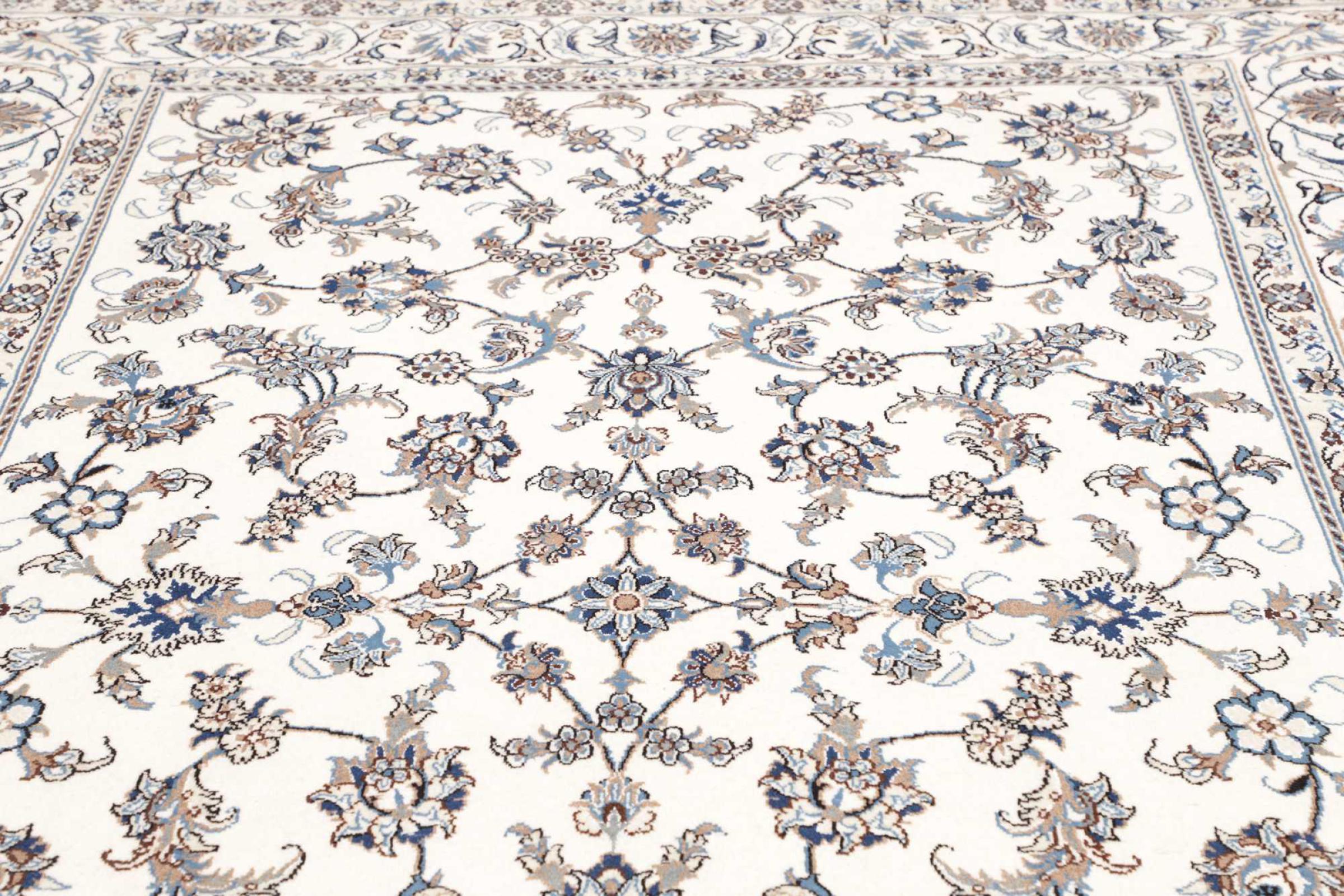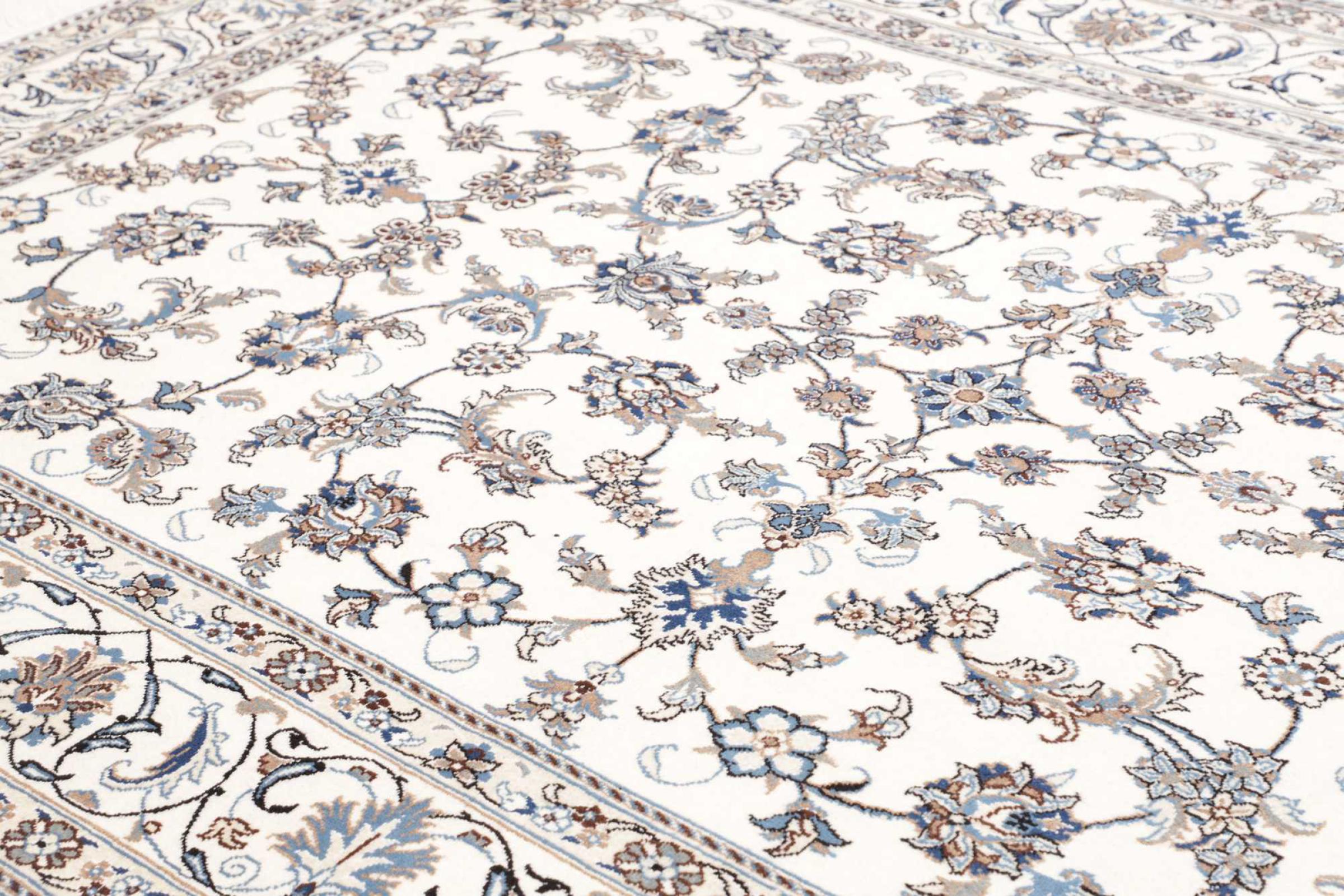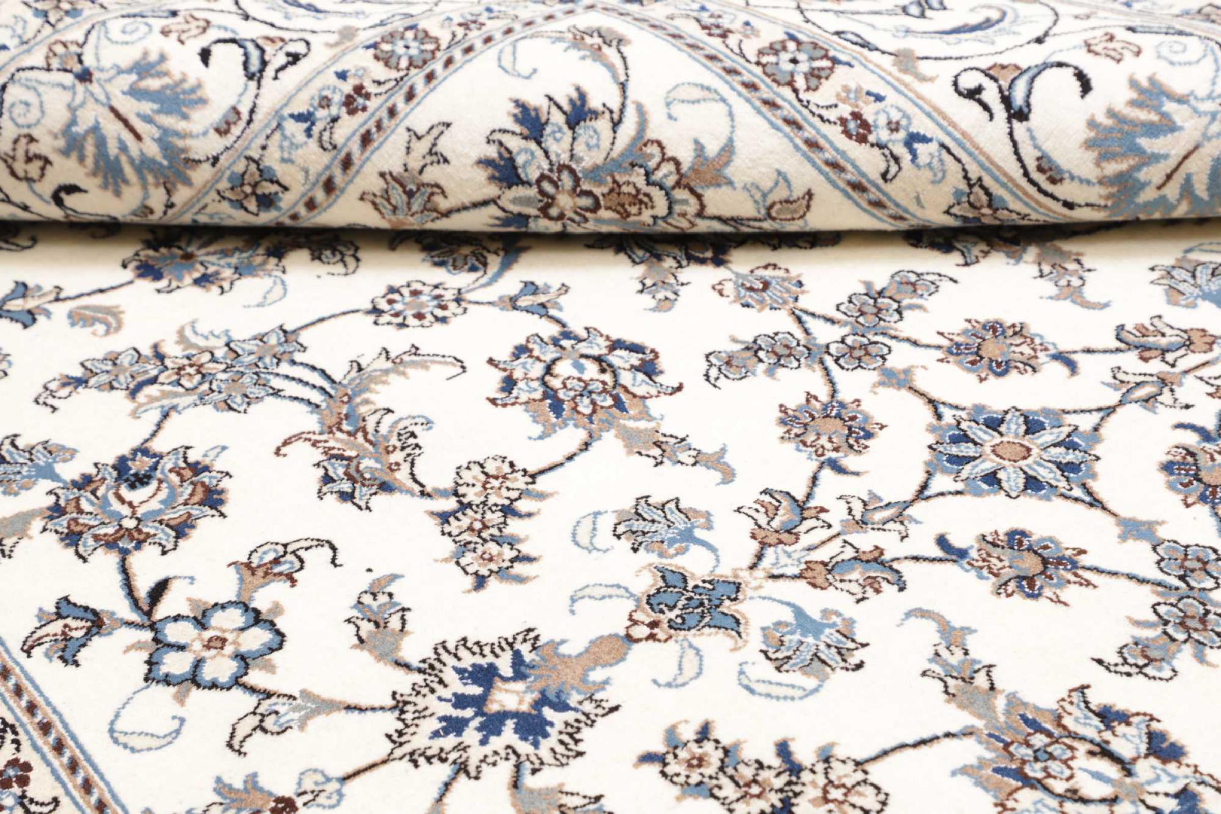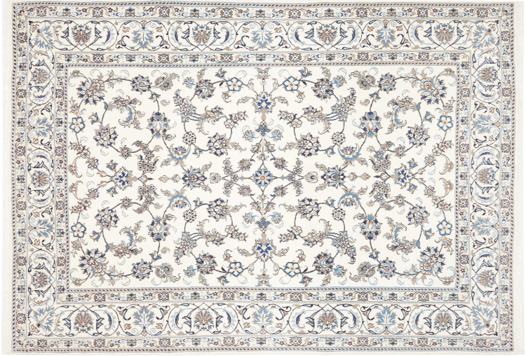 Rugs from the city of Nain, located near one of Iran's largest deserts, are among the most renowned Persian rugs in the world. Their typical design is unmistakable, featuring floral ornaments, a central medallion, and tones of beige, red, or blue. Thanks to their designations of 4La, 6La, 9La, and 12La, the fineness of a Nain rug can be easily identified at a glance. The rule is, the lower the "La" number, the higher the knot density and thus the finer the rug.