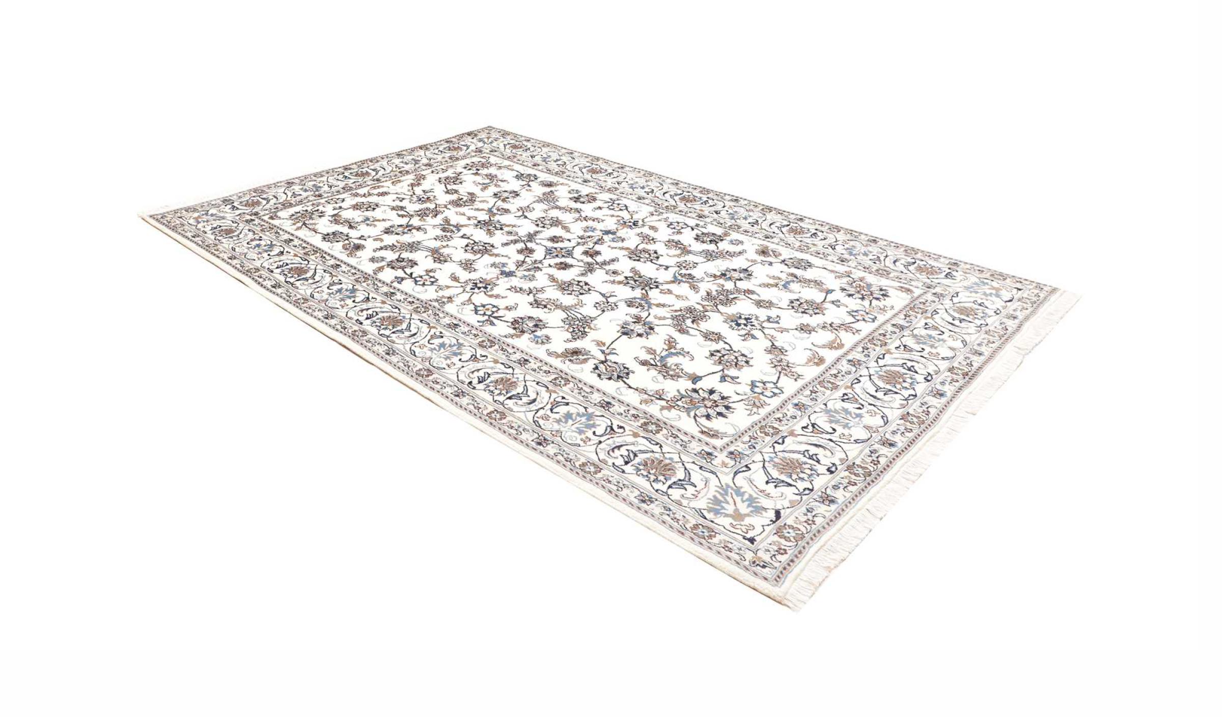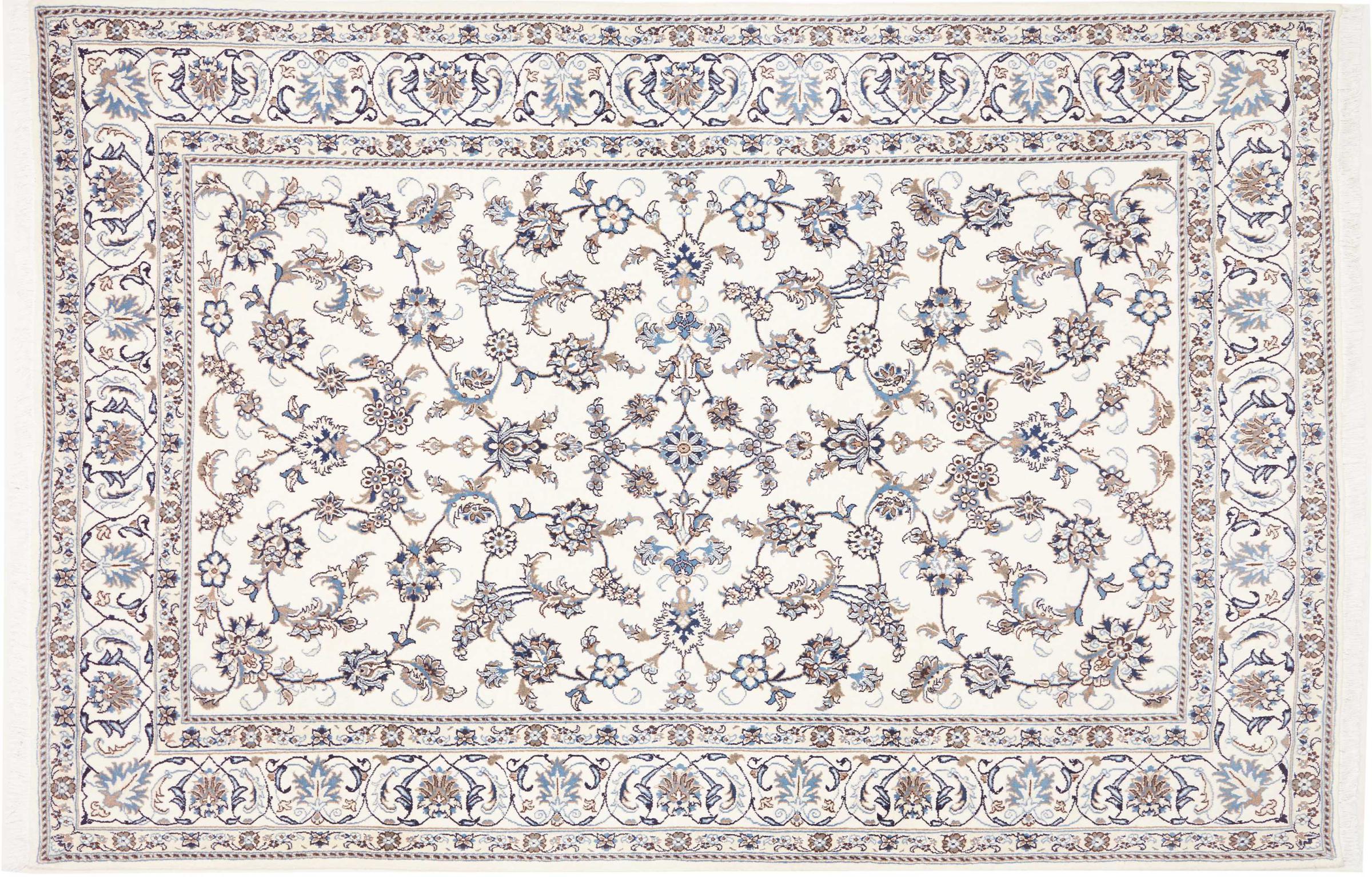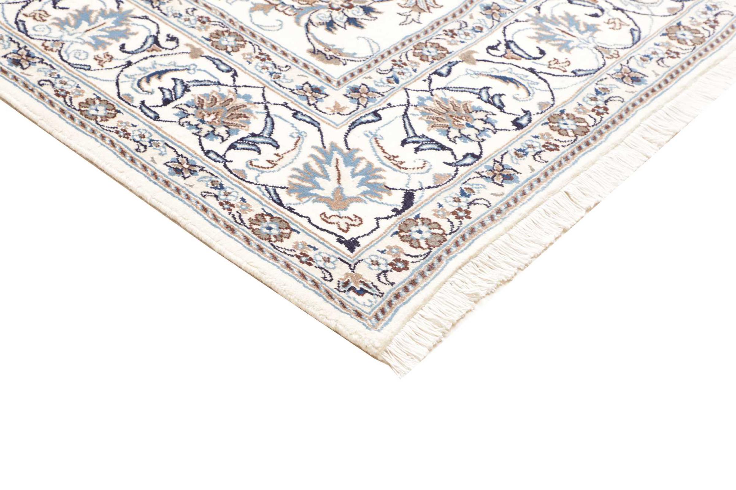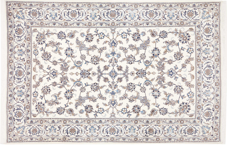 Rugs from the city of Nain, located near one of Iran's largest deserts, are among the most renowned Persian rugs in the world. Their typical design is unmistakable, featuring floral ornaments, a central medallion, and tones of beige, red, or blue. Thanks to their designations of 4La, 6La, 9La, and 12La, the fineness of a Nain rug can be easily identified at a glance. The rule is, the lower the "La" number, the higher the knot density and thus the finer the rug.