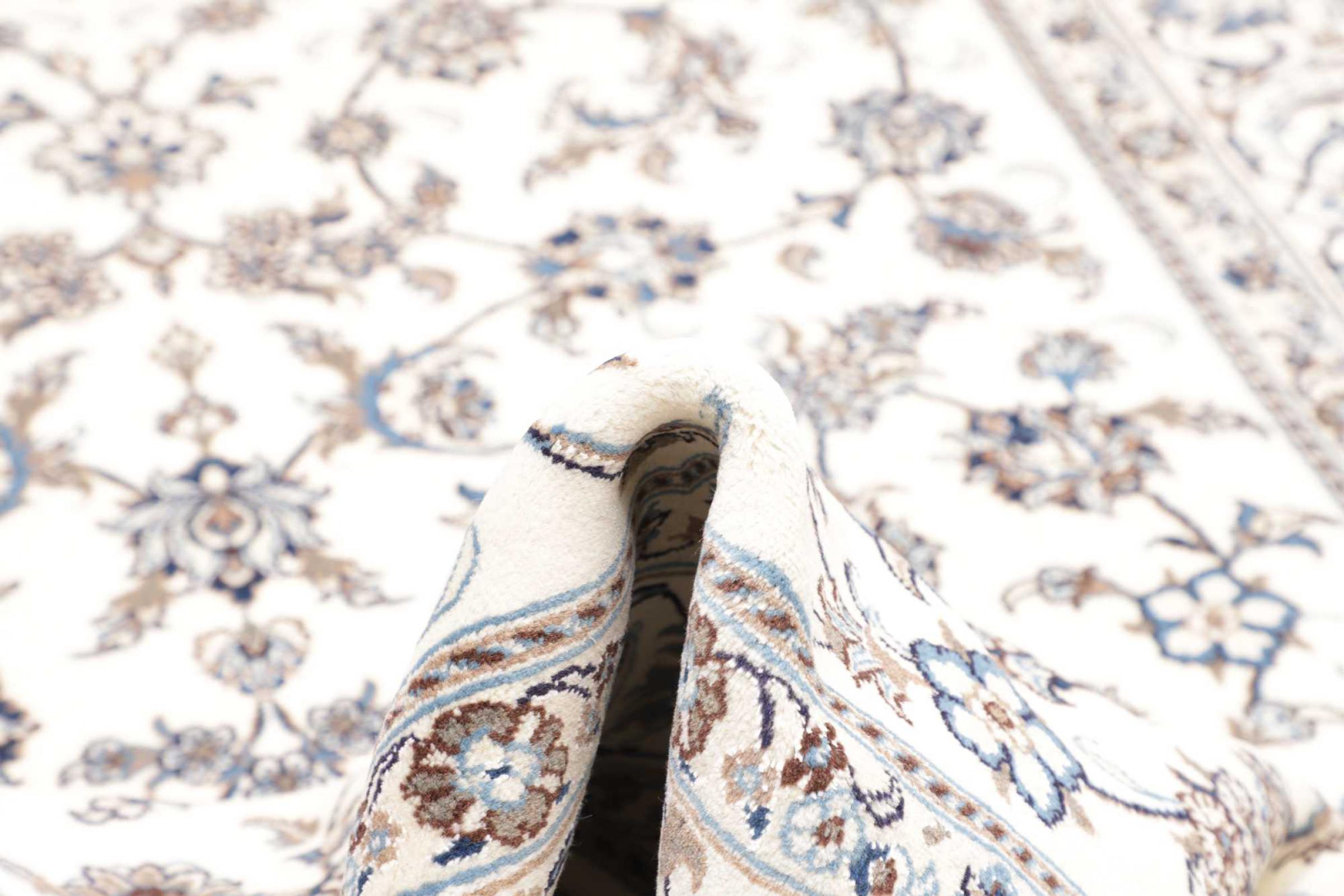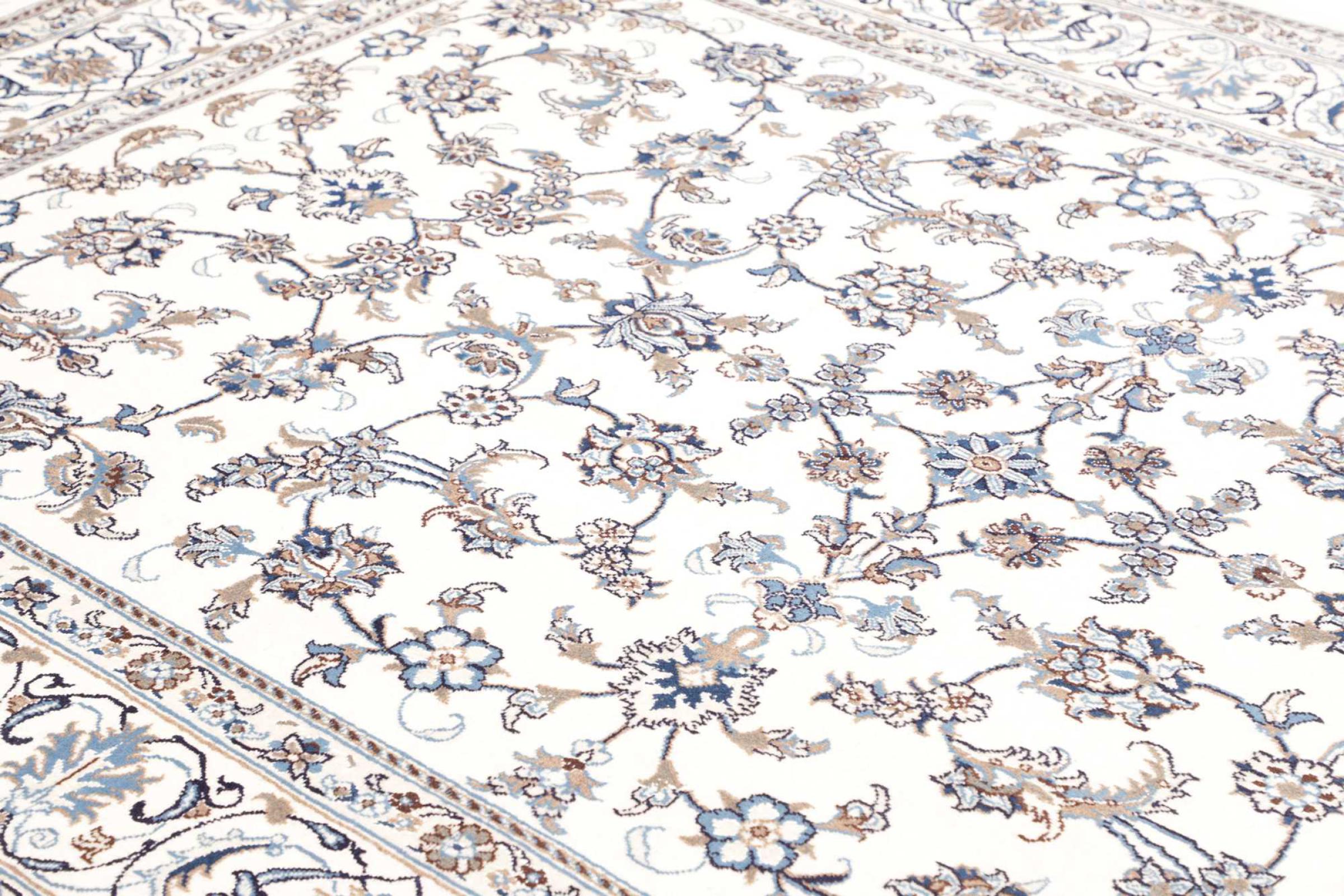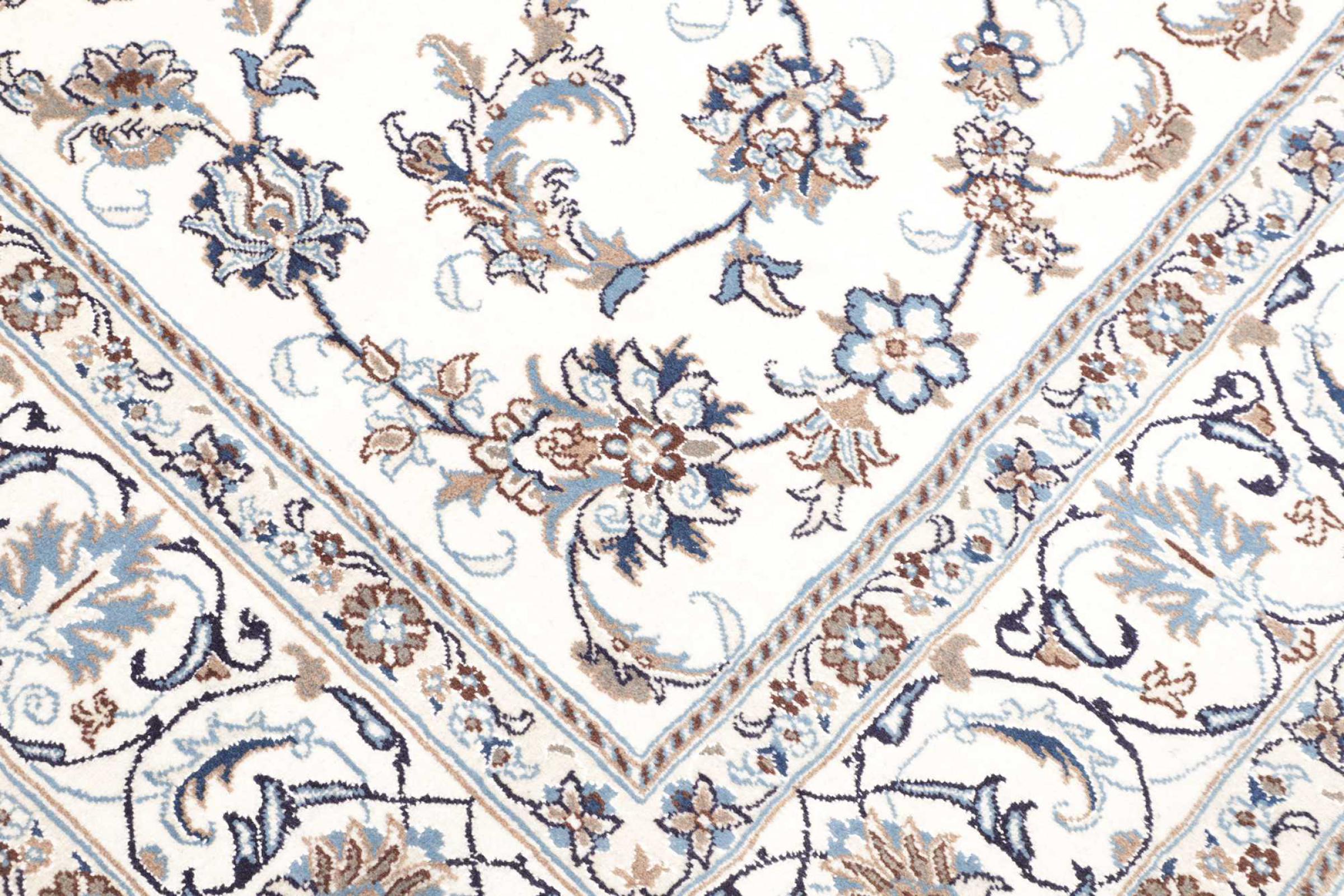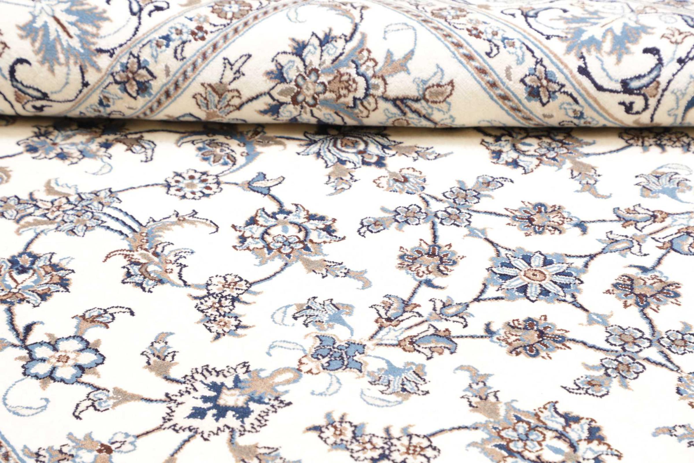 Rugs from the city of Nain, located near one of Iran's largest deserts, are among the most renowned Persian rugs in the world. Their typical design is unmistakable, featuring floral ornaments, a central medallion, and tones of beige, red, or blue. Thanks to their designations of 4La, 6La, 9La, and 12La, the fineness of a Nain rug can be easily identified at a glance. The rule is, the lower the "La" number, the higher the knot density and thus the finer the rug.