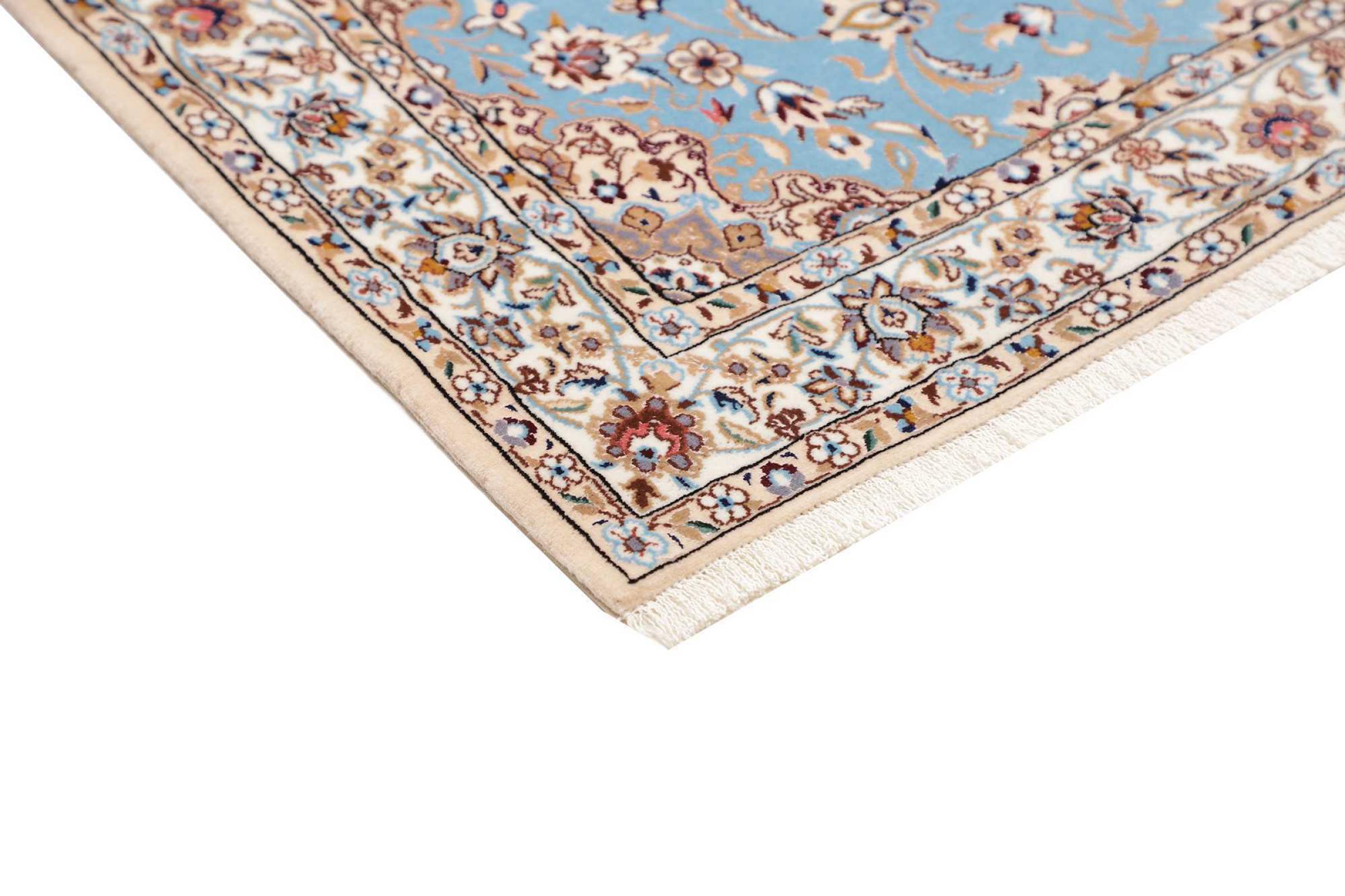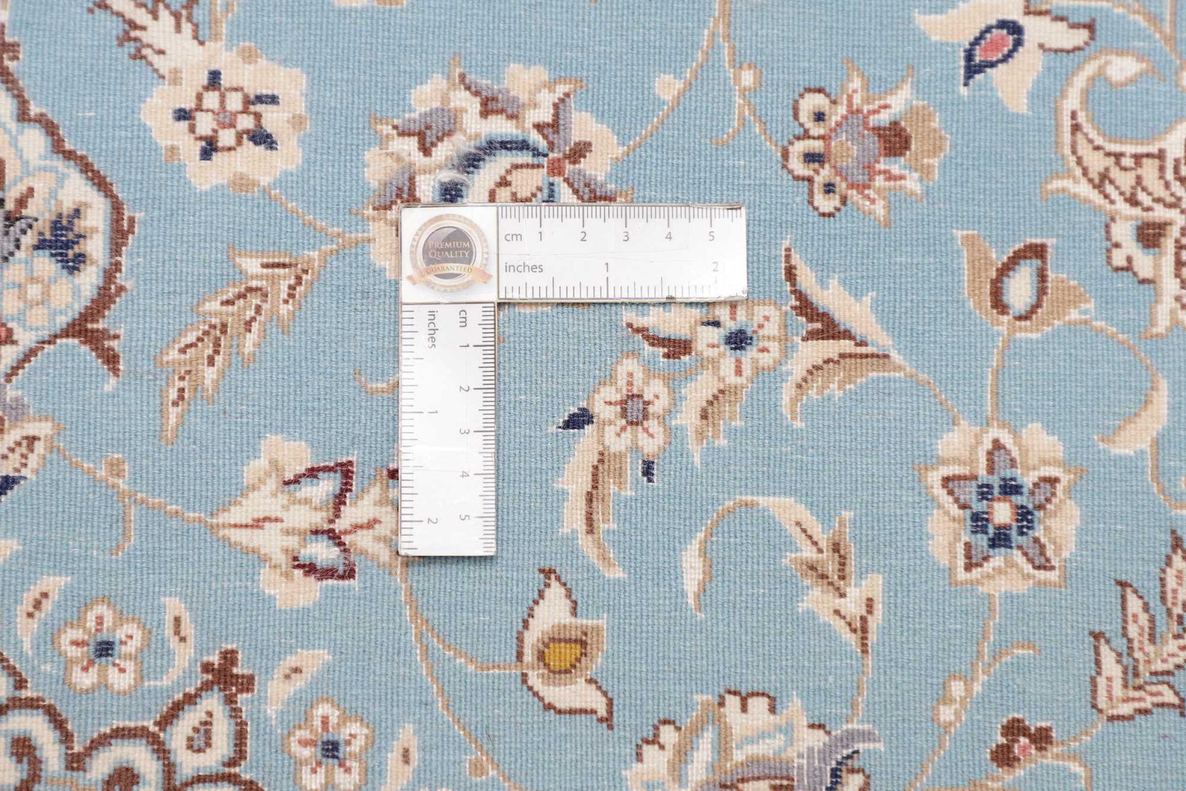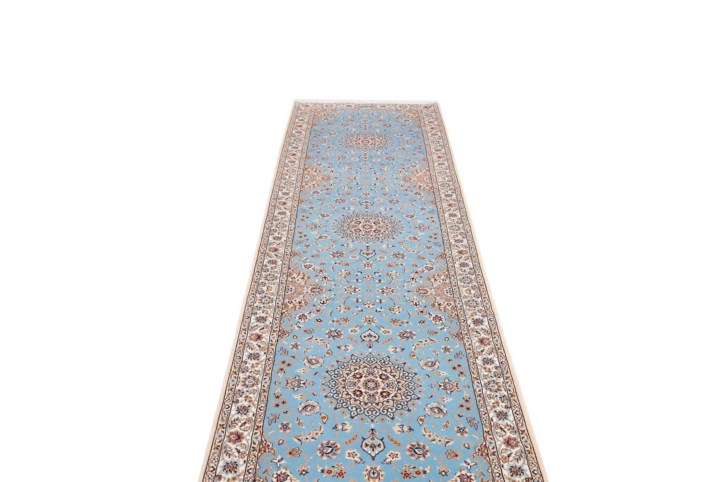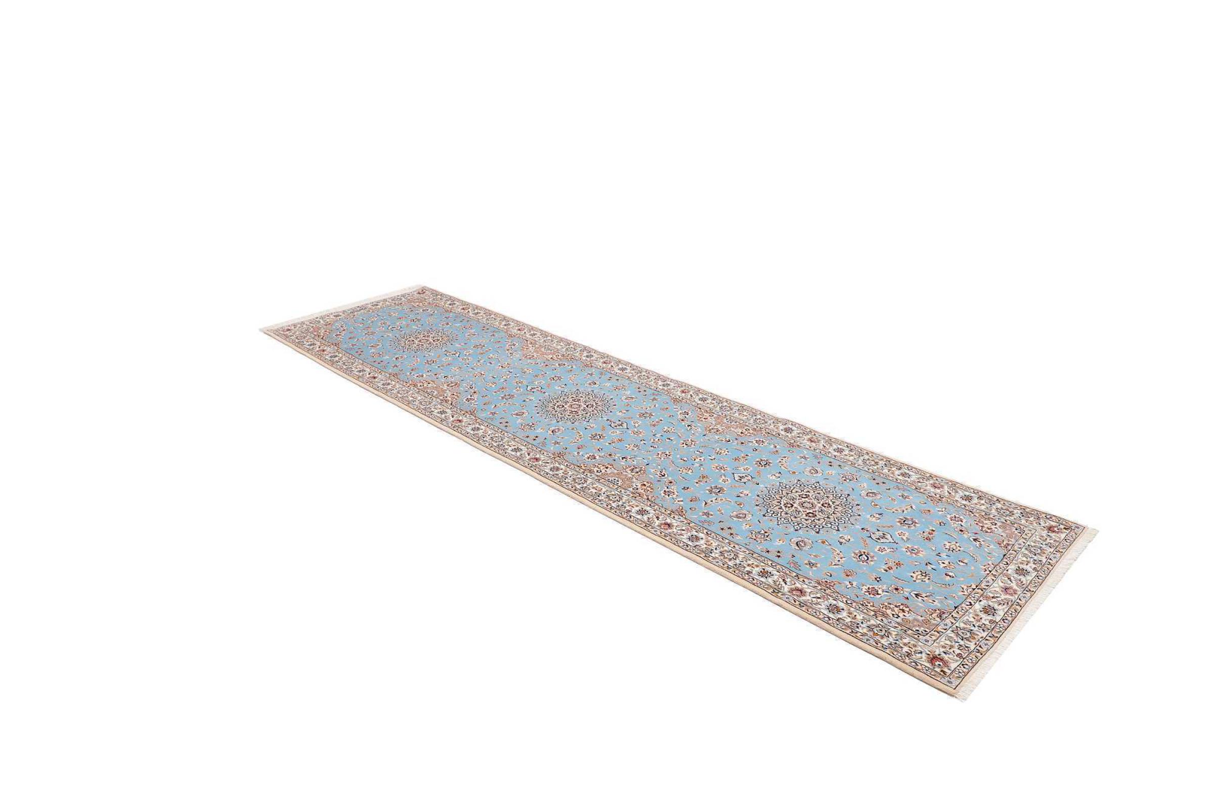 Rugs from the city of Nain, located near one of Iran's largest deserts, are among the most renowned Persian rugs in the world. Their typical design is unmistakable, featuring floral ornaments, a central medallion, and tones of beige, red, or blue. Thanks to their designations of 4La, 6La, 9La, and 12La, the fineness of a Nain rug can be easily identified at a glance. The rule is, the lower the "La" number, the higher the knot density and thus the finer the rug.