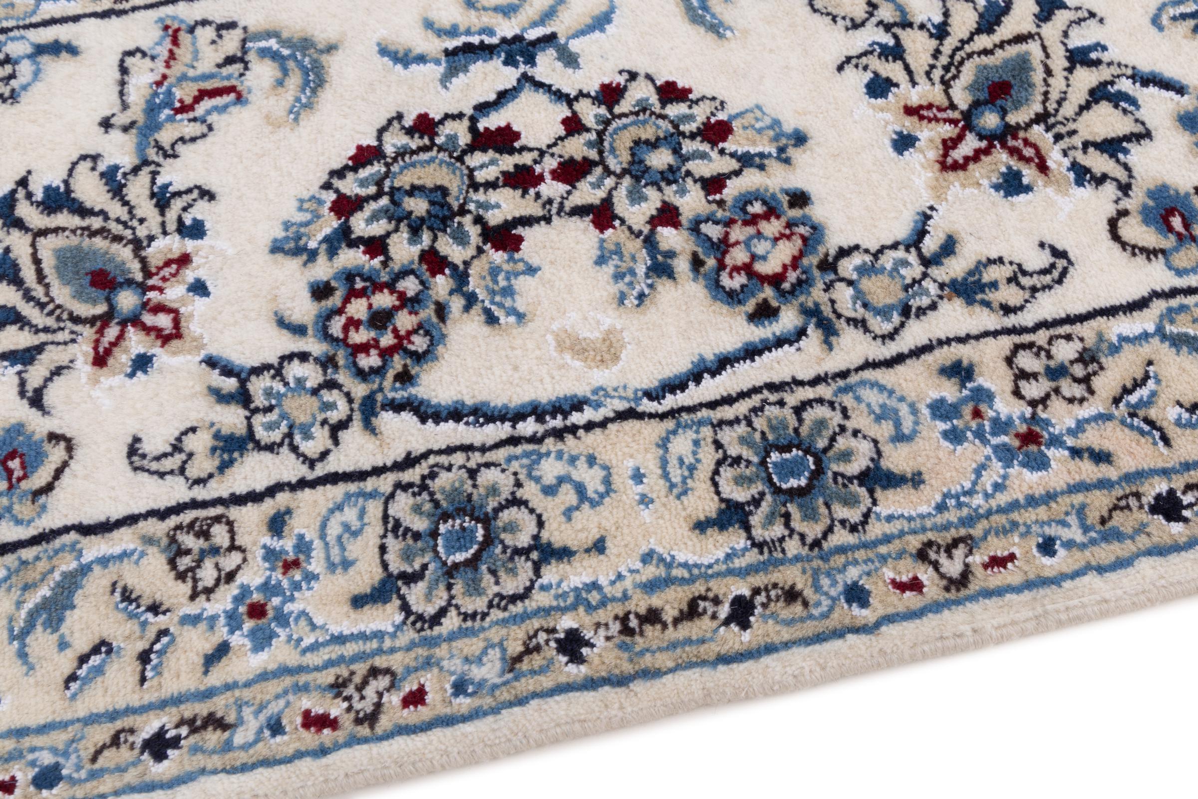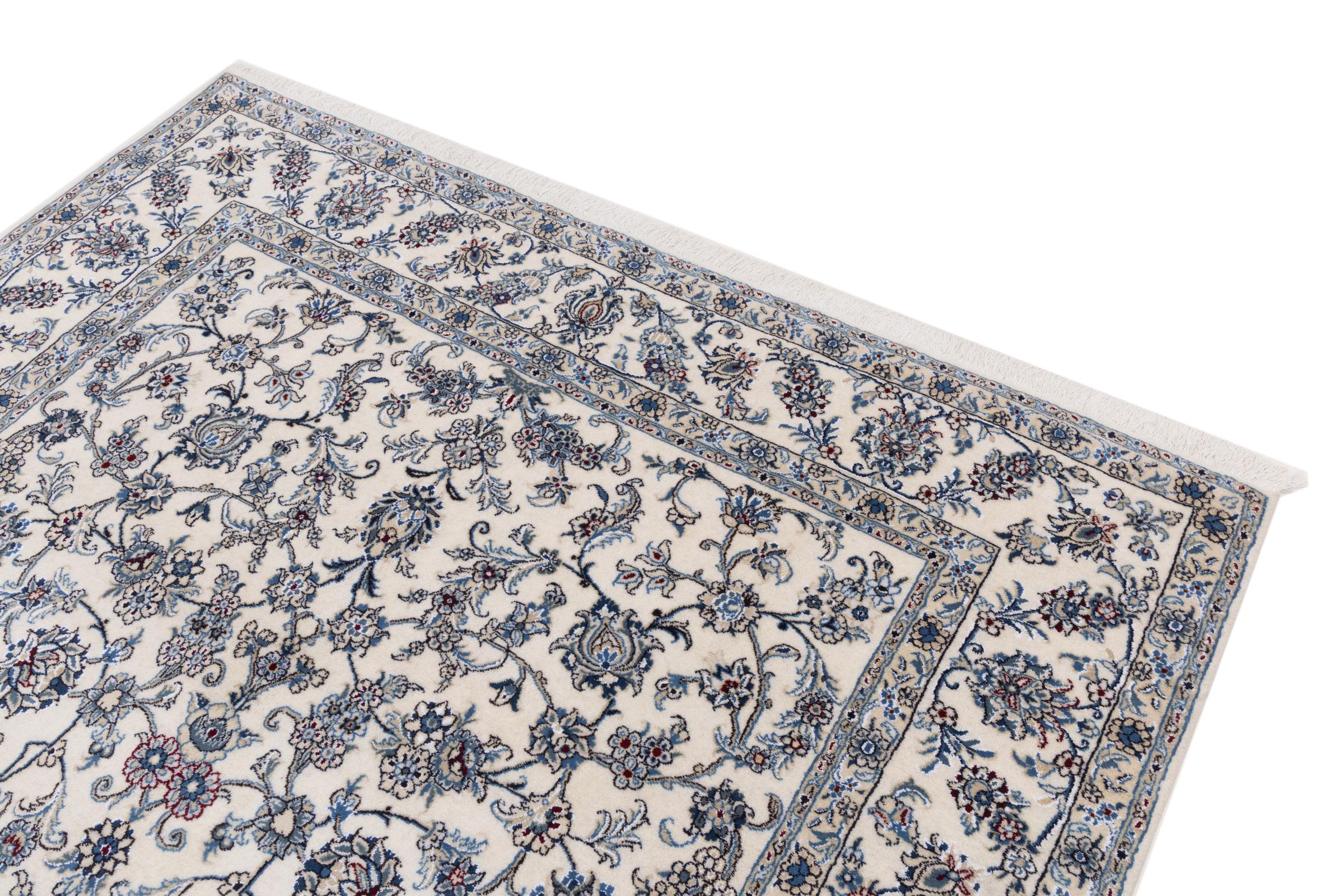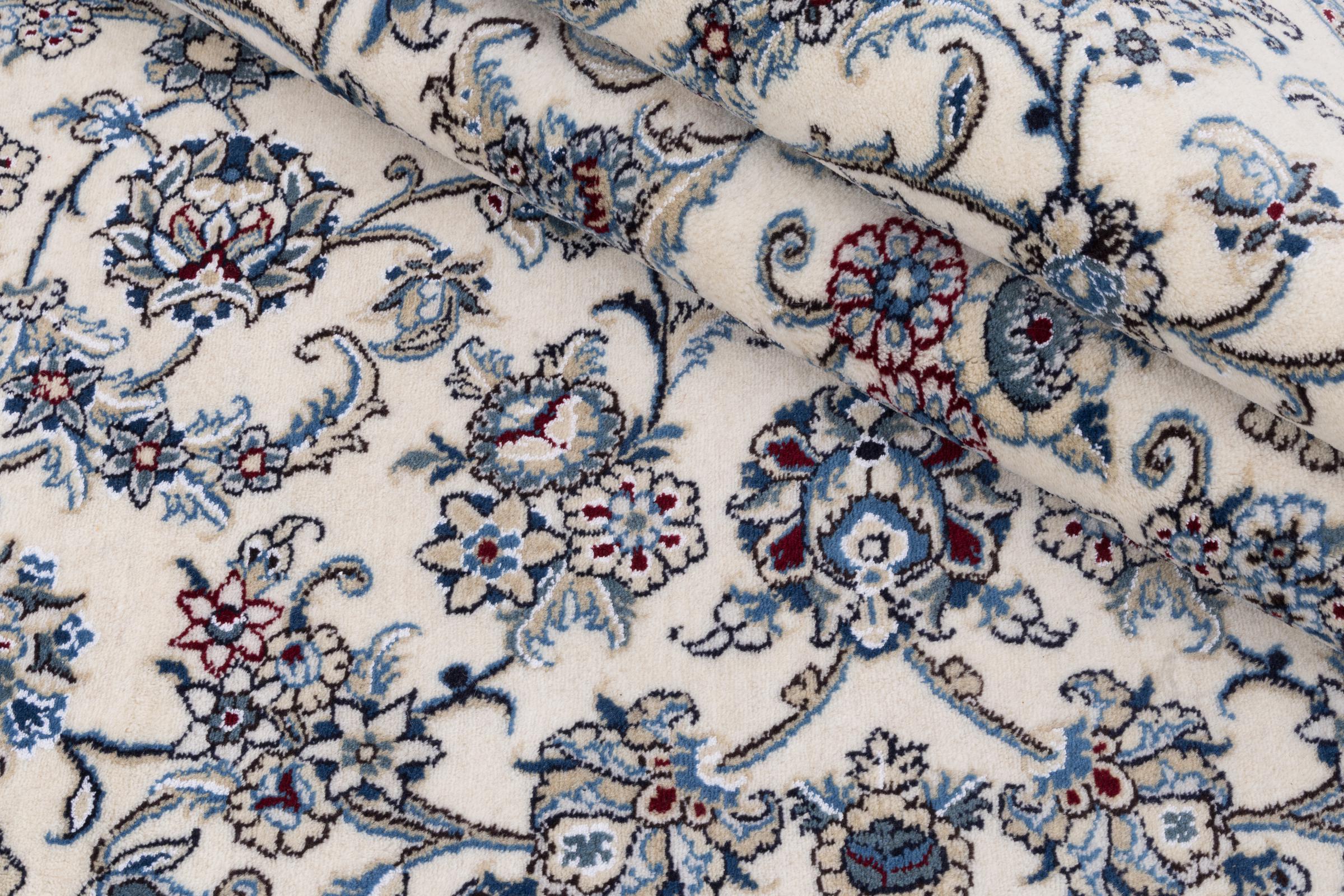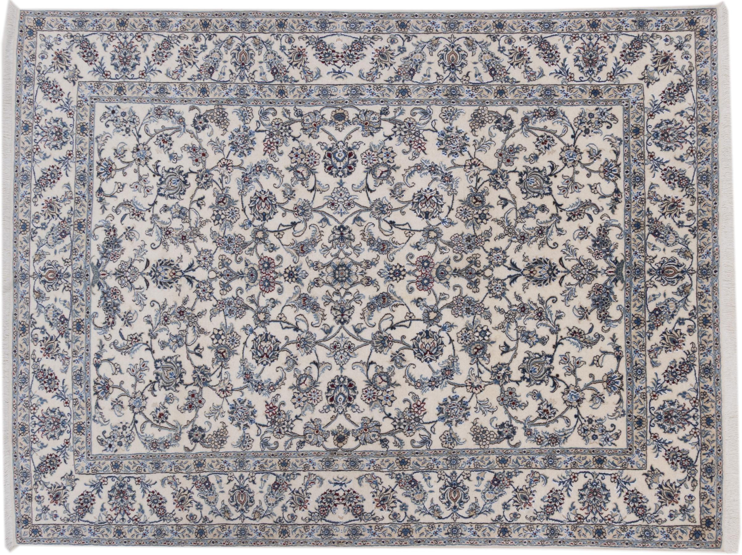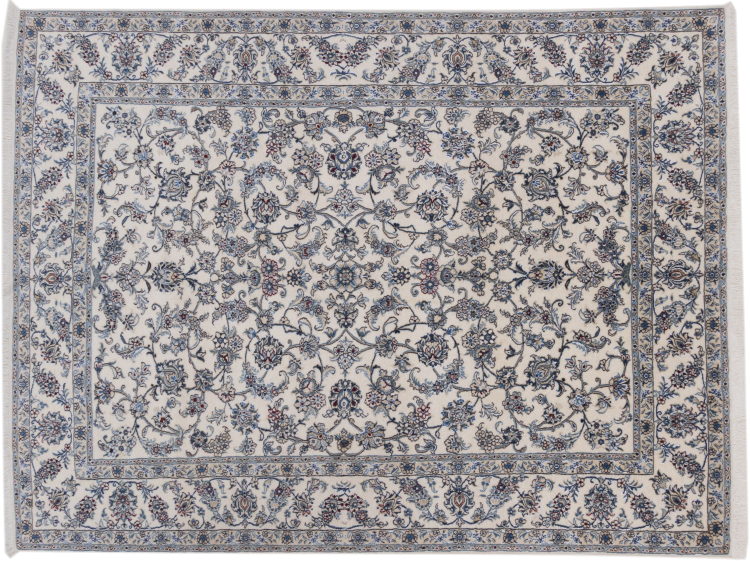 Rugs from the city of Nain, located near one of Iran's largest deserts, are among the most renowned Persian rugs in the world. Their typical design is unmistakable, featuring floral ornaments, a central medallion, and tones of beige, red, or blue. Thanks to their designations of 4La, 6La, 9La, and 12La, the fineness of a Nain rug can be easily identified at a glance. The rule is, the lower the "La" number, the higher the knot density and thus the finer the rug.