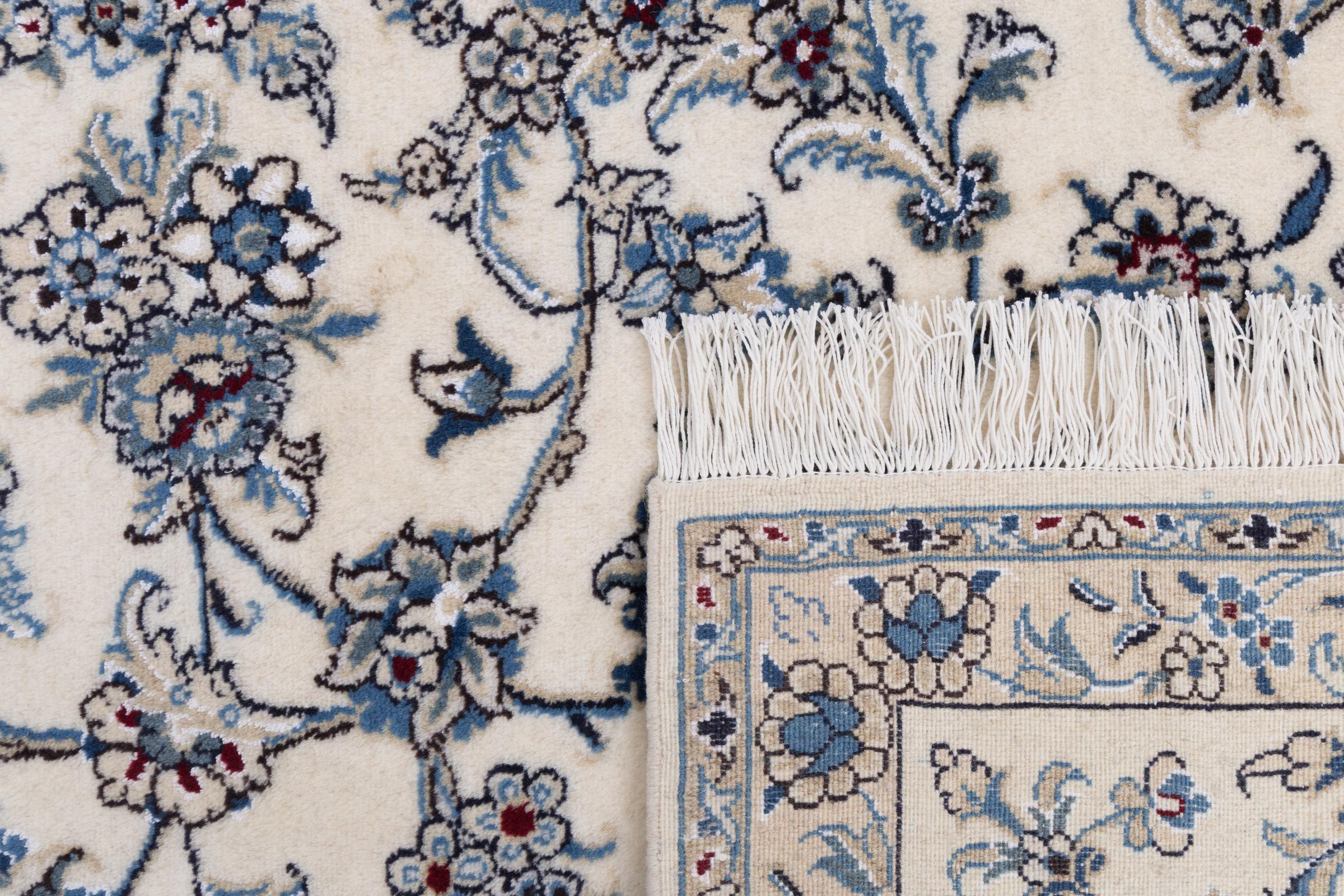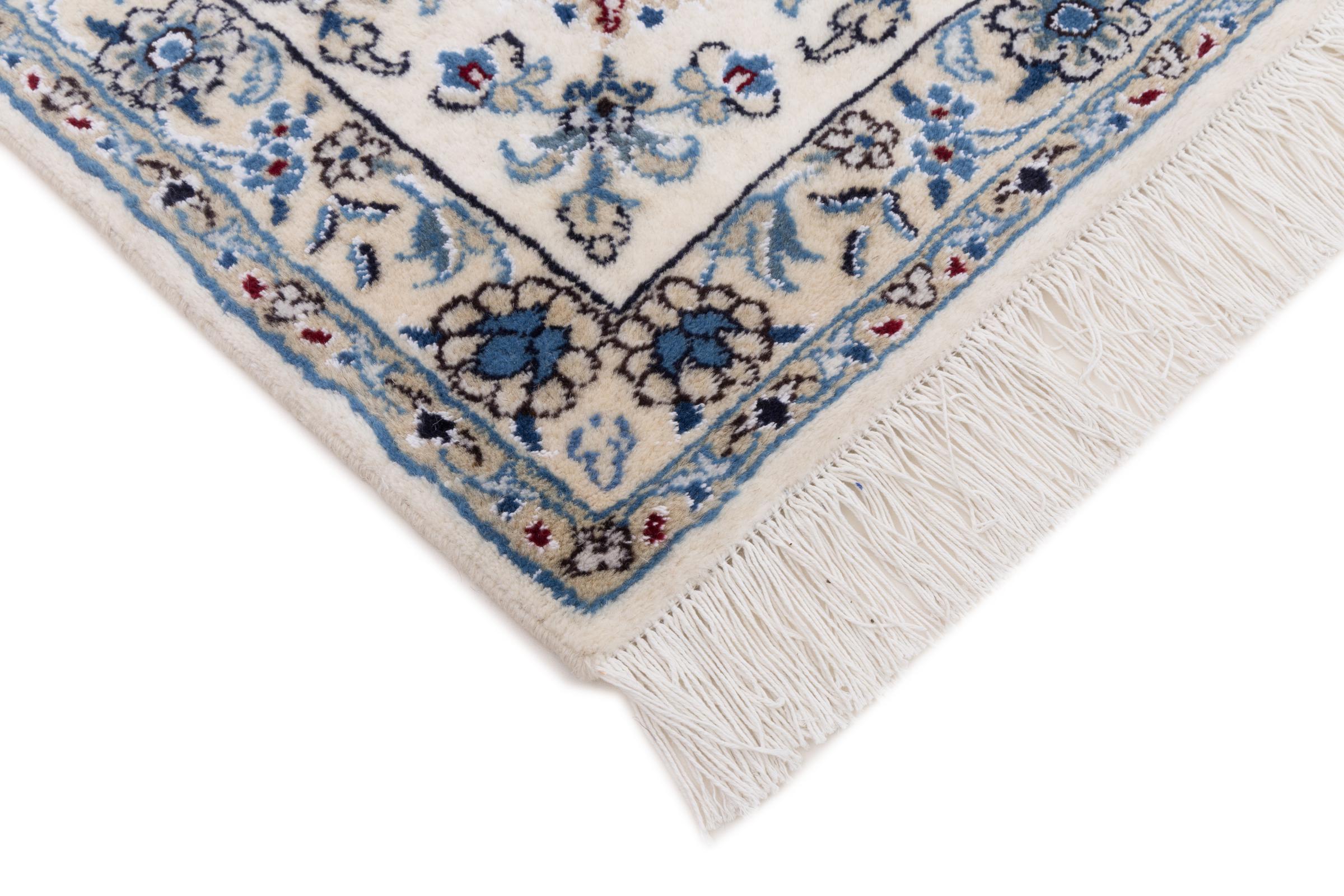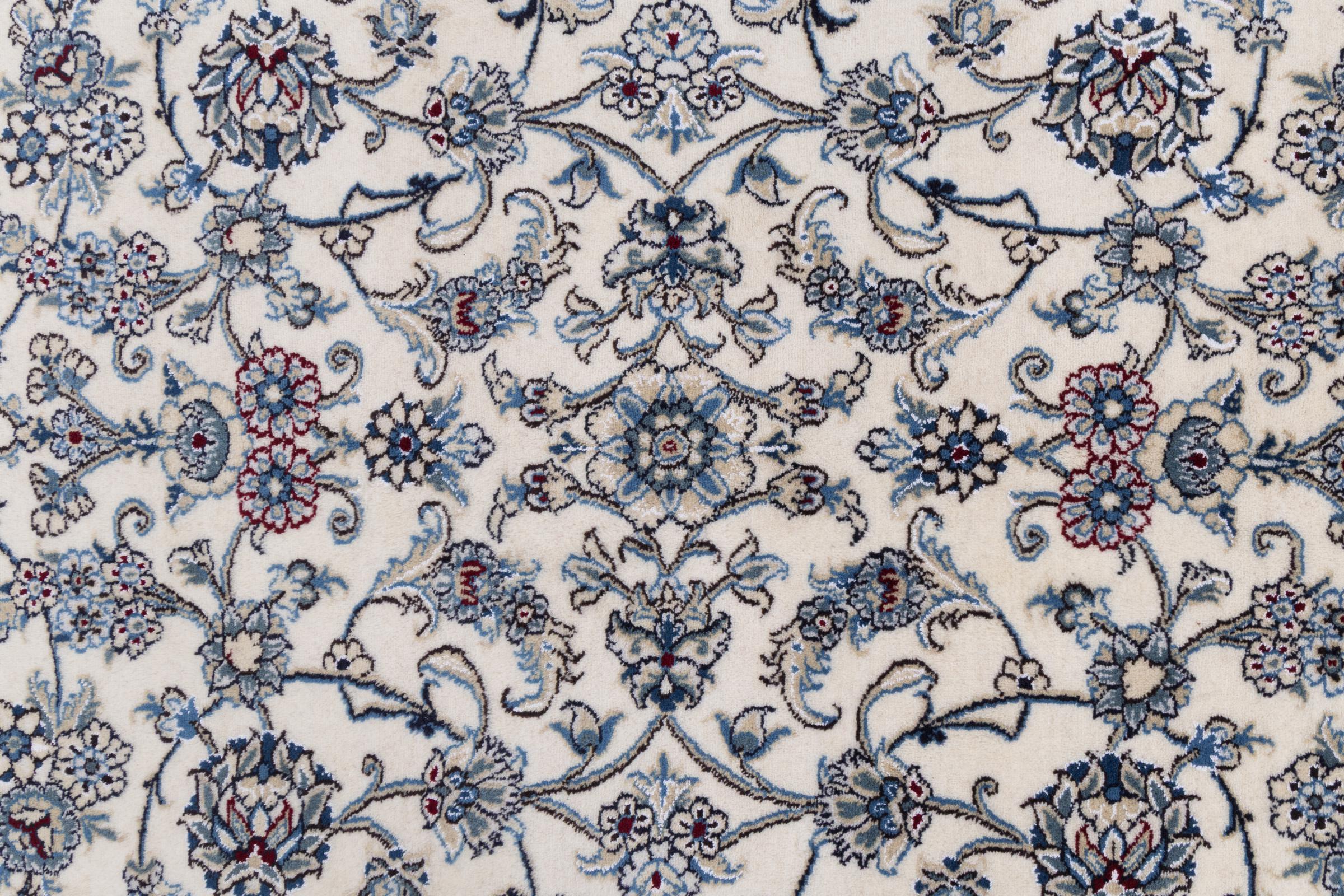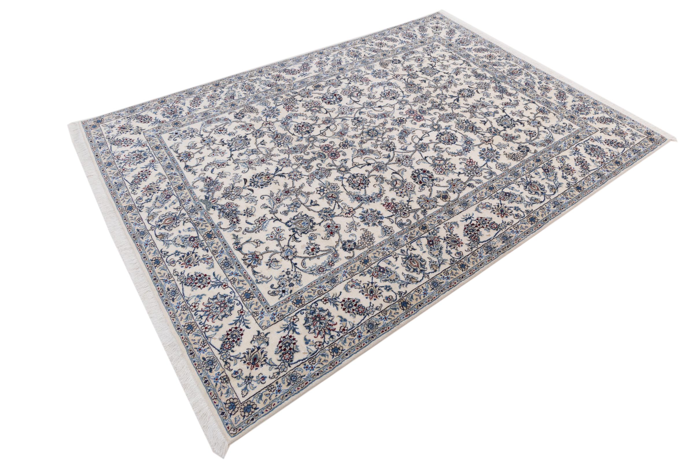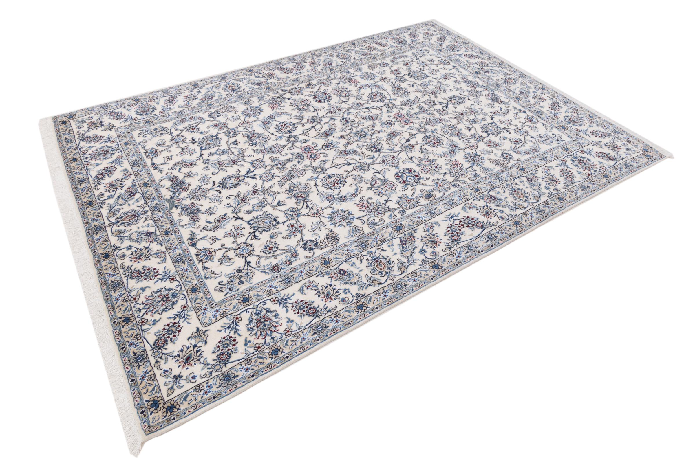 Rugs from the city of Nain, located near one of Iran's largest deserts, are among the most renowned Persian rugs in the world. Their typical design is unmistakable, featuring floral ornaments, a central medallion, and tones of beige, red, or blue. Thanks to their designations of 4La, 6La, 9La, and 12La, the fineness of a Nain rug can be easily identified at a glance. The rule is, the lower the "La" number, the higher the knot density and thus the finer the rug.