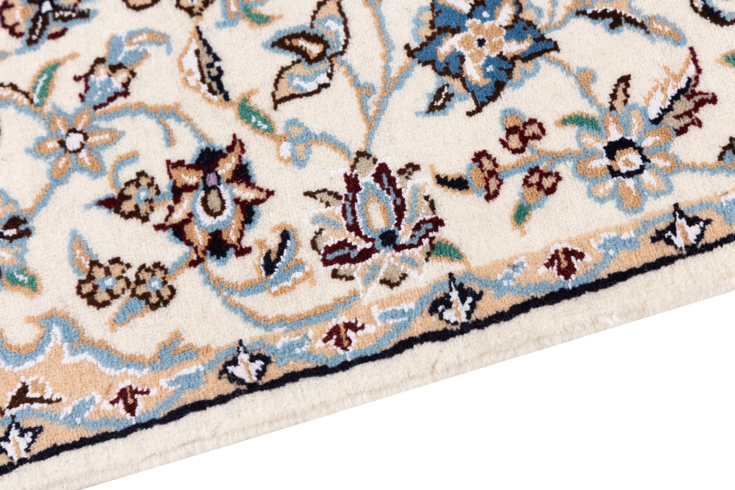 This Nain rug is categorized as 9La. It has a remarkable quality and a typical Persian curvilinear design for a great highlight for your home. This Persian rug has been knotted by hand from high grade sheep wool and natural silk in our own ateliers in Nain. This popular city is located in the western part of the desert Dasht-e-Kavir.