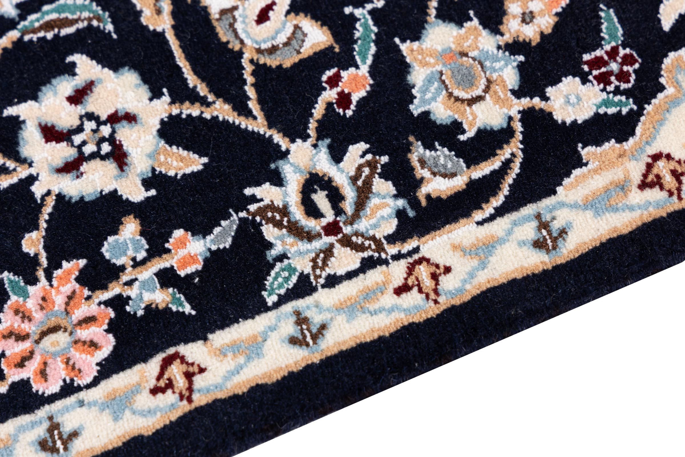 This Nain rug is categorized as 9La. It has a remarkable quality and a typical Persian curvilinear design for a great highlight for your home. This Persian rug has been knotted by hand from high grade sheep wool and natural silk in our own ateliers in Nain. This popular city is located in the western part of the desert Dasht-e-Kavir.