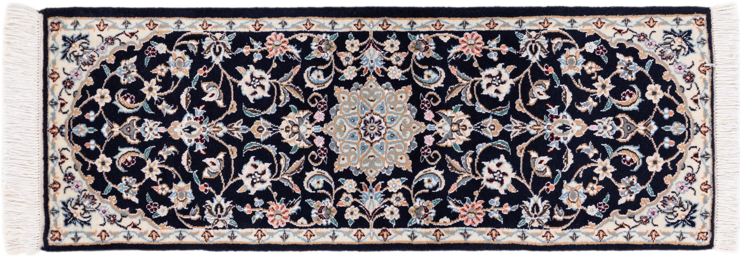 Rugs from the city of Nain, located near one of Iran's largest deserts, are among the most renowned Persian rugs in the world. Their typical design is unmistakable, featuring floral ornaments, a central medallion, and tones of beige, red, or blue. Thanks to their designations of 4La, 6La, 9La, and 12La, the fineness of a Nain rug can be easily identified at a glance. The rule is, the lower the "La" number, the higher the knot density and thus the finer the rug.