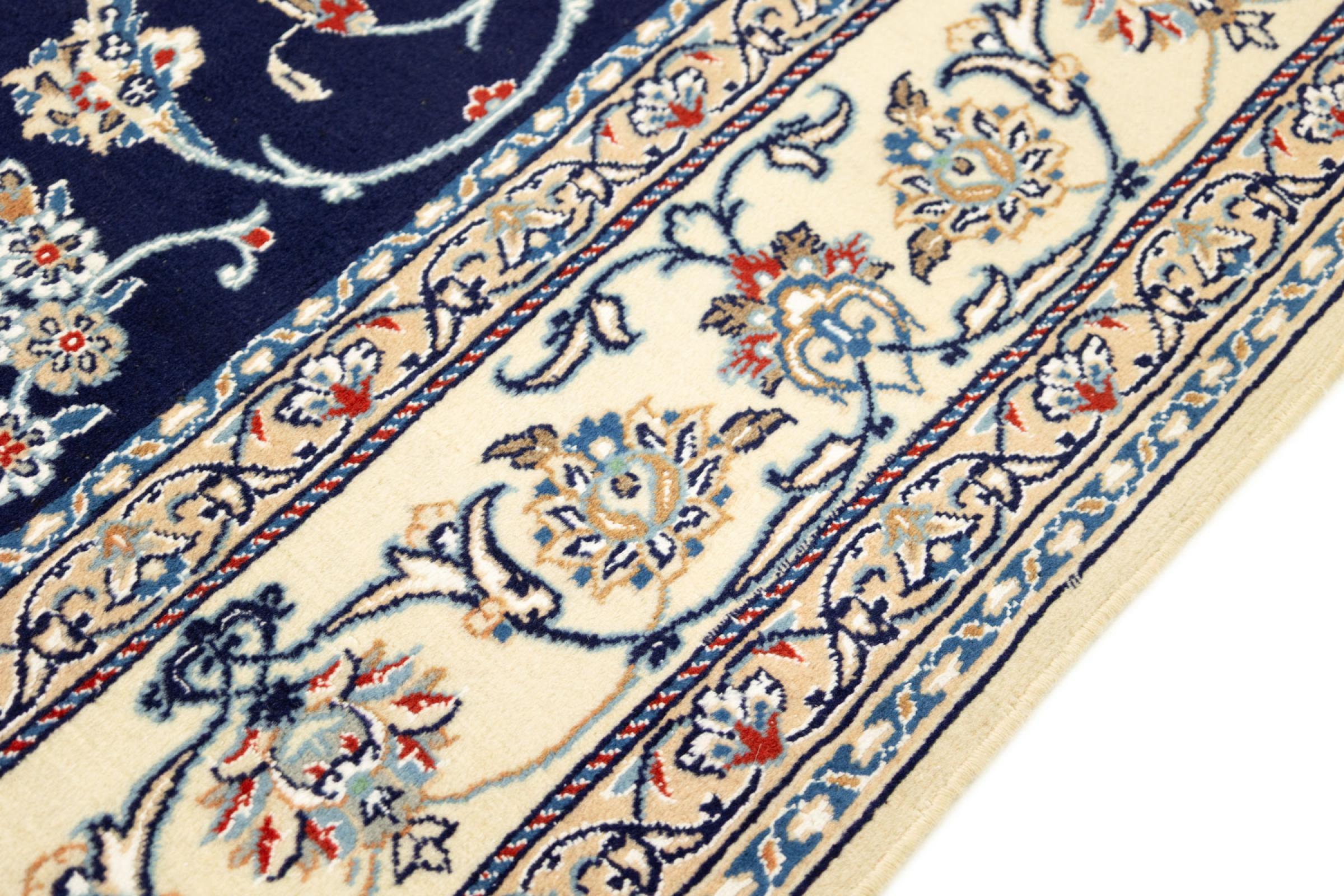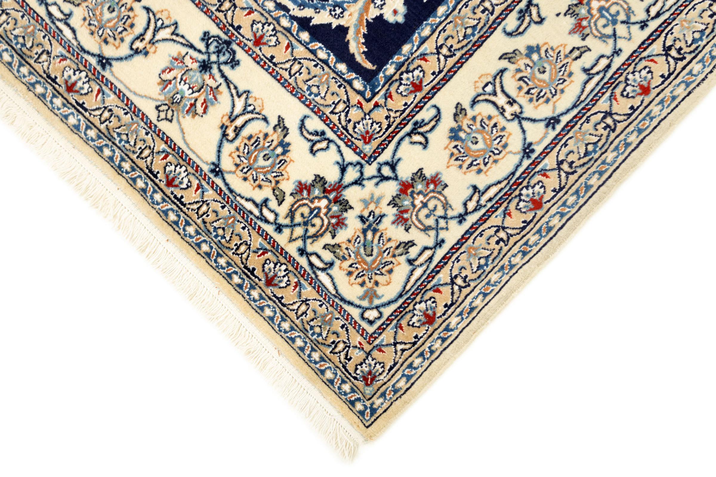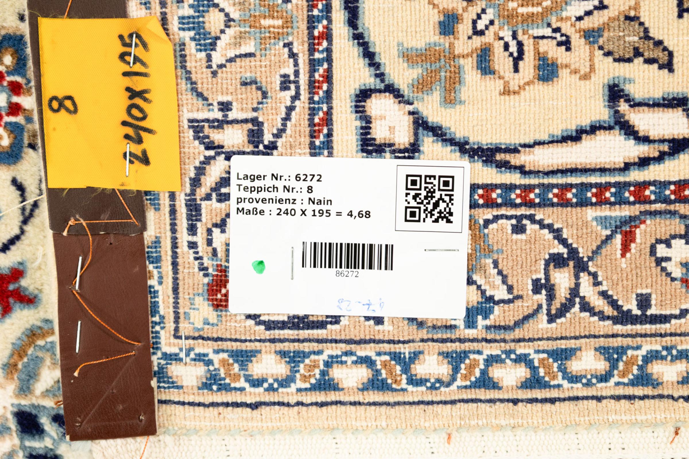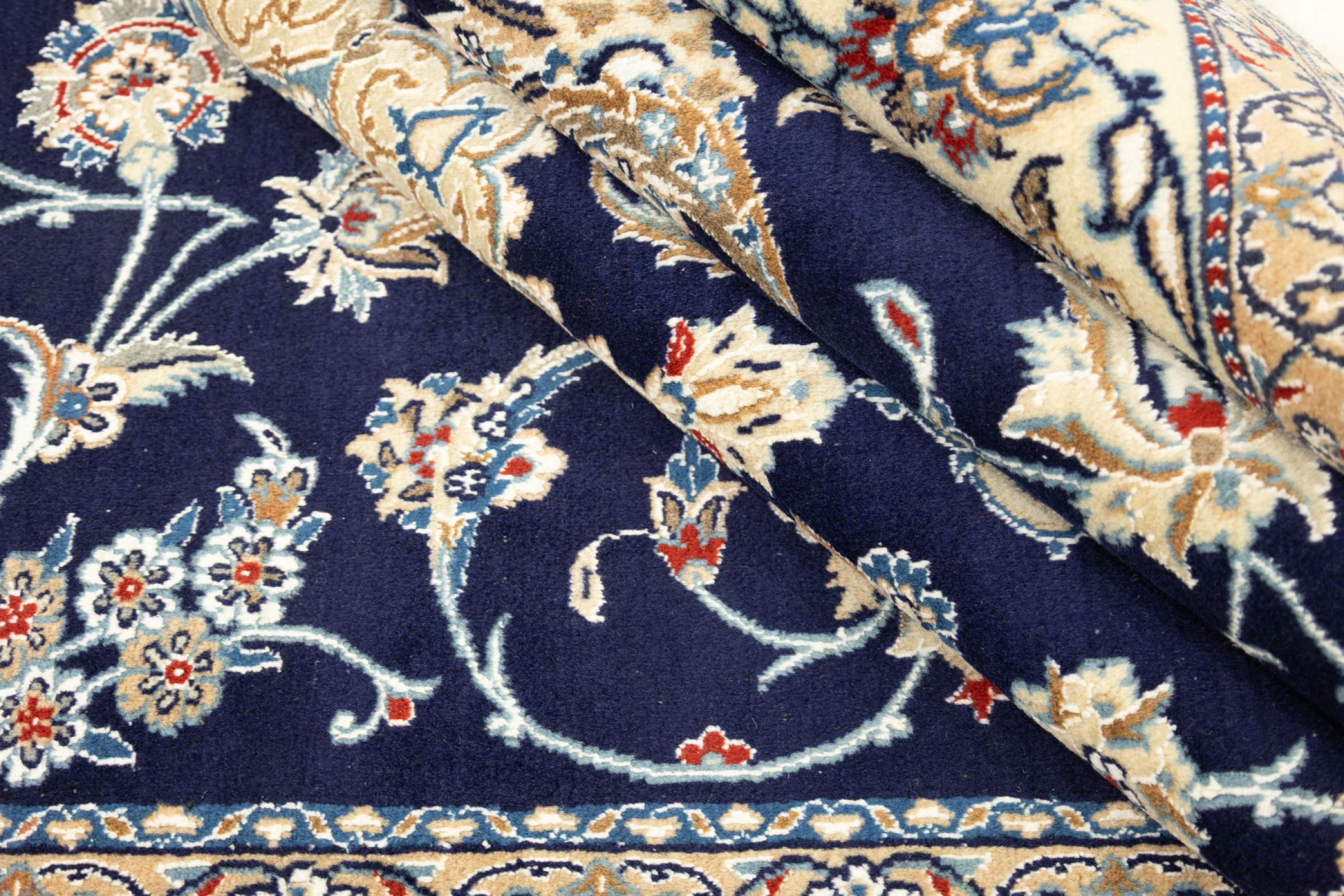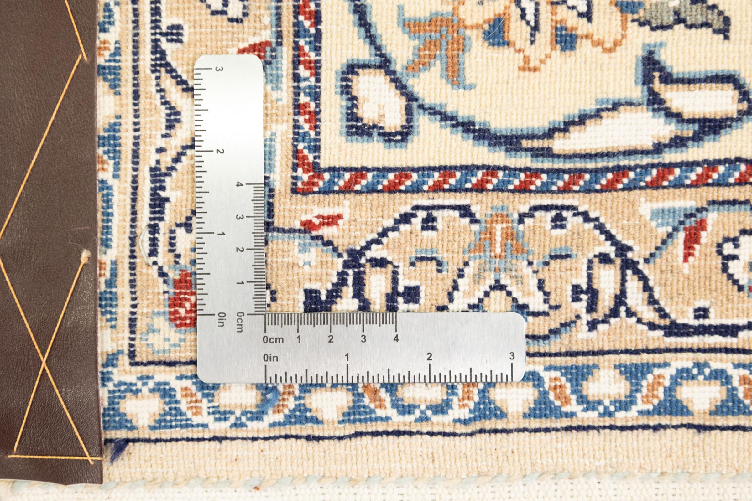 This Nain rug is categorized as 9La. It has a remarkable quality and a typical Persian curvilinear design for a great highlight for your home. This Persian rug has been knotted by hand from high grade sheep wool and natural silk in our own ateliers in Nain. This popular city is located in the western part of the desert Dasht-e-Kavir.