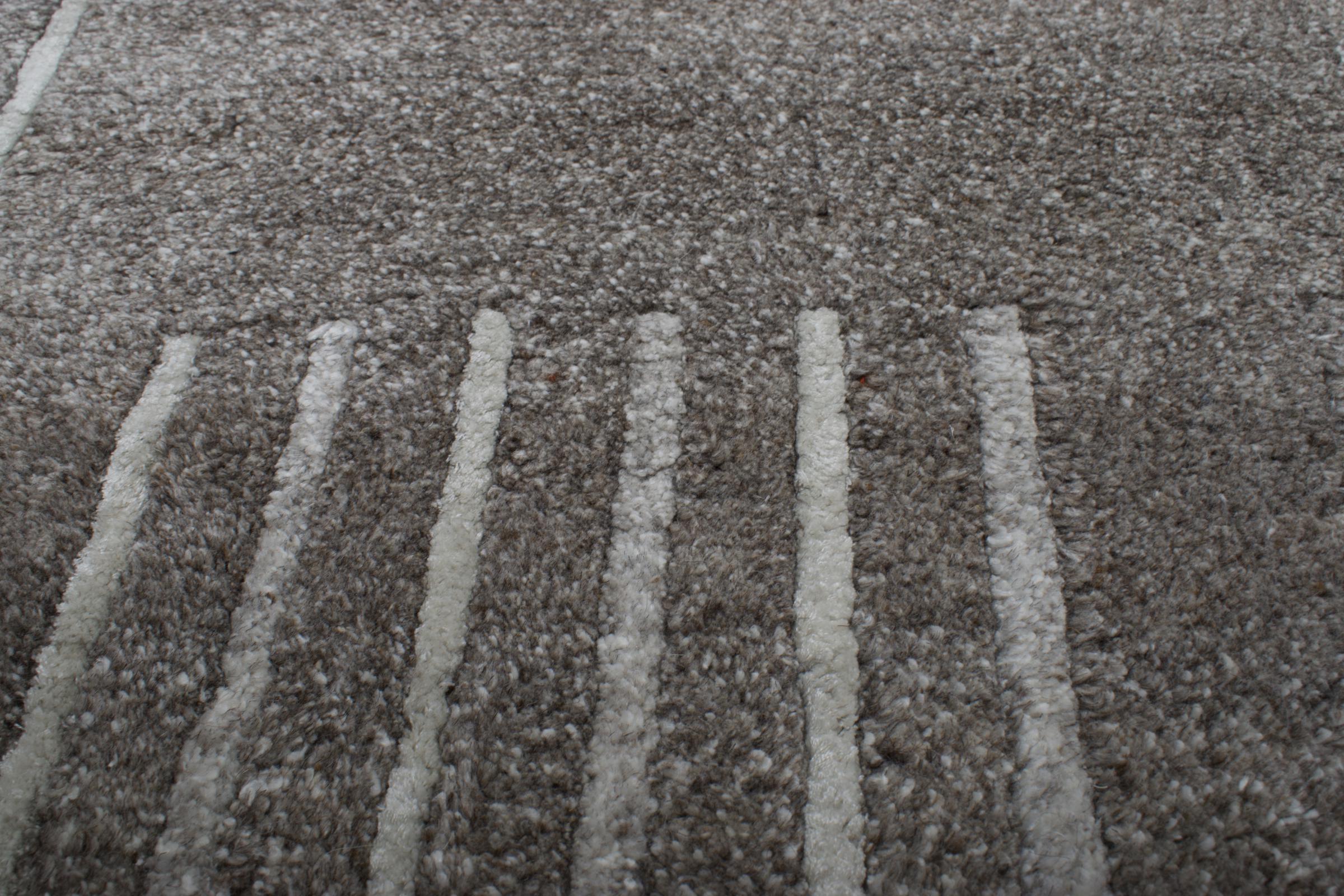 This rug is from Nepal and was knotted there by hand. Typically Nepal rugs are somewhat coarser and have modern colourful patterns. Classic variations pick up designs from traditional Chinese rugs. The look of Nepal rugs has been adapted over time to meet the demand of western markets. Today you can find pastel colours and geometric patterns on these hand knotted rugs.
