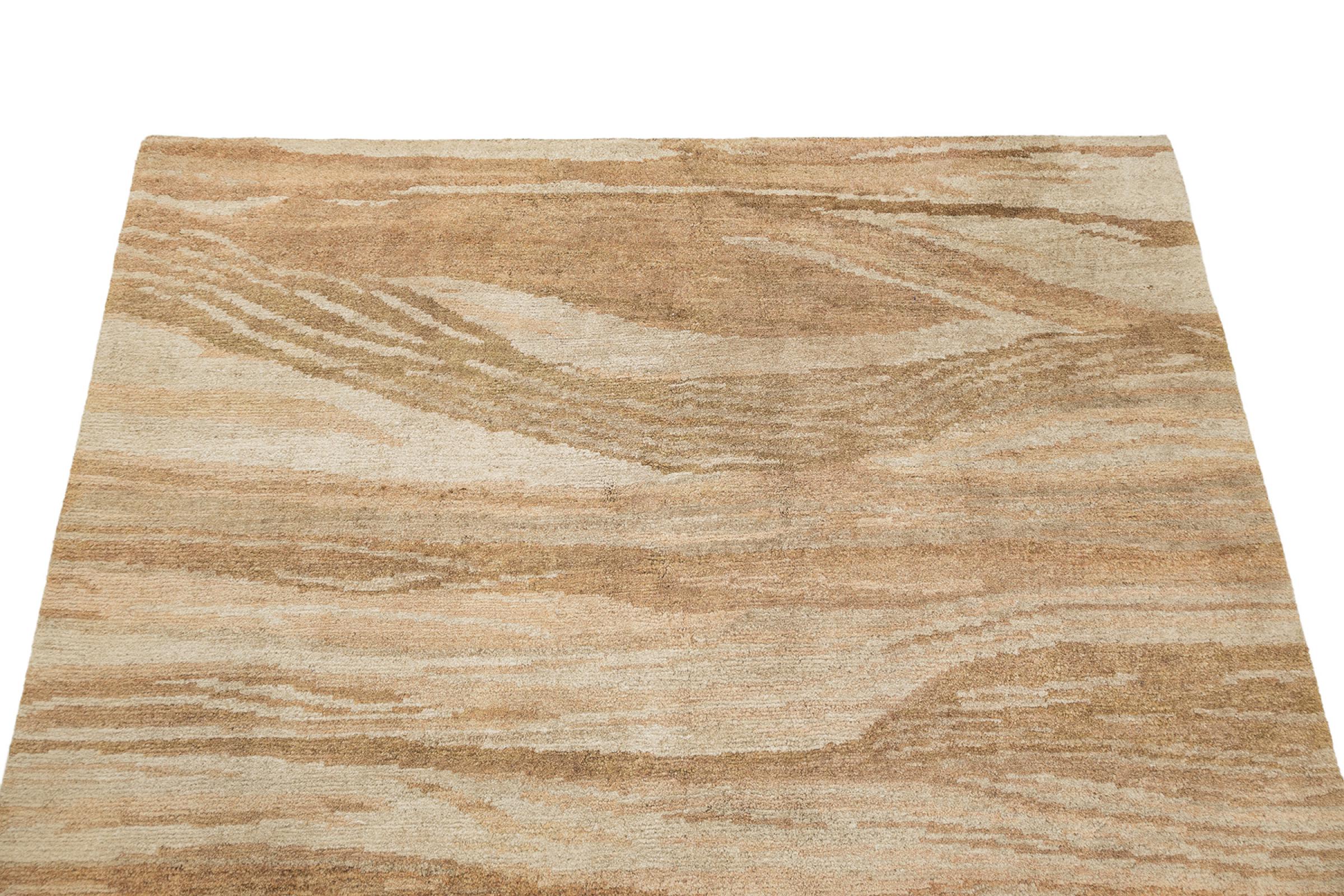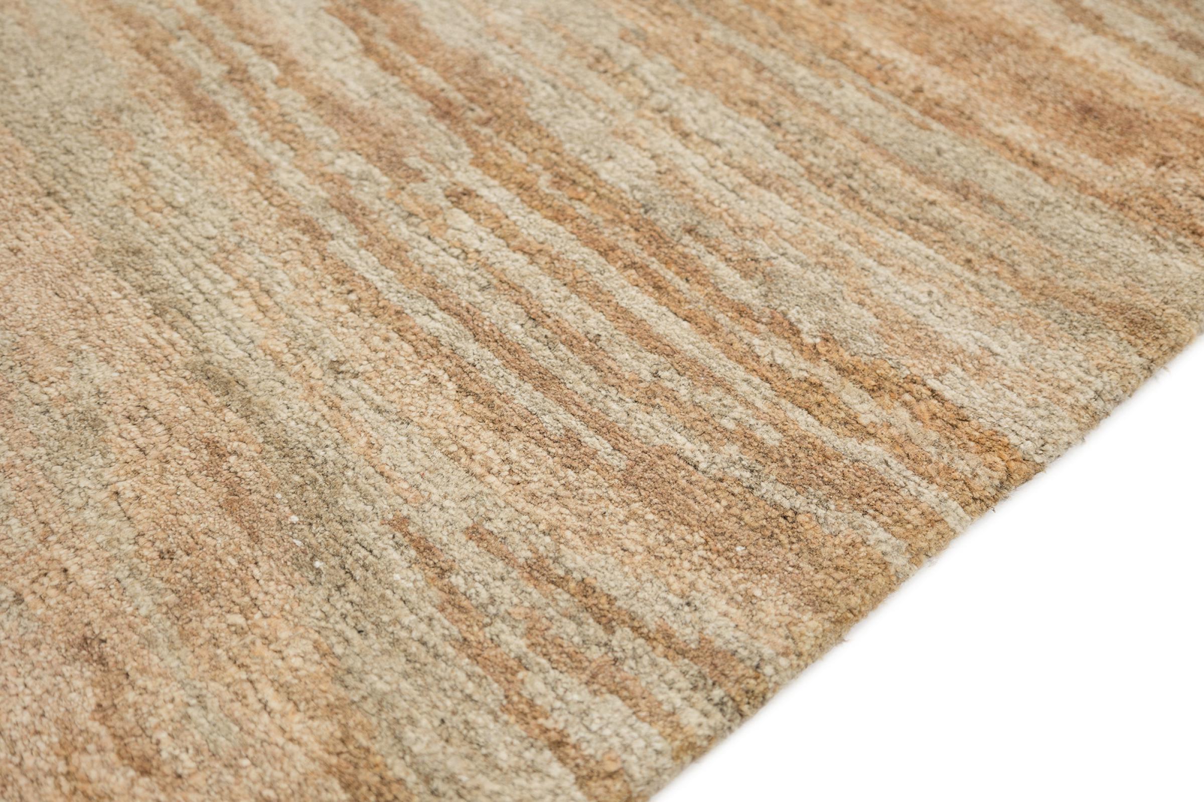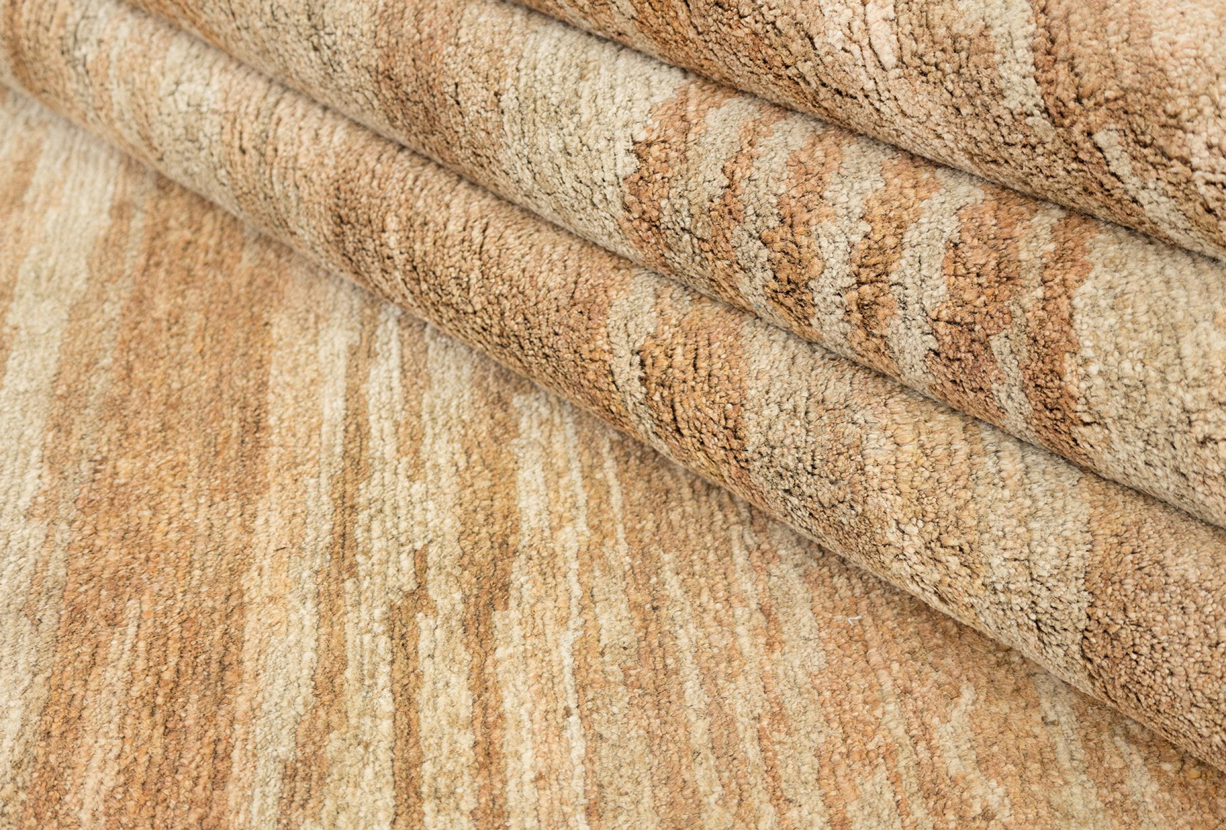 This rug is from Nepal and was knotted there by hand. Typically Nepal rugs are somewhat coarser and have modern colourful patterns. Classic variations pick up designs from traditional Chinese rugs. The look of Nepal rugs has been adapted over time to meet the demand of western markets. Today you can find pastel colours and geometric patterns on these hand knotted rugs.