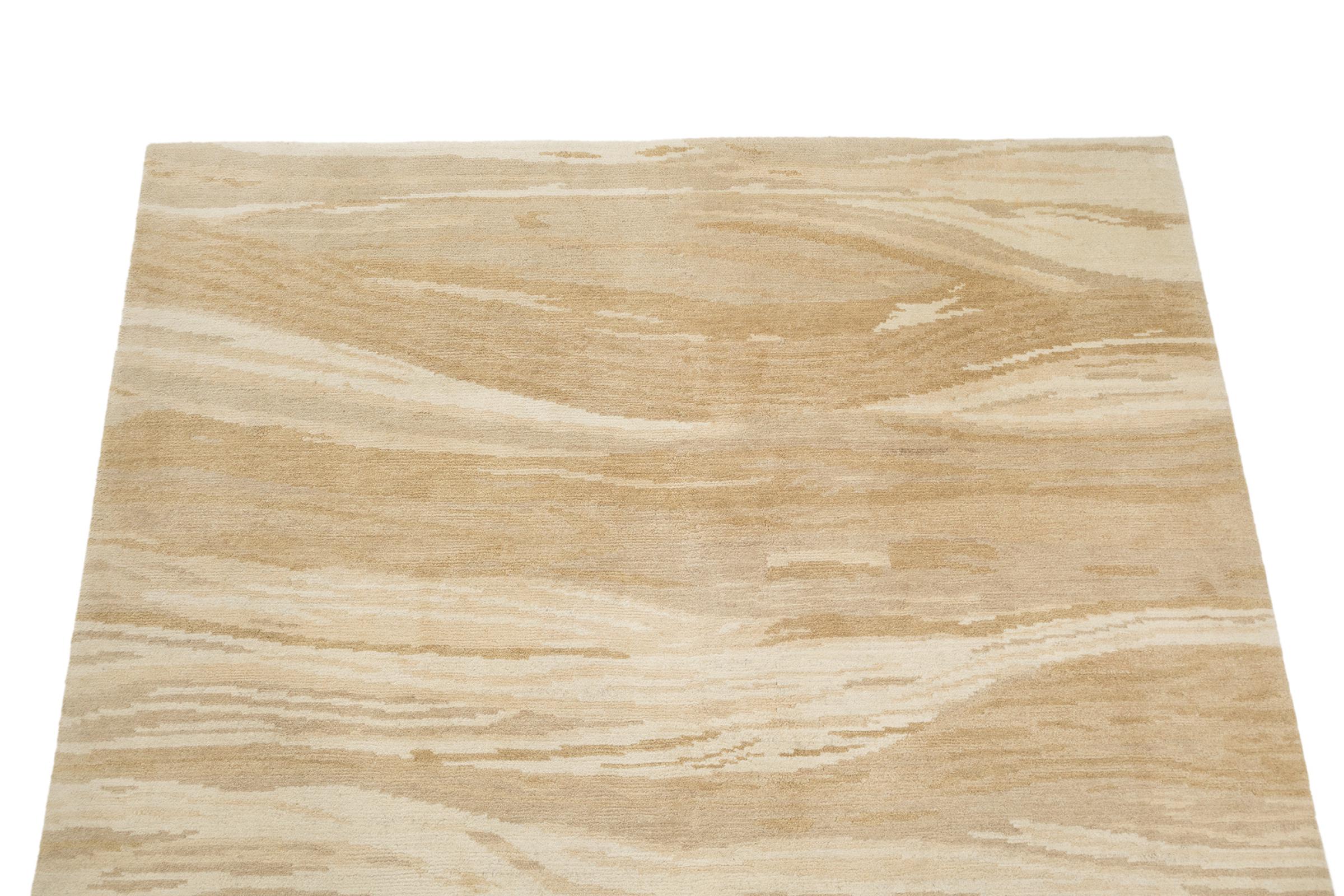 This rug is from Nepal and was knotted there by hand. Typically Nepal rugs are somewhat coarser and have modern colourful patterns. Classic variations pick up designs from traditional Chinese rugs. The look of Nepal rugs has been adapted over time to meet the demand of western markets. Today you can find pastel colours and geometric patterns on these hand knotted rugs.
