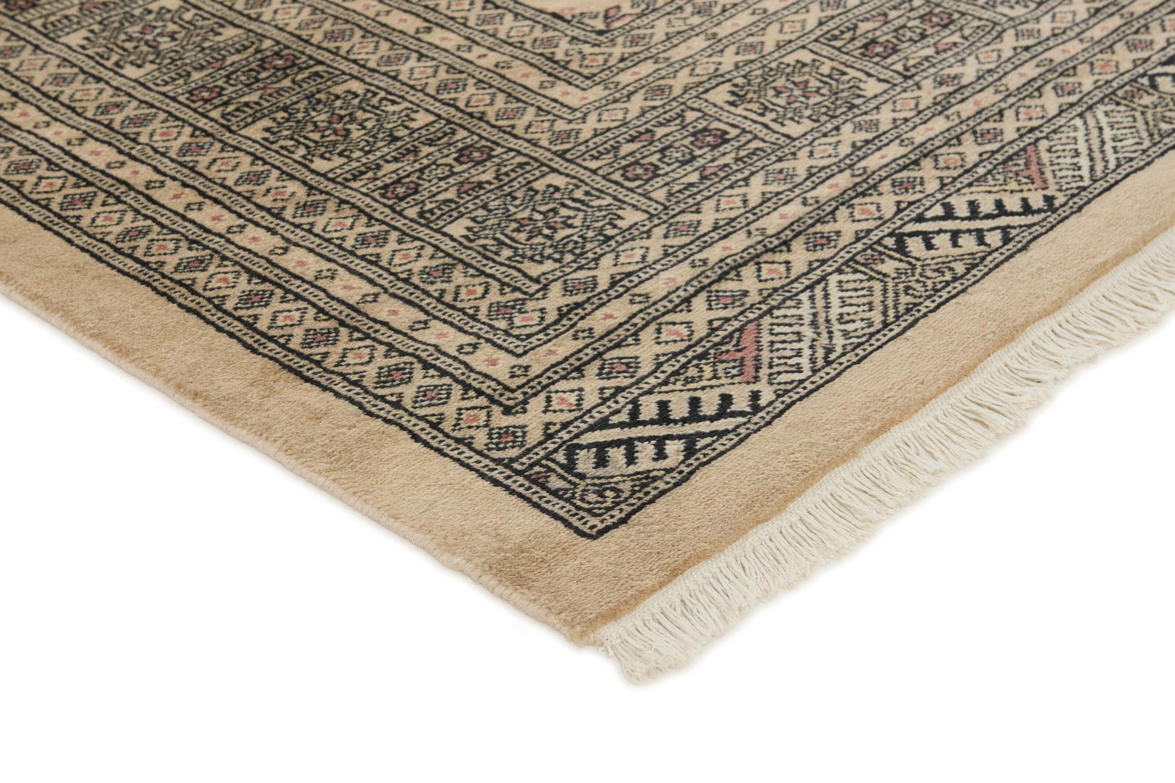 This hand-knotted rug from Pakistan has highly typical characteristics. The octangular ornaments are repeated on the floor and characterize this type of rug. 2Ply and 3Ply are differences in the knotting density of the rug. A 3Ply is generally more densely knotted and therefore more complex to craft. These beautiful carpets are popular because of their warm colors and calm design. Furthermore, this Bukhara rug is highly robust and incredibly soft on the touch thanks to natural wool.