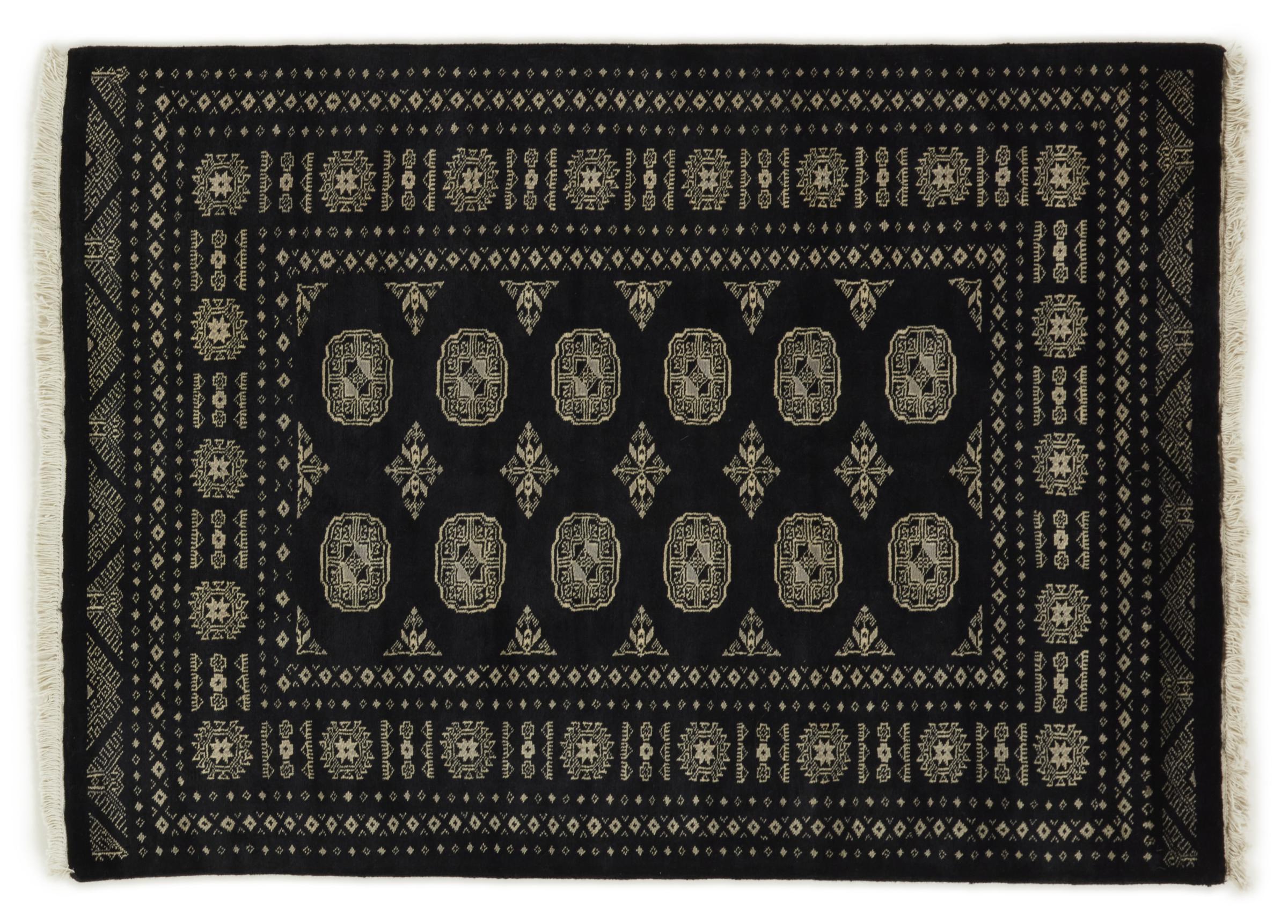 A large part of Pakistani rug production takes place in and around the cities of Lahore and Karachi. Many of the rug knotters of that time fled to Pakistan during the war with India and settled there. Today, especially hand-knotted Pakistan Bukhara rugs are well-known. Similar to the Afghan oriental rugs, Pakistani rugs are also made in dark colours and mostly have shades of red. Even the well-known elephant foot pattern (repeating octagonal pattern) can be found on a Pakistani.