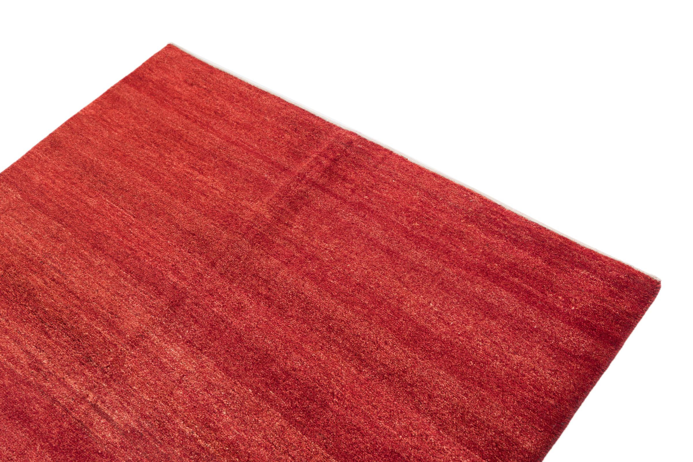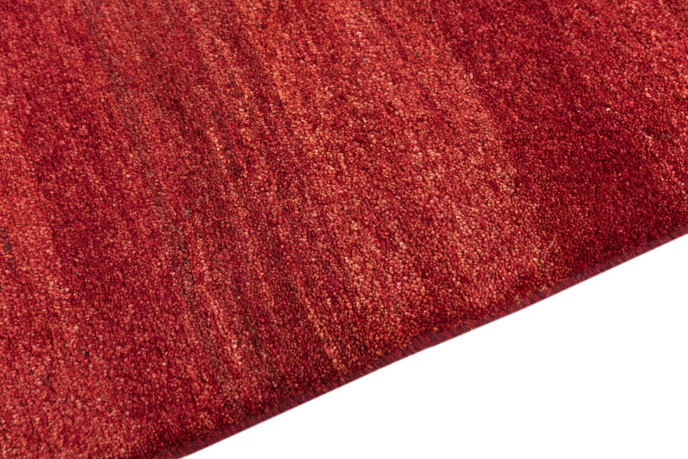 This beautiful rug is a Persian Gabbeh, one of the highest quality Gabbeh rugs available. These rugs are hand-knotted by nomads or semi-nomads in Iran using traditional artisan techniques. The simple motifs and patterns are often inspired by the nomads' immediate surroundings, featuring elements like camels, trees, or bushes. Persian Gabbeh carpets are made from wool sourced from locally raised sheep herds, with the wool typically spun by hand. Thus each of these Oriental rugs thus embodies a unique character steeped in centuries-old culture.
