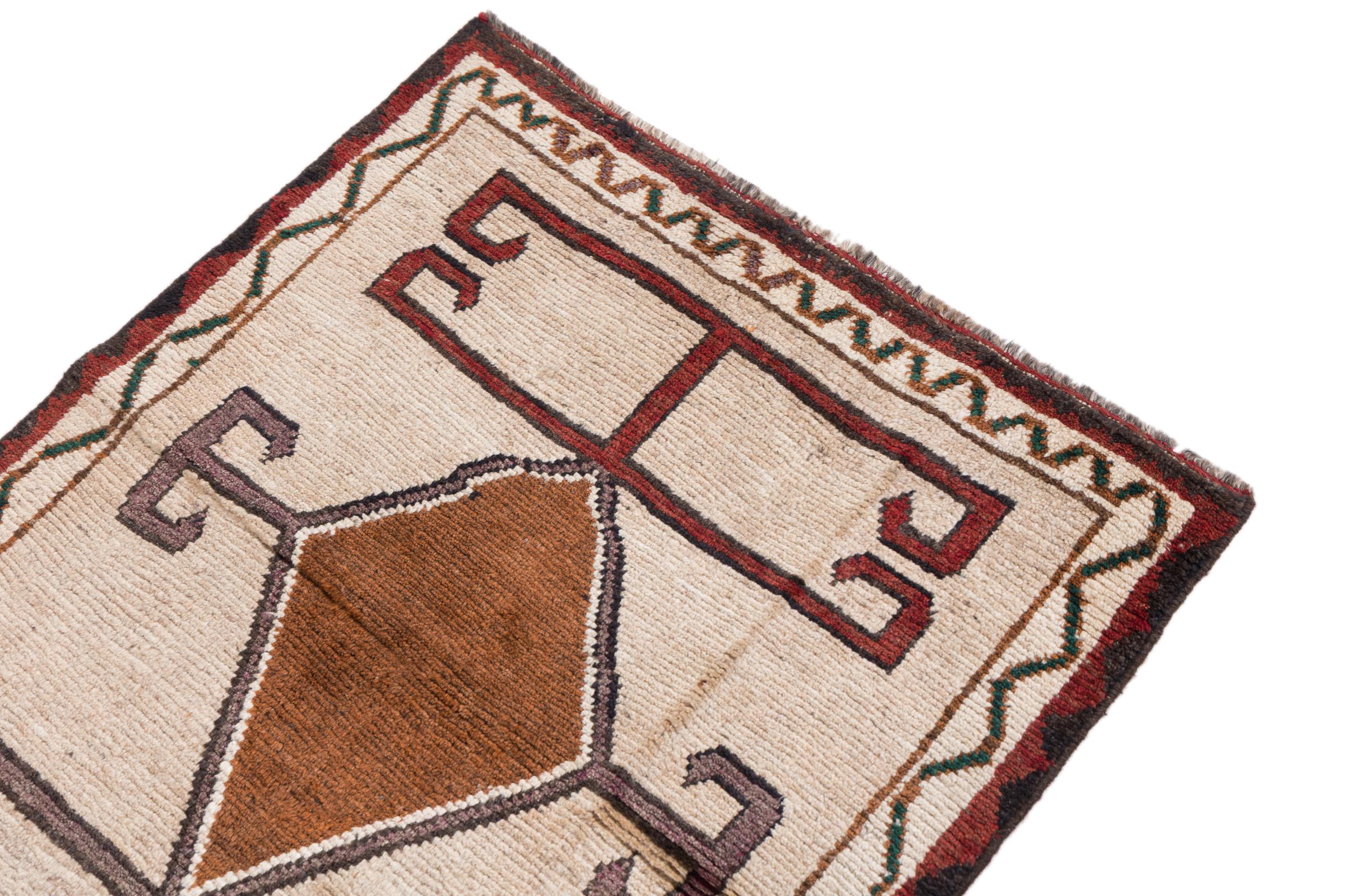 The word "natural" perfectly describes this beautiful rug. It has been knotted from sheep wool spun by hand. Additionally, this Persian Gabbeh has been crafted in old Persian tradition making it a robust piece of finest handicraft.