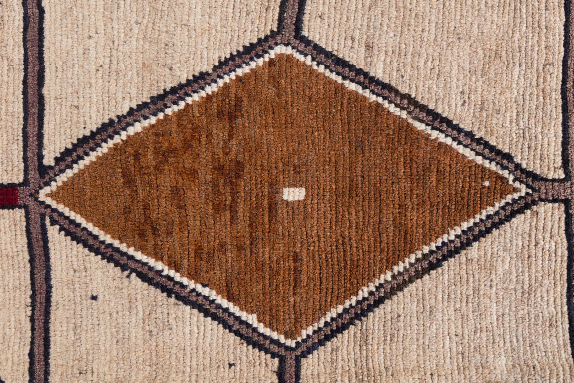 This beautiful rug is a Persian Gabbeh, one of the highest quality Gabbeh rugs available. These rugs are hand-knotted by nomads or semi-nomads in Iran using traditional artisan techniques. The simple motifs and patterns are often inspired by the nomads' immediate surroundings, featuring elements like camels, trees, or bushes. Persian Gabbeh carpets are made from wool sourced from locally raised sheep herds, with the wool typically spun by hand. Thus each of these Oriental rugs thus embodies a unique character steeped in centuries-old culture.