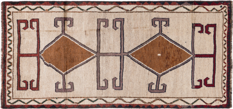 Rug ID: 298112008193 Size: 6'9"x3'2" ft Thickness: ap. 0.59 in Knot density: 46 - 58 / square inch Manufacturing: Knotted by hand Pile: Handspun wool Warp: Sheep wool Origin: Persia / Iran Age: Old/Semi antique, over 50 years Weight: ap. 18 lb Also know as Gabbe, Ghabbeh In stock: Unique - Only 1 in stock