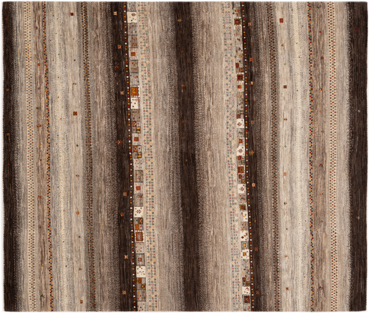 Rug ID: 301367004878605 Size: 9'7"x8'2" ft Thickness: ap. 0.59 in Knot density: 46 - 58 / square inch Manufacturing: Knotted by hand Pile: Handspun wool Warp: Sheep wool Origin: Persia / Iran Age: New Weight: ap. 64 lb Also know as Gabbe, Kashkuli In stock: Unique - Only 1 in stock